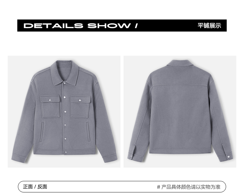 gxg.jeans男装冬季绵羊毛翻领夹克 深灰色毛呢夹克外套男JD1210616I