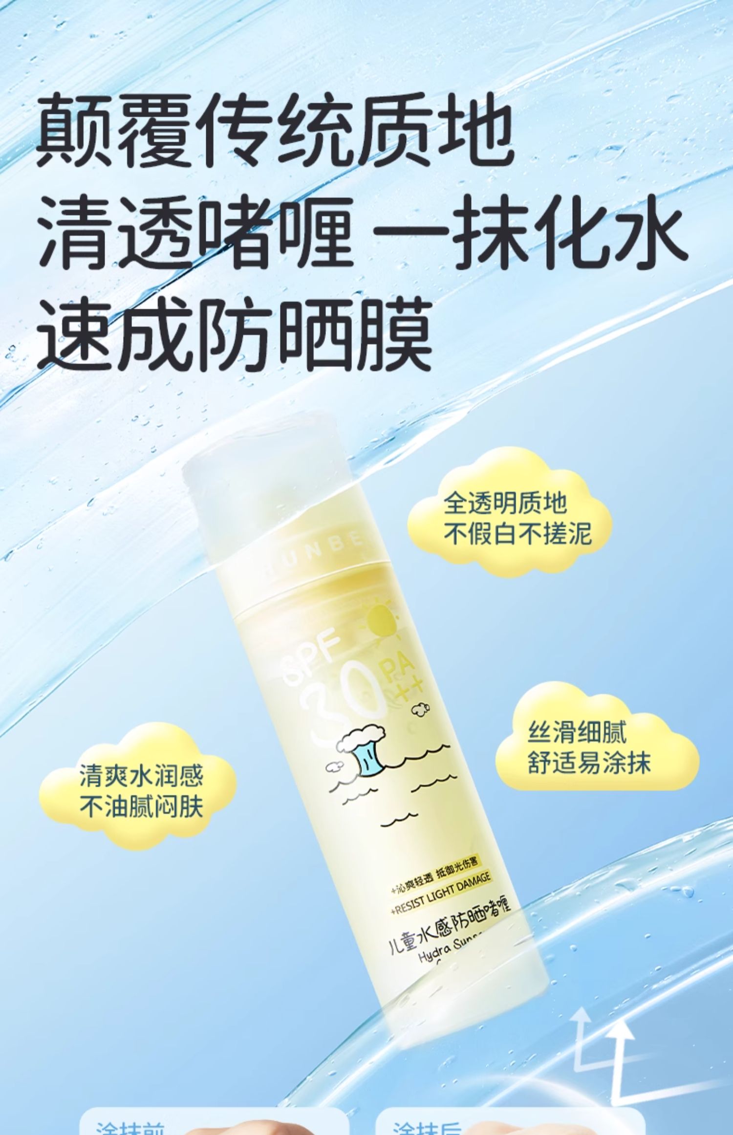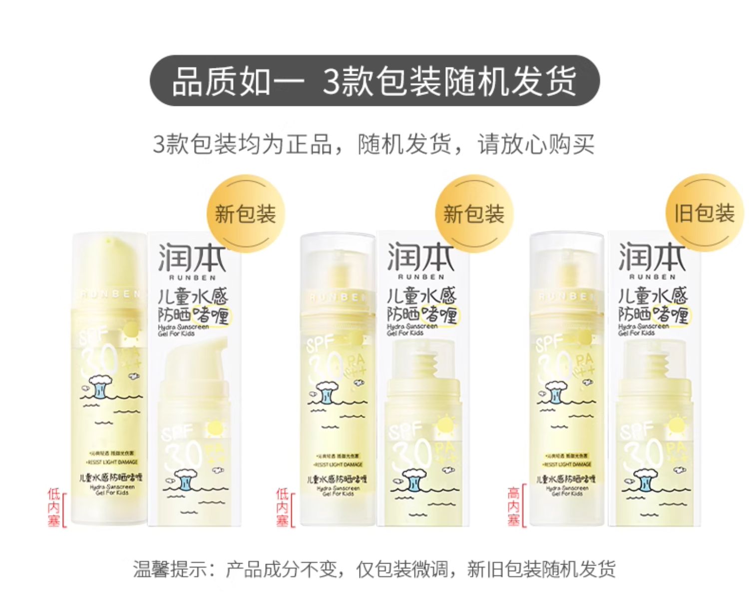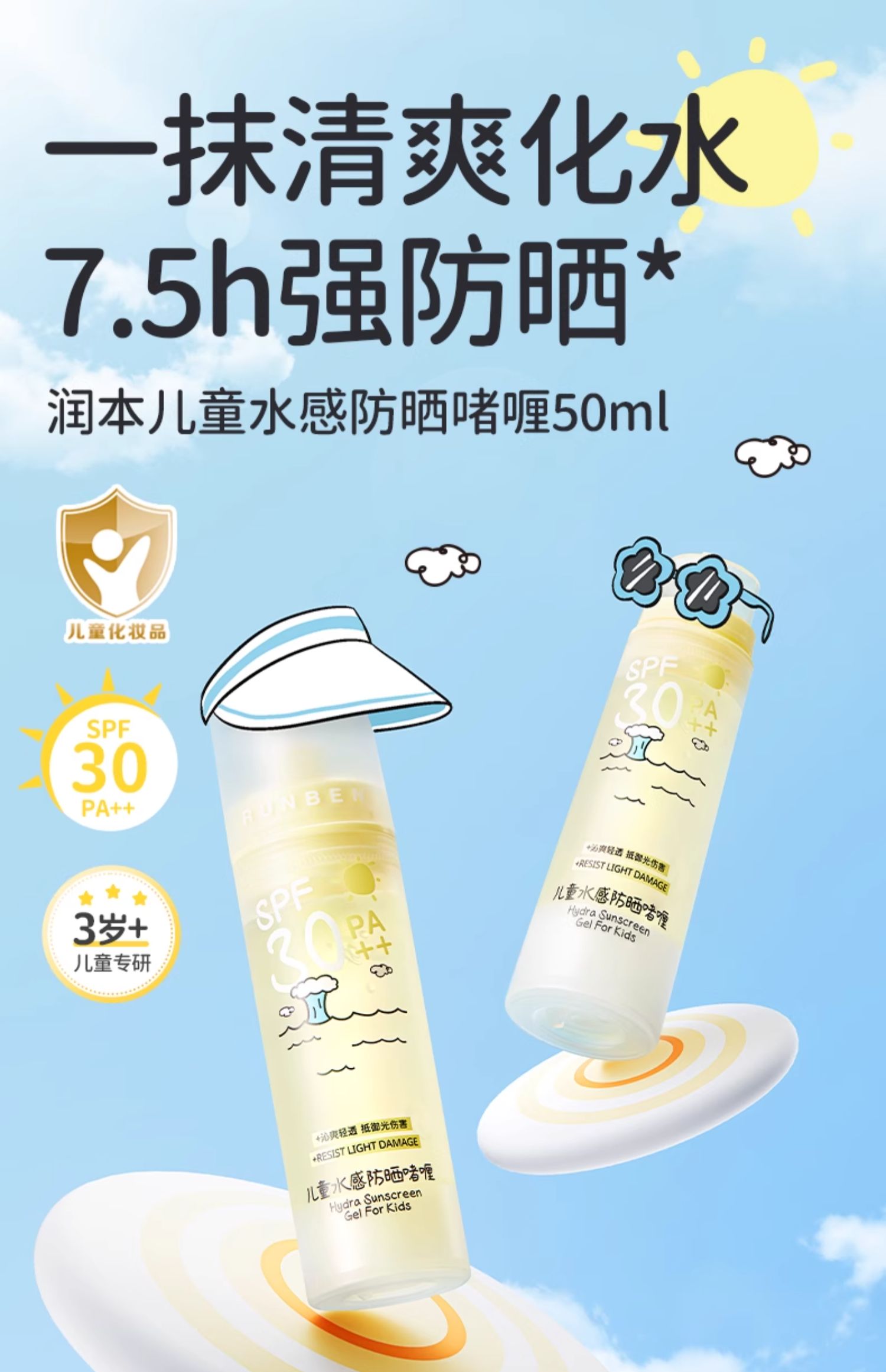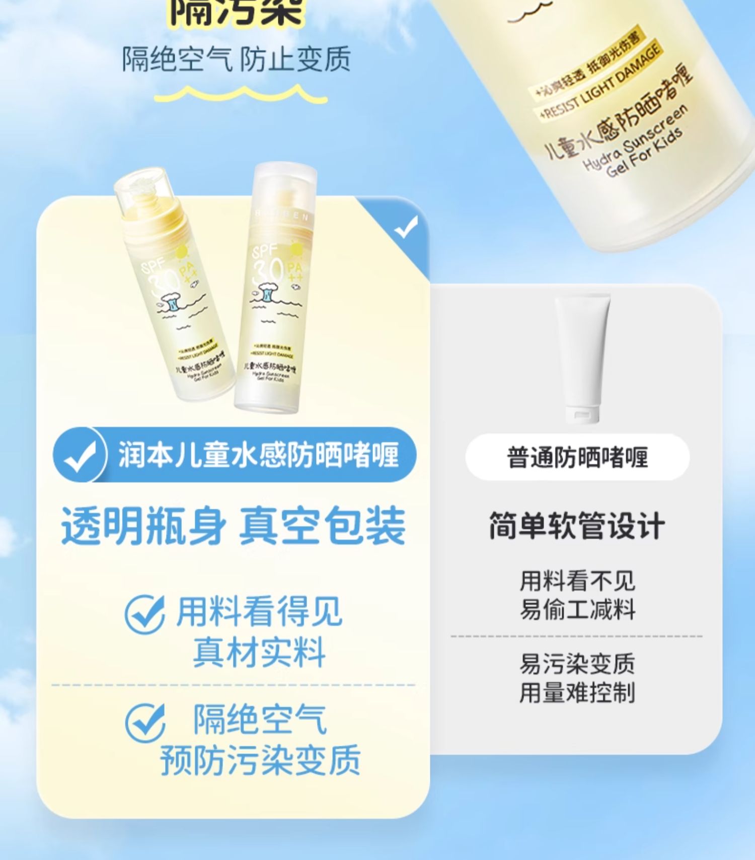润本儿童水感防晒啫喱50ml SPF25 PA++(真空泵)【全新品】