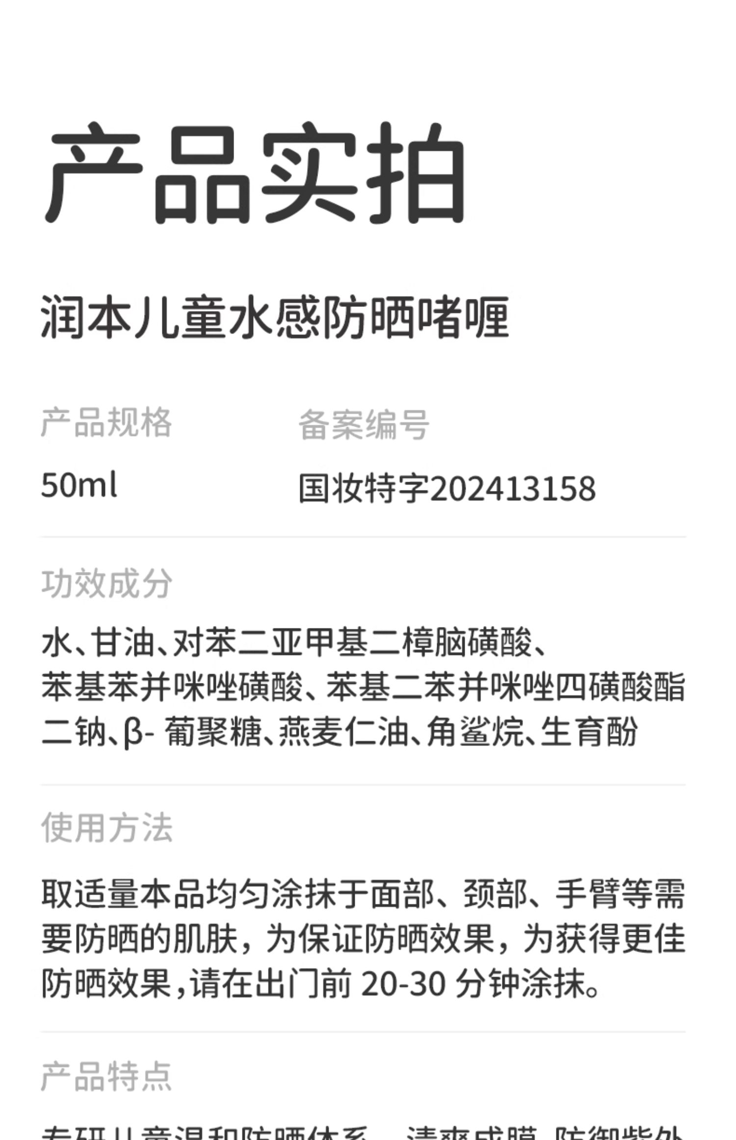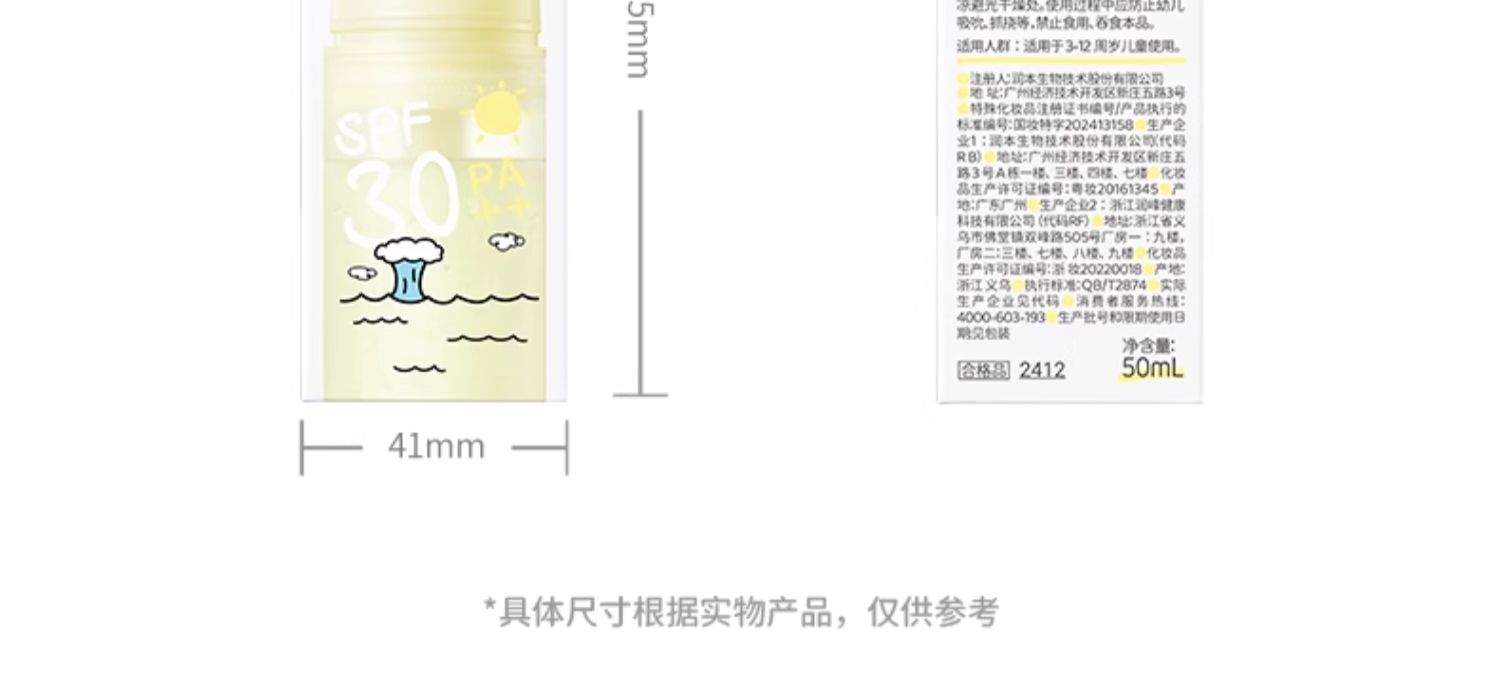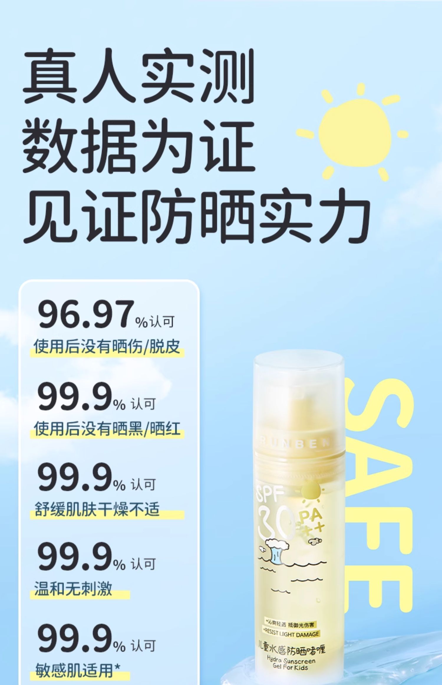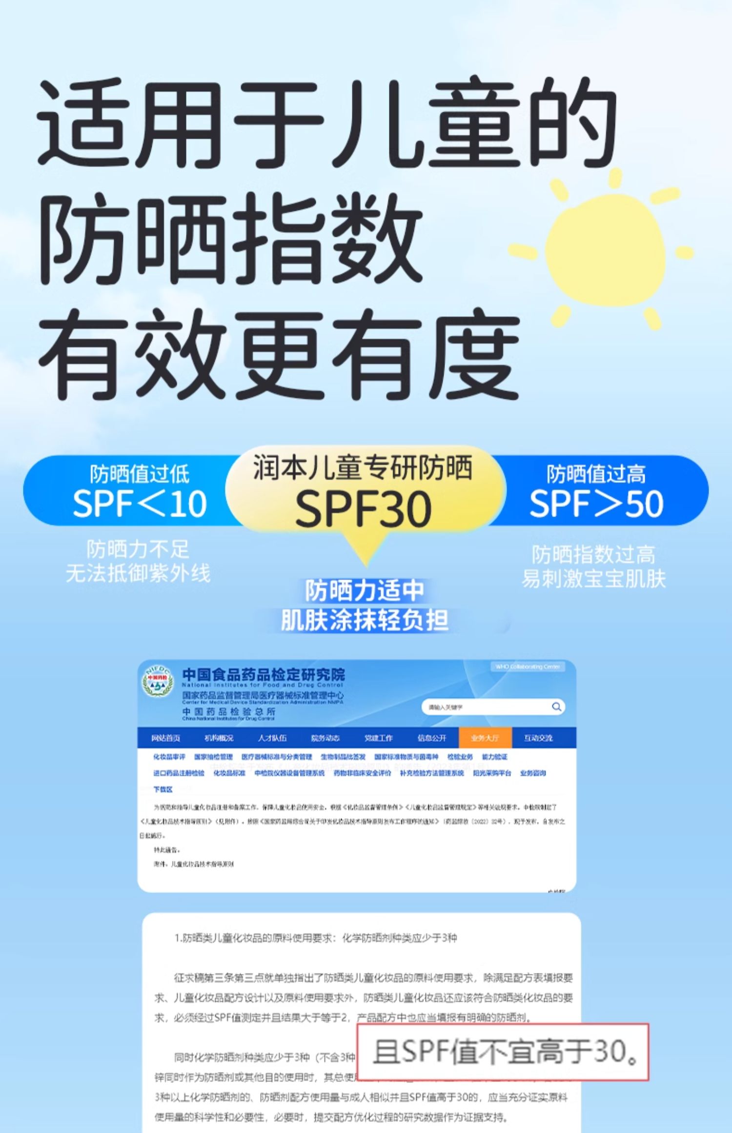 润本儿童水感防晒啫喱50ml SPF25 PA++(真空泵)【全新品】