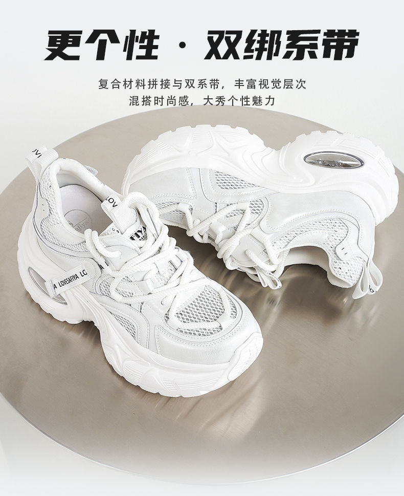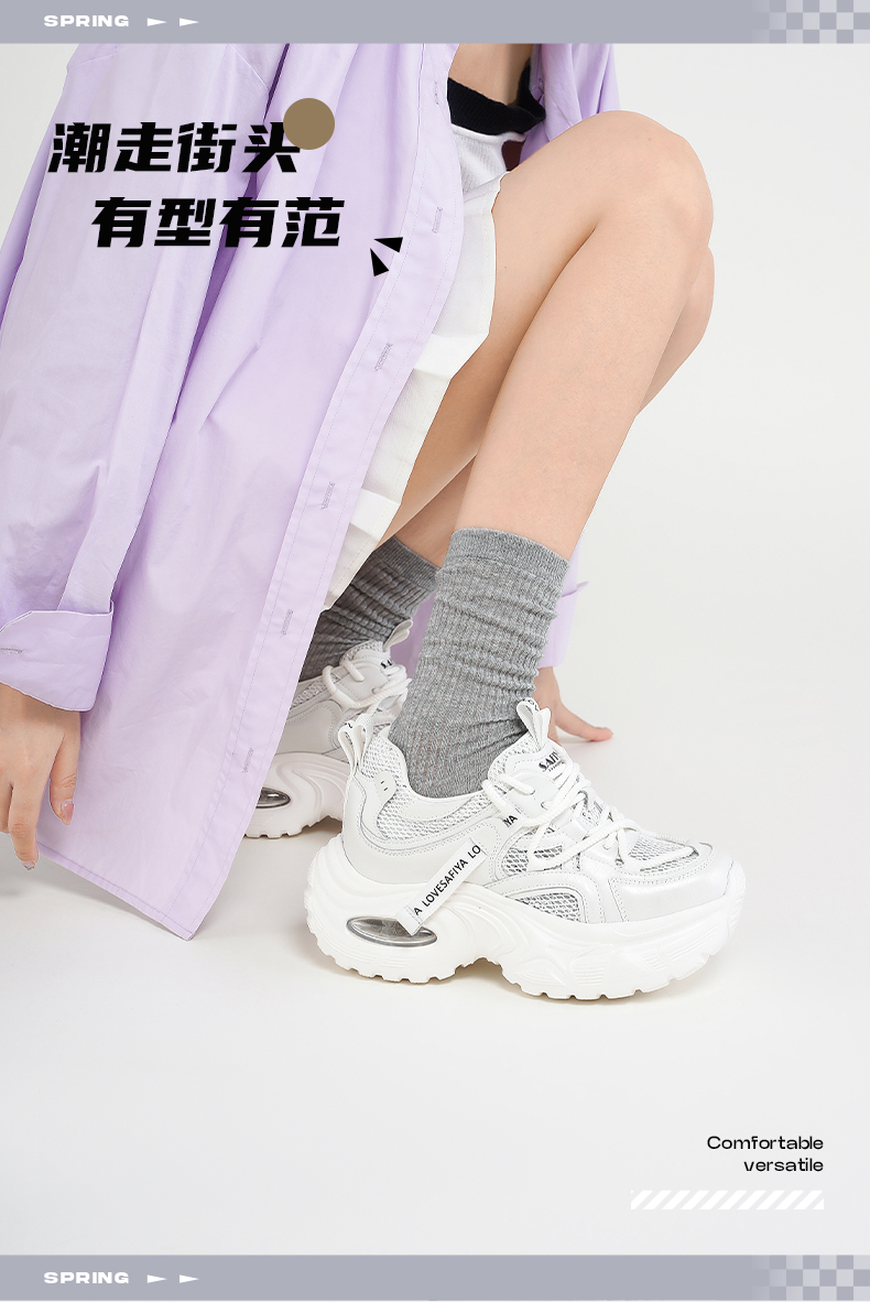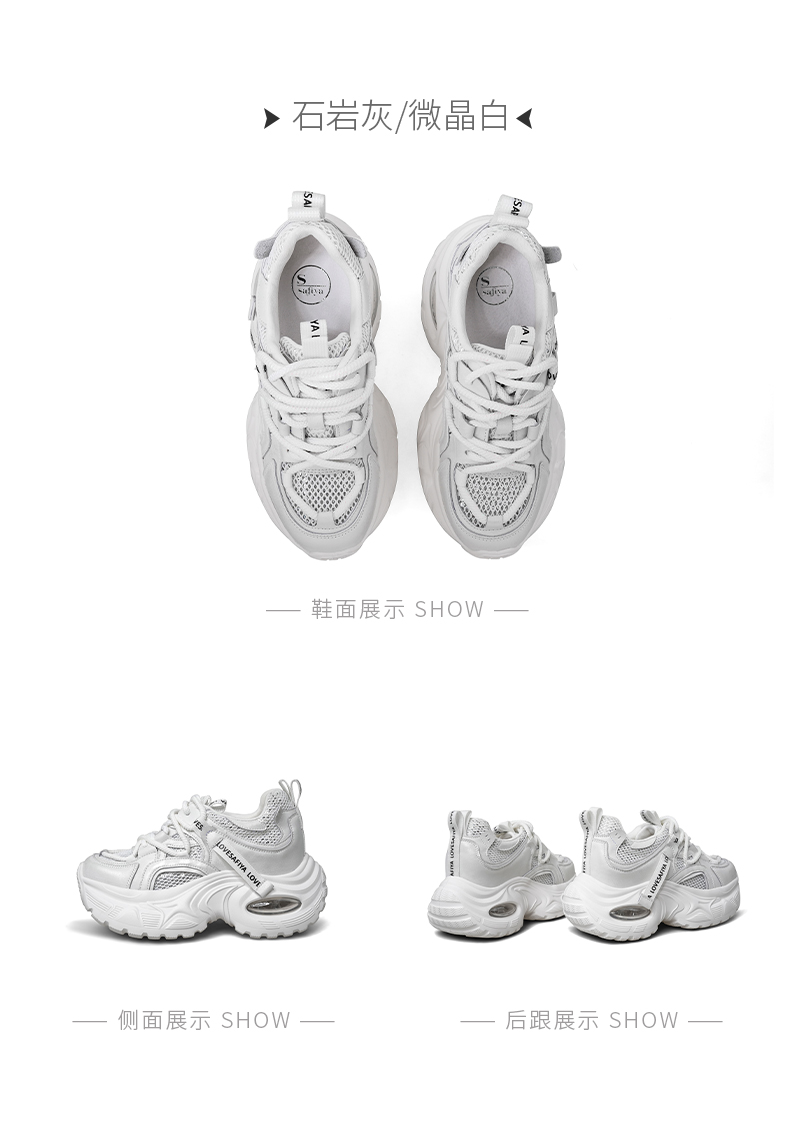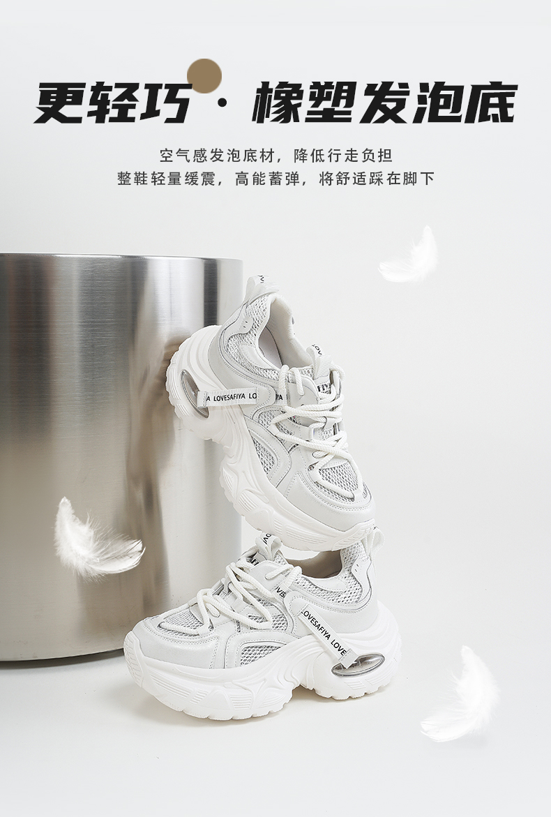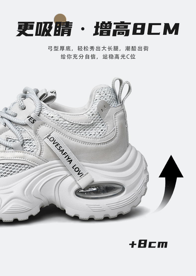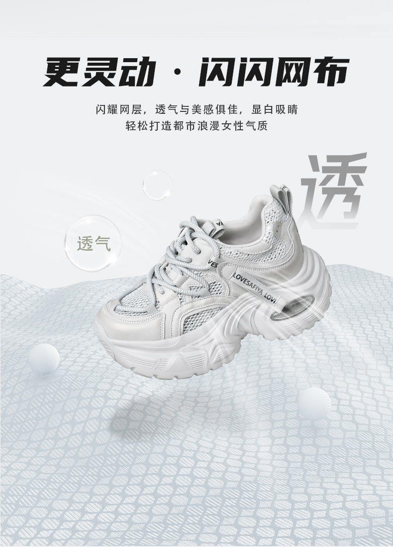 Safiya/索菲娅2025小个子爆高厚底网面透气轻便休闲运动老爹鞋SFD3112123