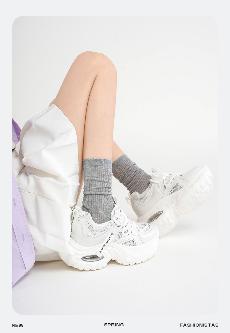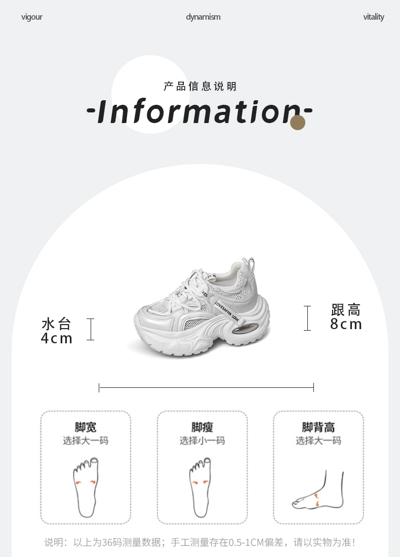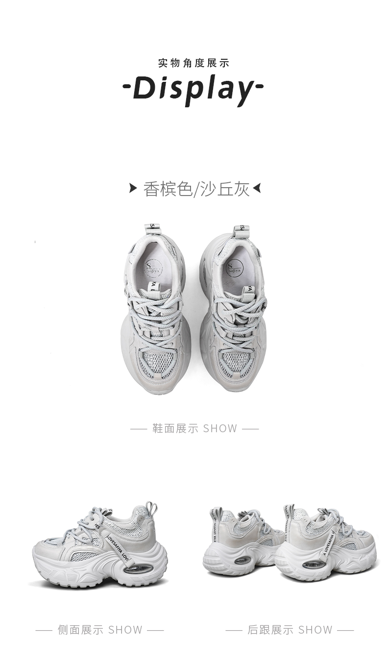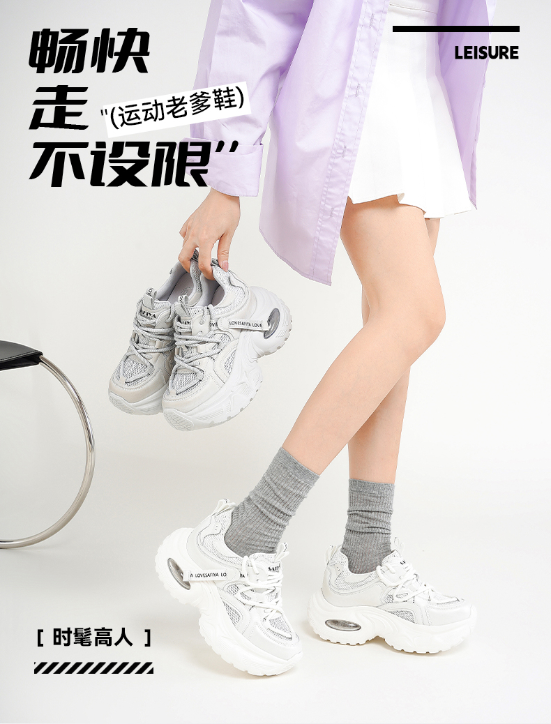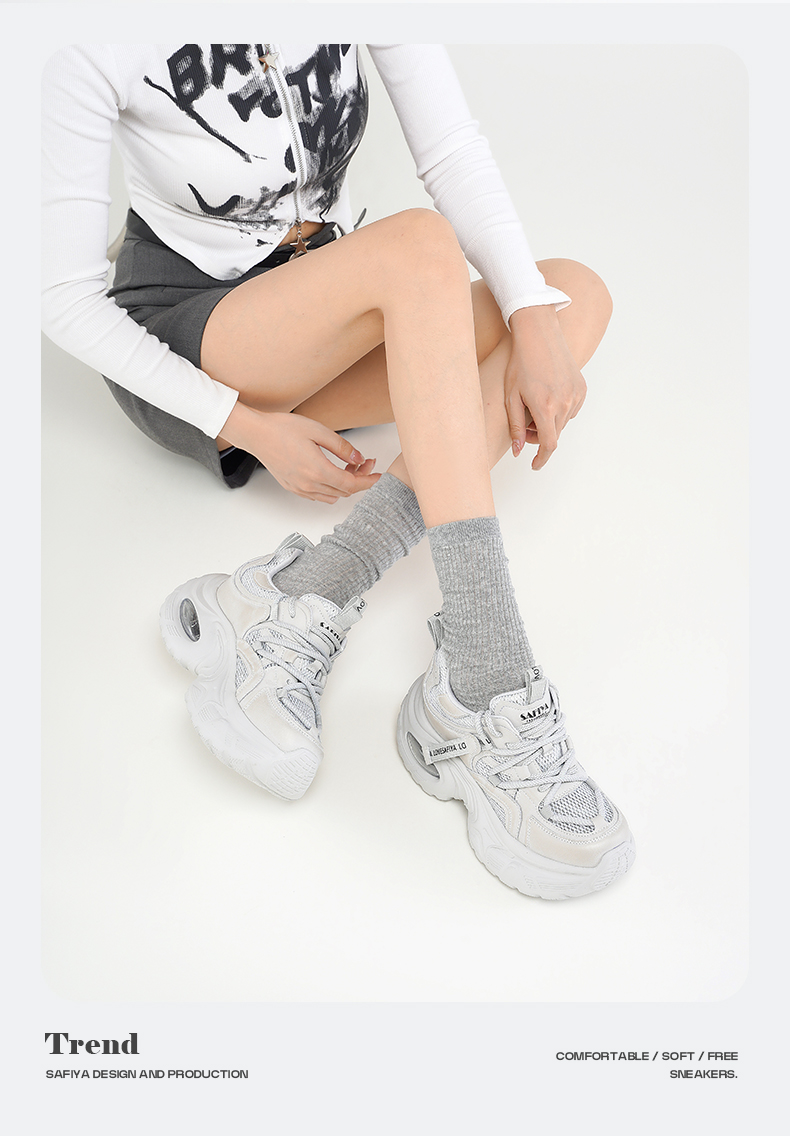Safiya/索菲娅2025小个子爆高厚底网面透气轻便休闲运动老爹鞋SFD3112123