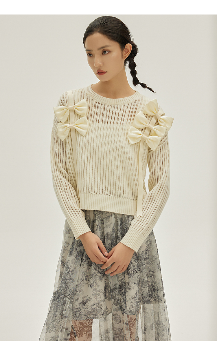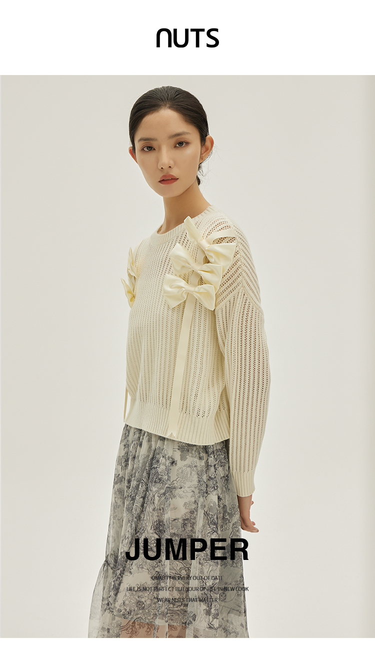 NUTS商场同款春秋季设计感气质镂空百搭短款毛织套头衫女333052195