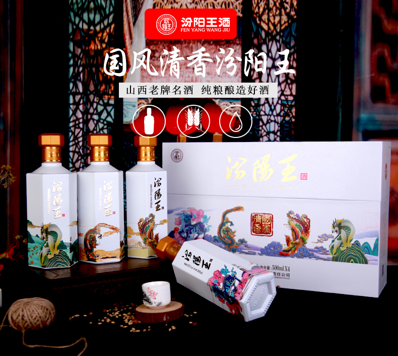 汾阳王53°国风清香500ML*4瓶清香型白酒礼盒装