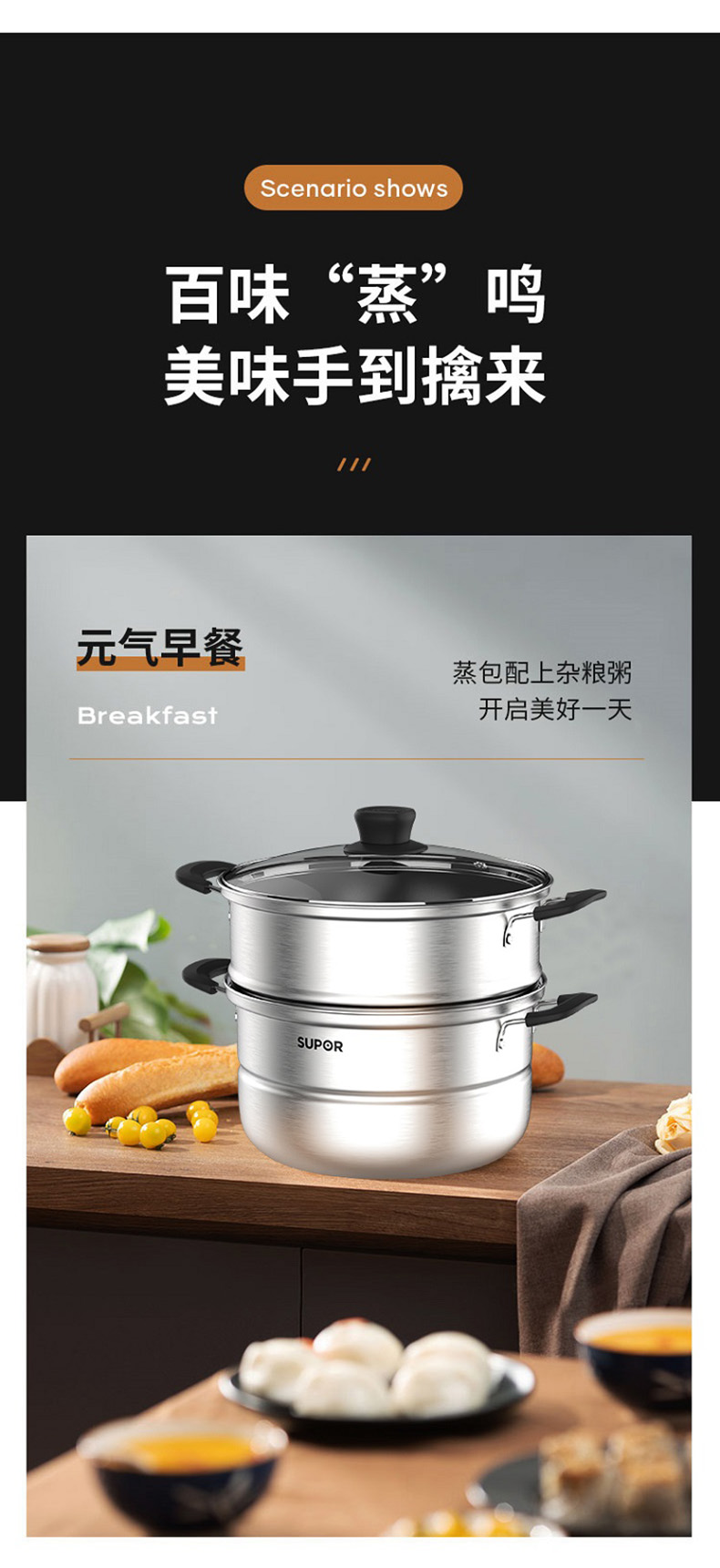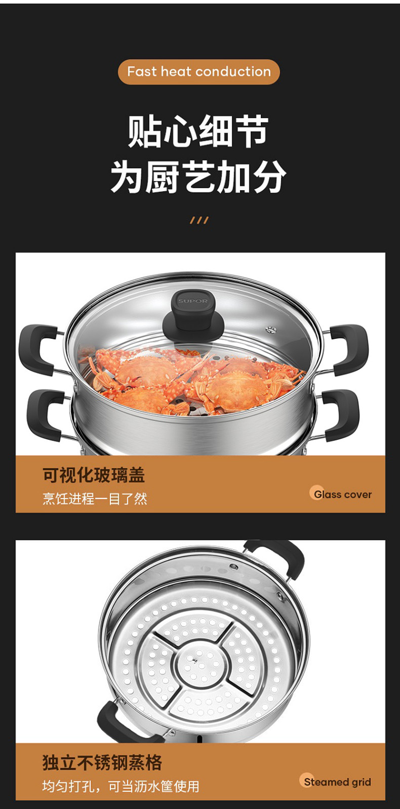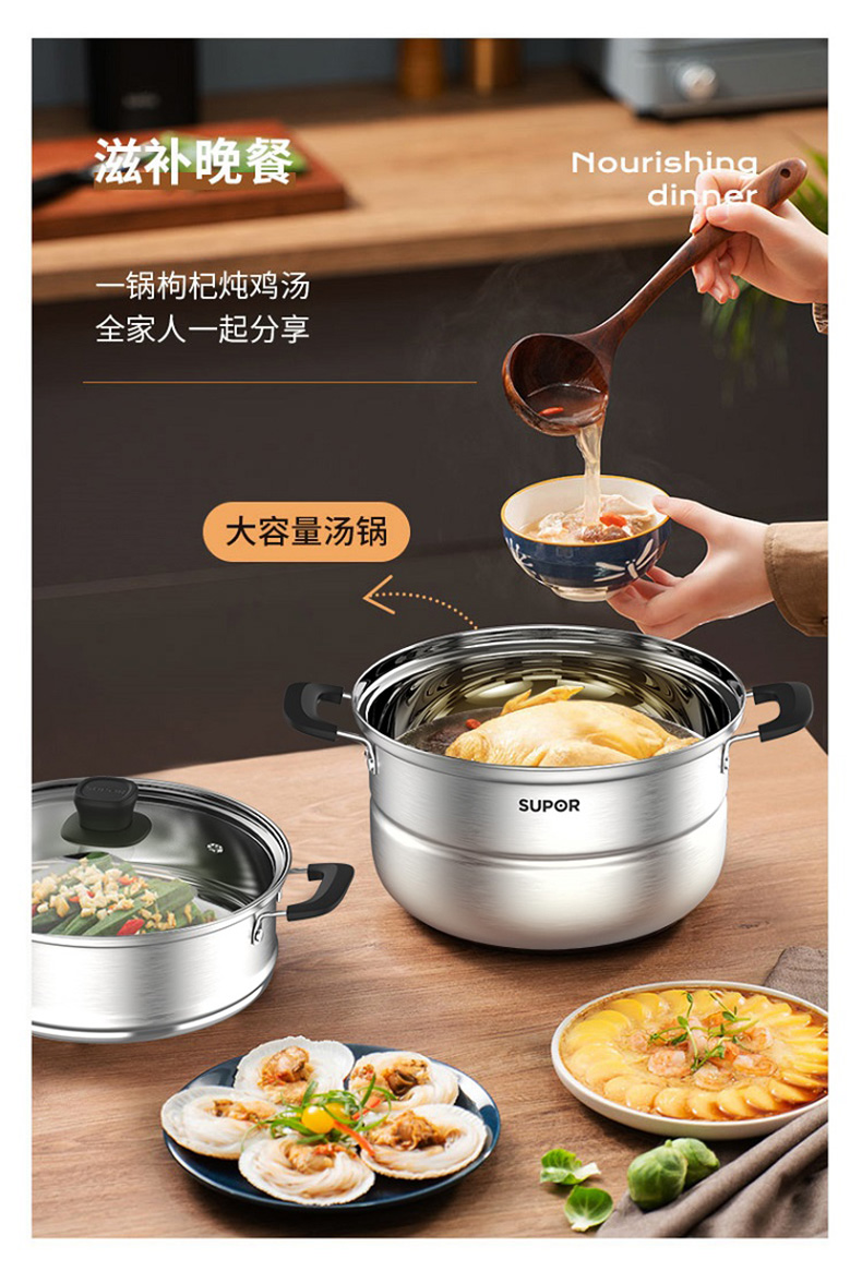【内购专享】苏泊尔好帮手不锈钢双层蒸锅VZ26BS05
