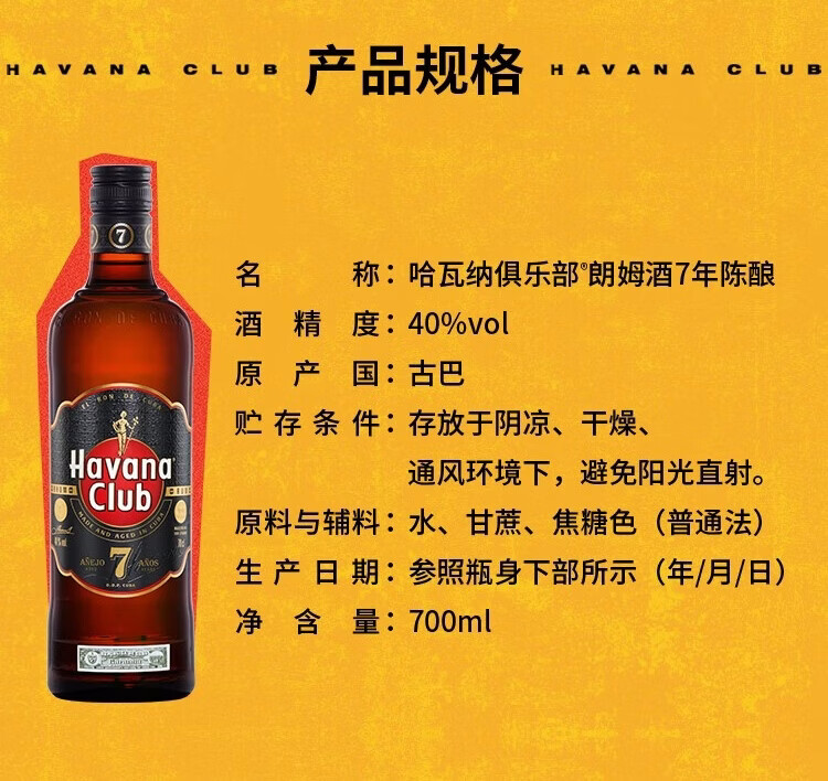哈瓦纳俱乐部 7年朗姆酒 700ml