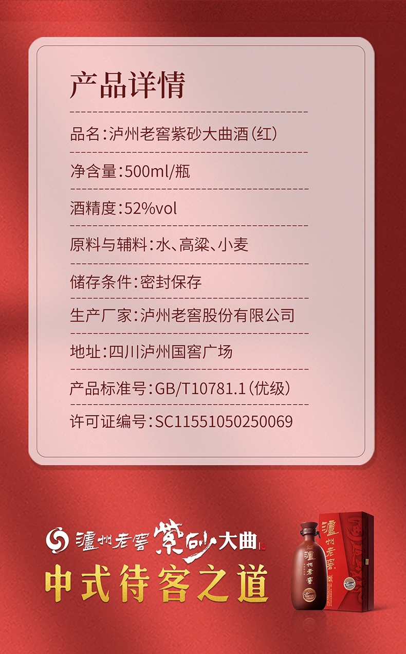 自营(泸州老窖)-泸州老窖紫砂大曲红陶52度500ml浓香型婚宴喜酒商务礼品收藏酒
