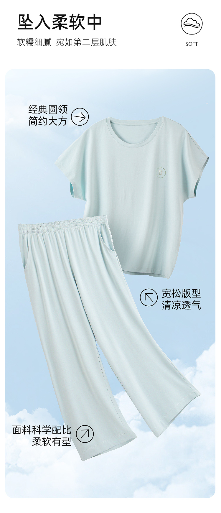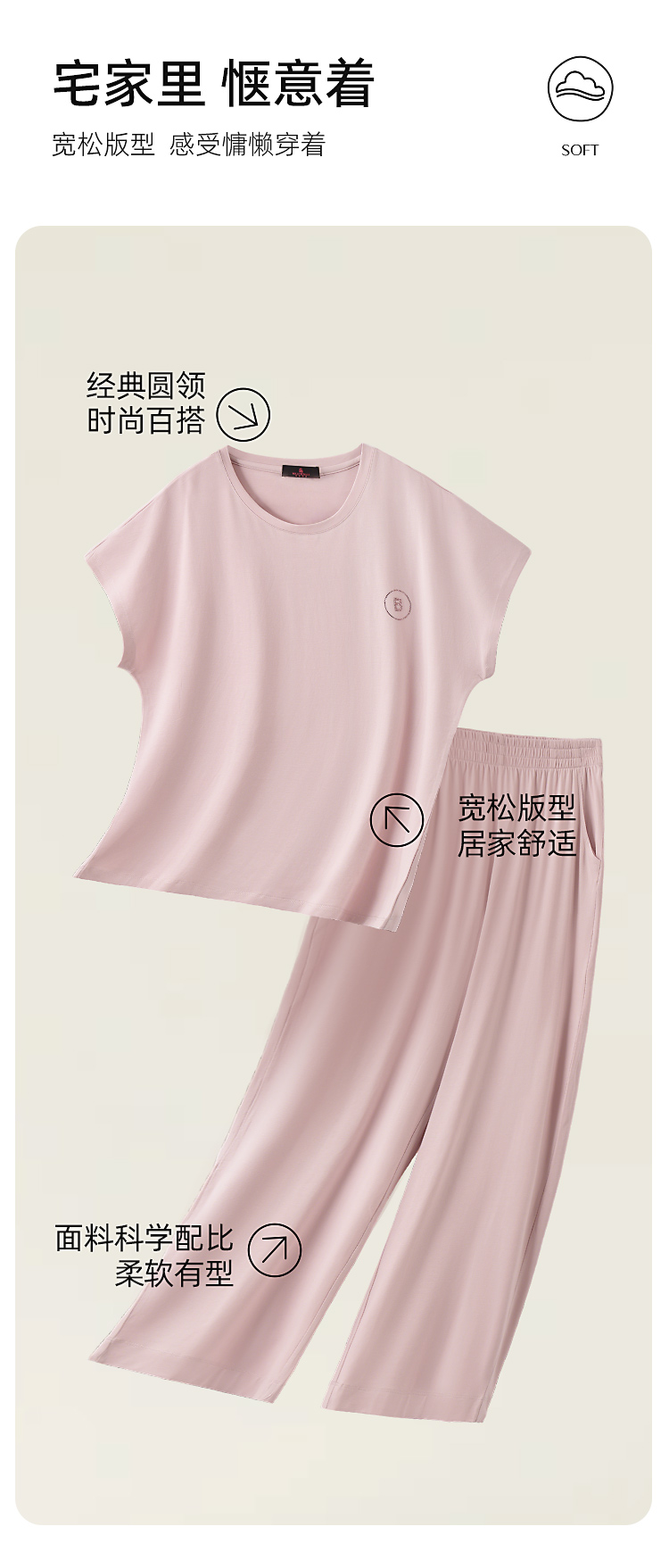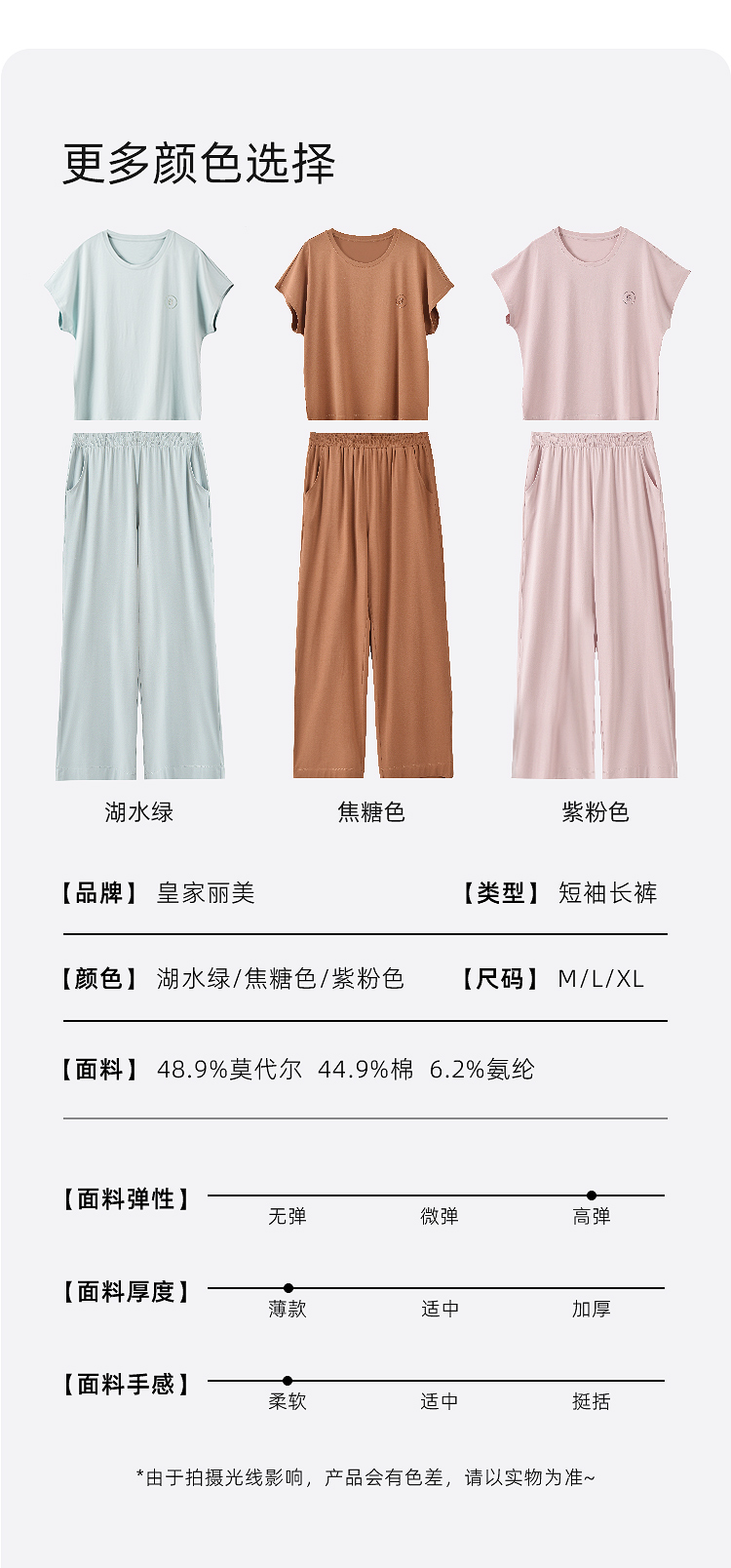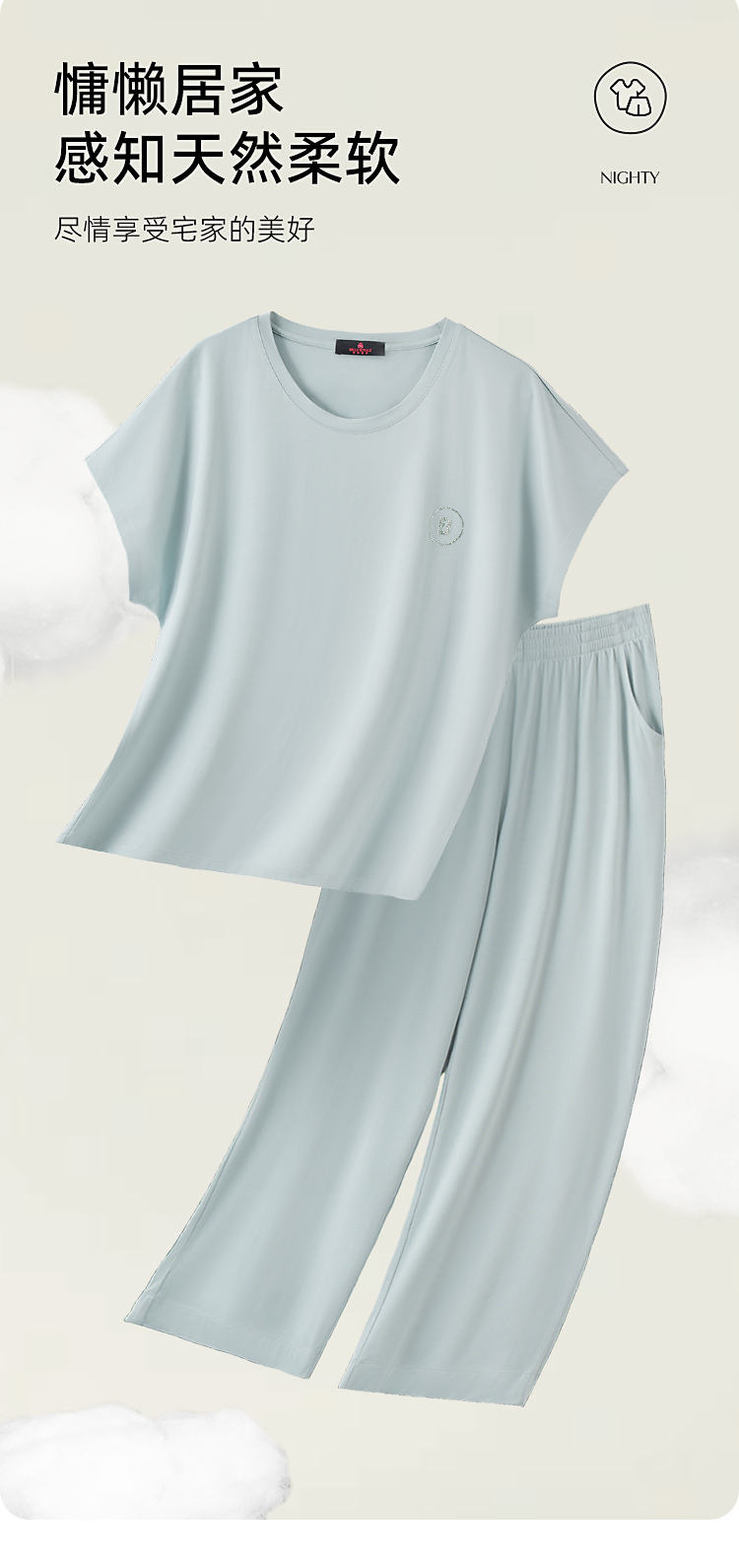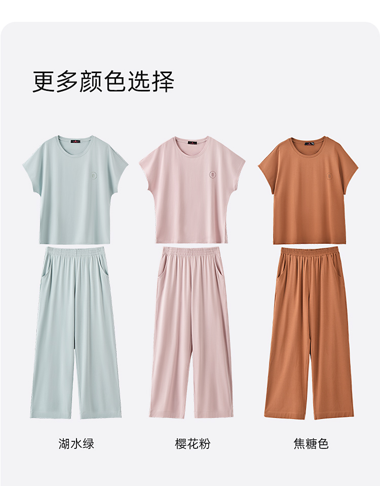 【断码上新🔥秒杀99元】皇家丽美睡衣女夏薄款莫代尔棉凉感简约纯色舒适短袖长裤可外穿家居服套装JJT9967