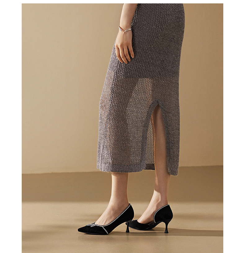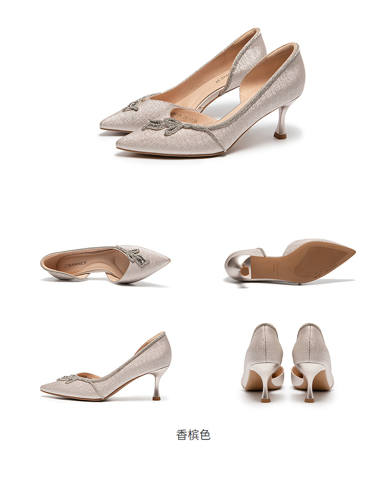千百度细高跟半凉鞋女中空宴会婚鞋绝美斩时装凉鞋A25250893
