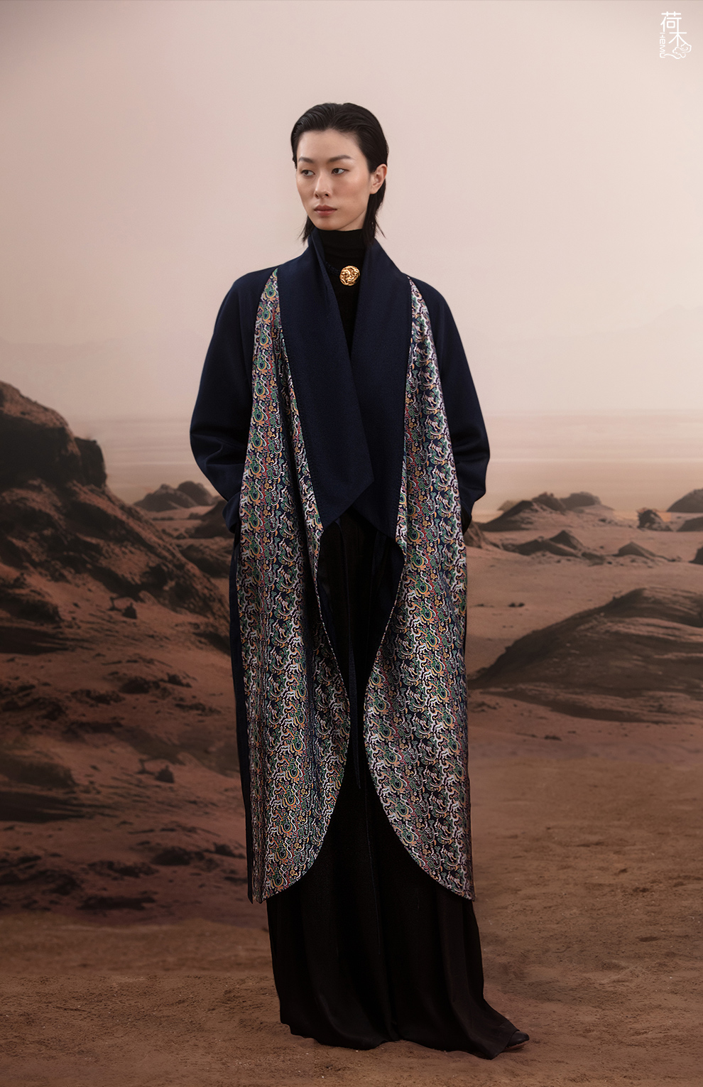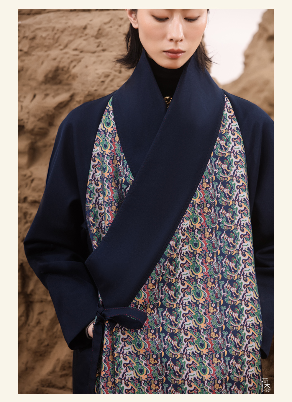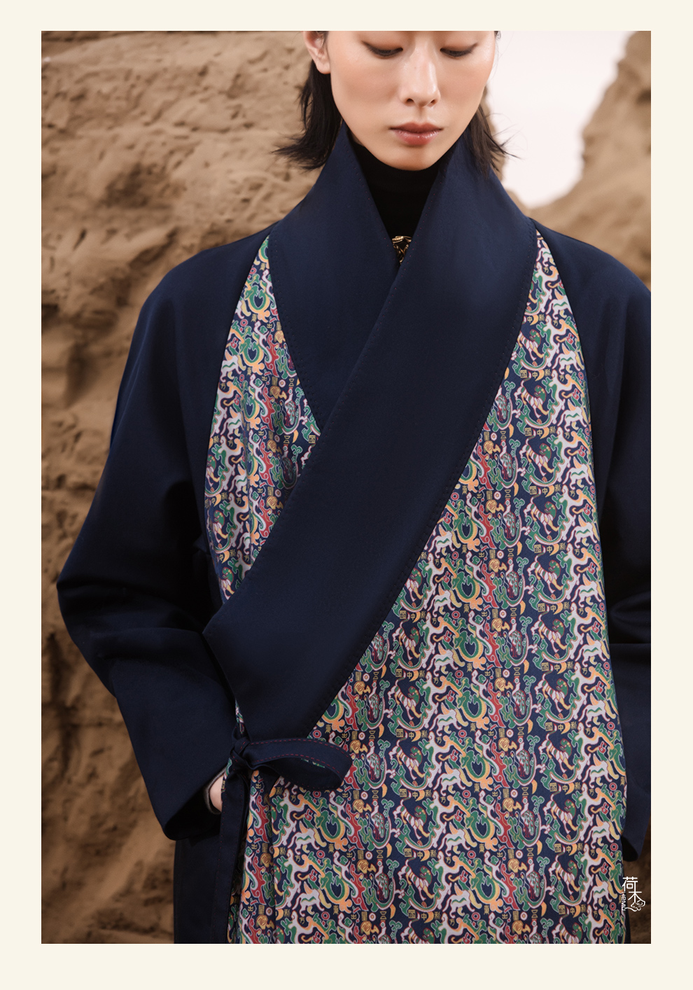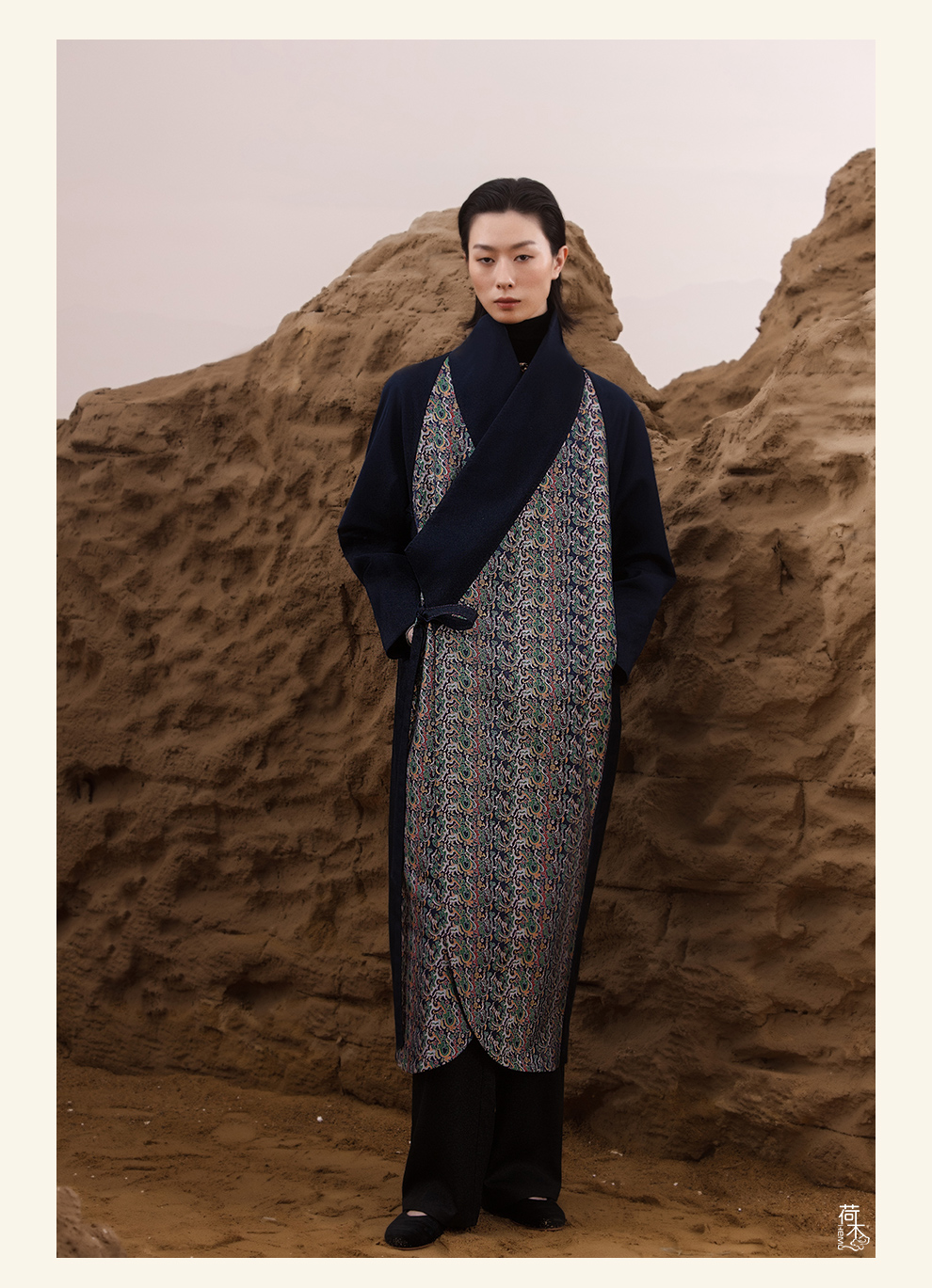 荷木HEMU岐山·双层领重缎印花长袍