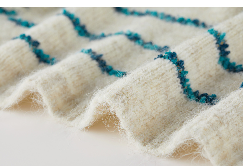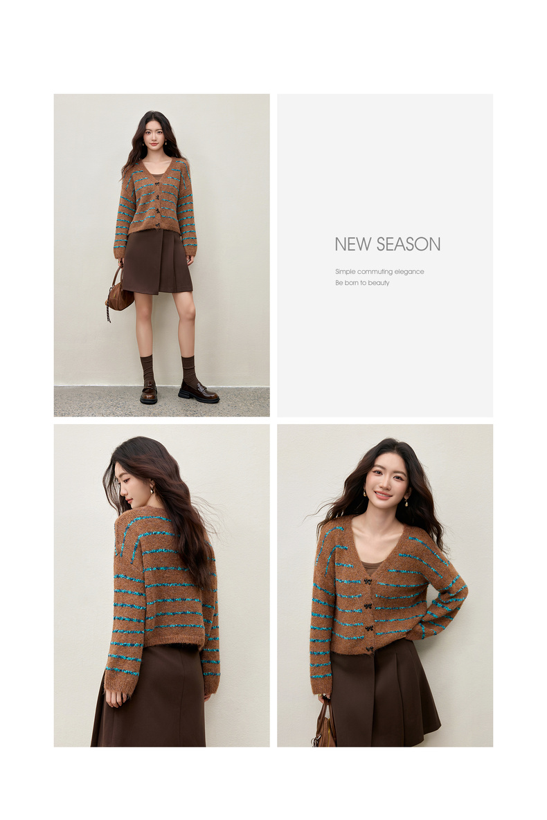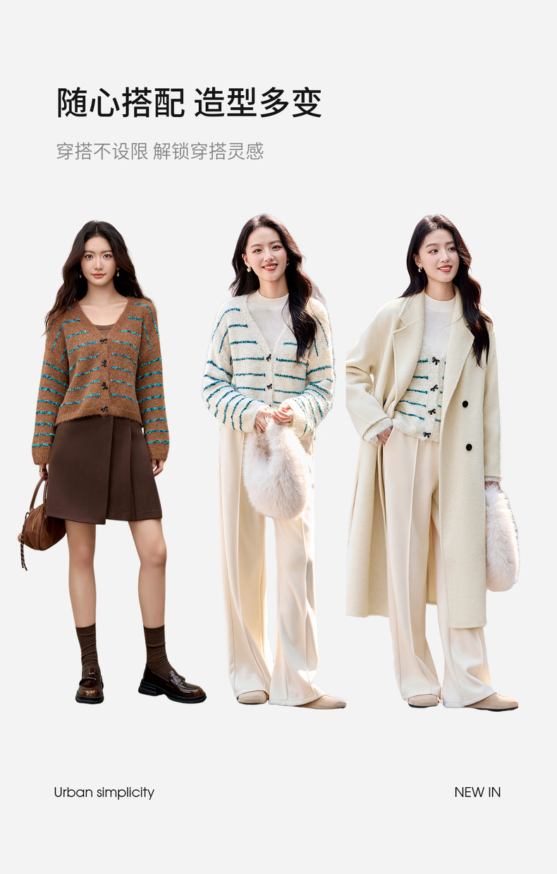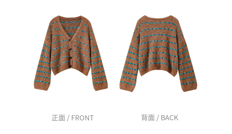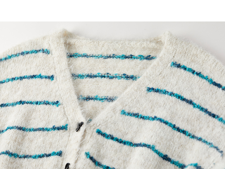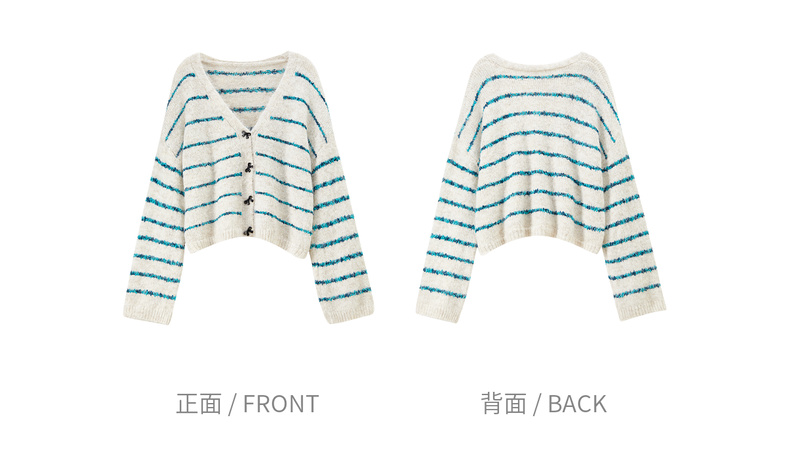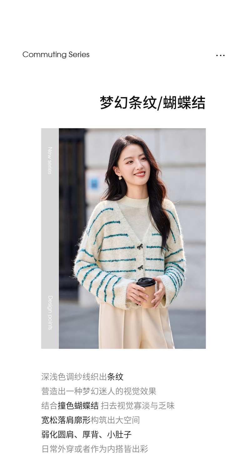 【内购】【梦幻条纹】时尚V领撞色蝴蝶结宽松含绵羊毛弹力厚保暖开衫毛衣-W54EB4846