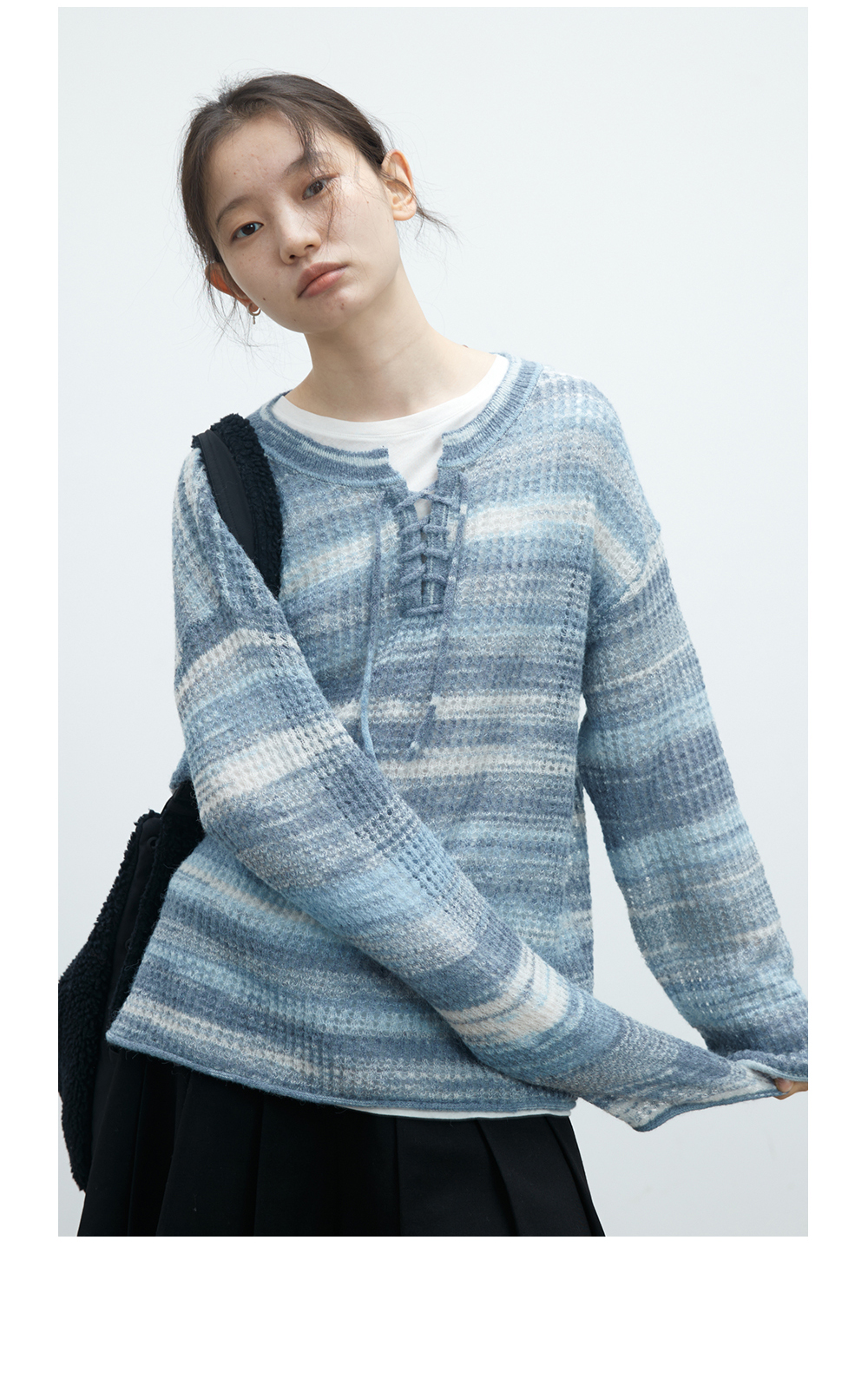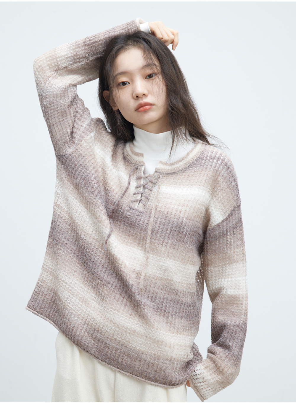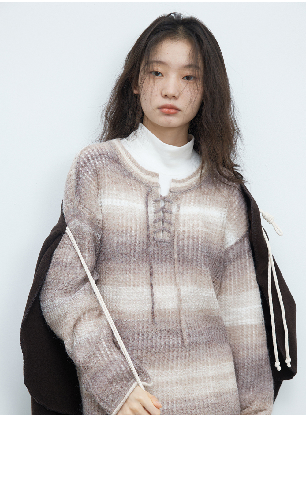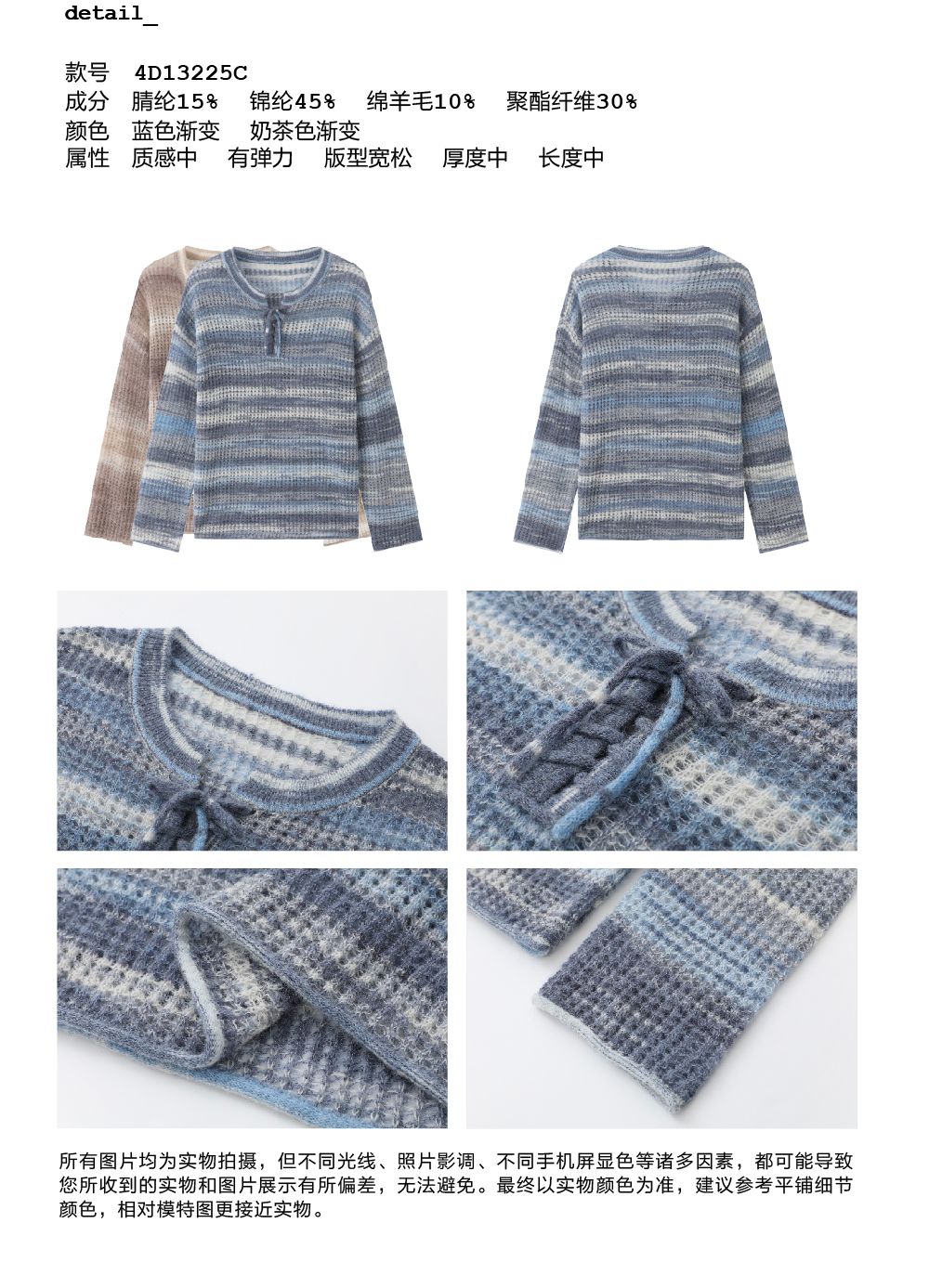 步履不停/4D13225C/镂空抽绳渐变色彩色条纹毛衣