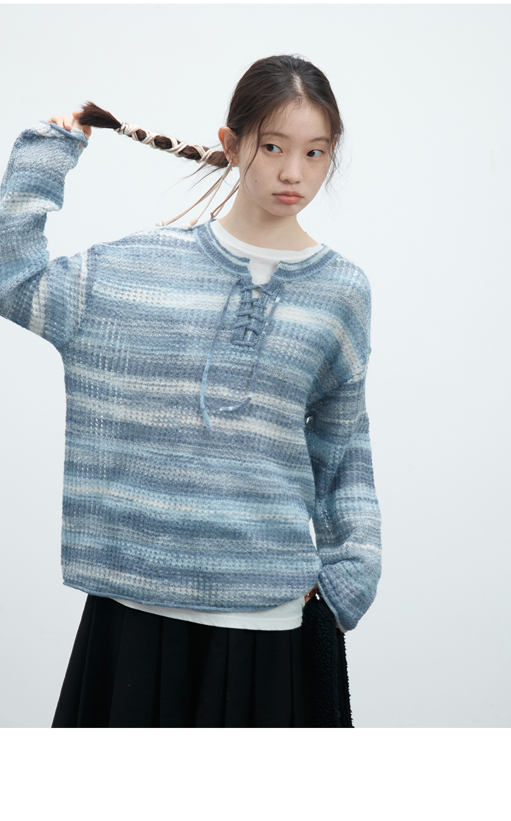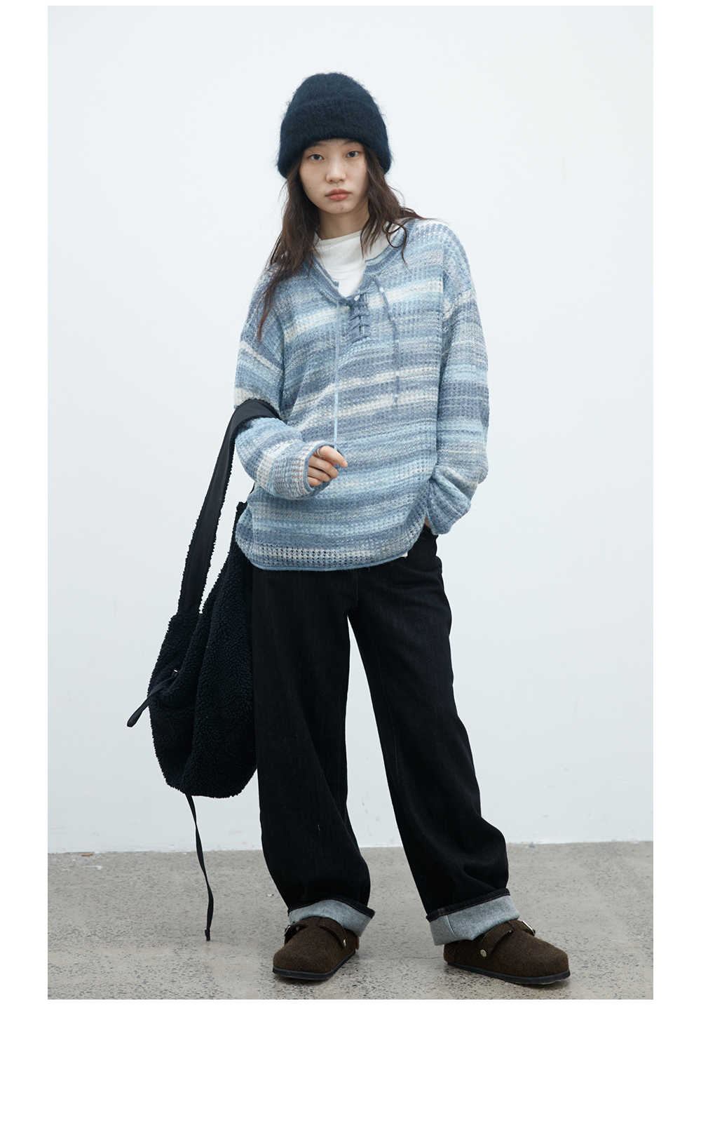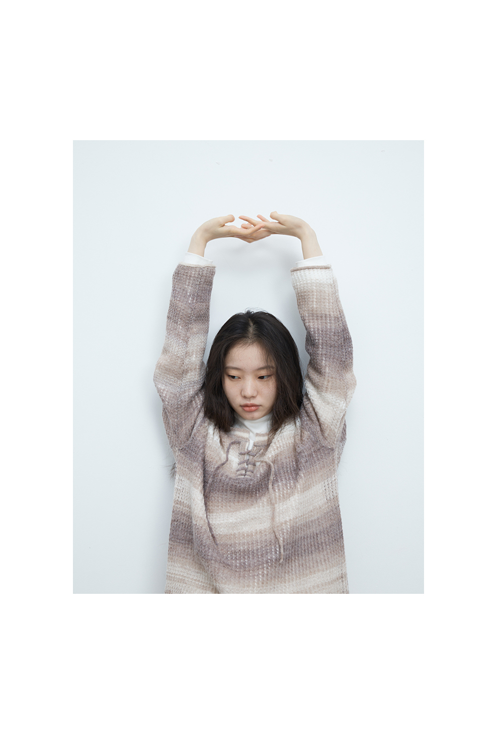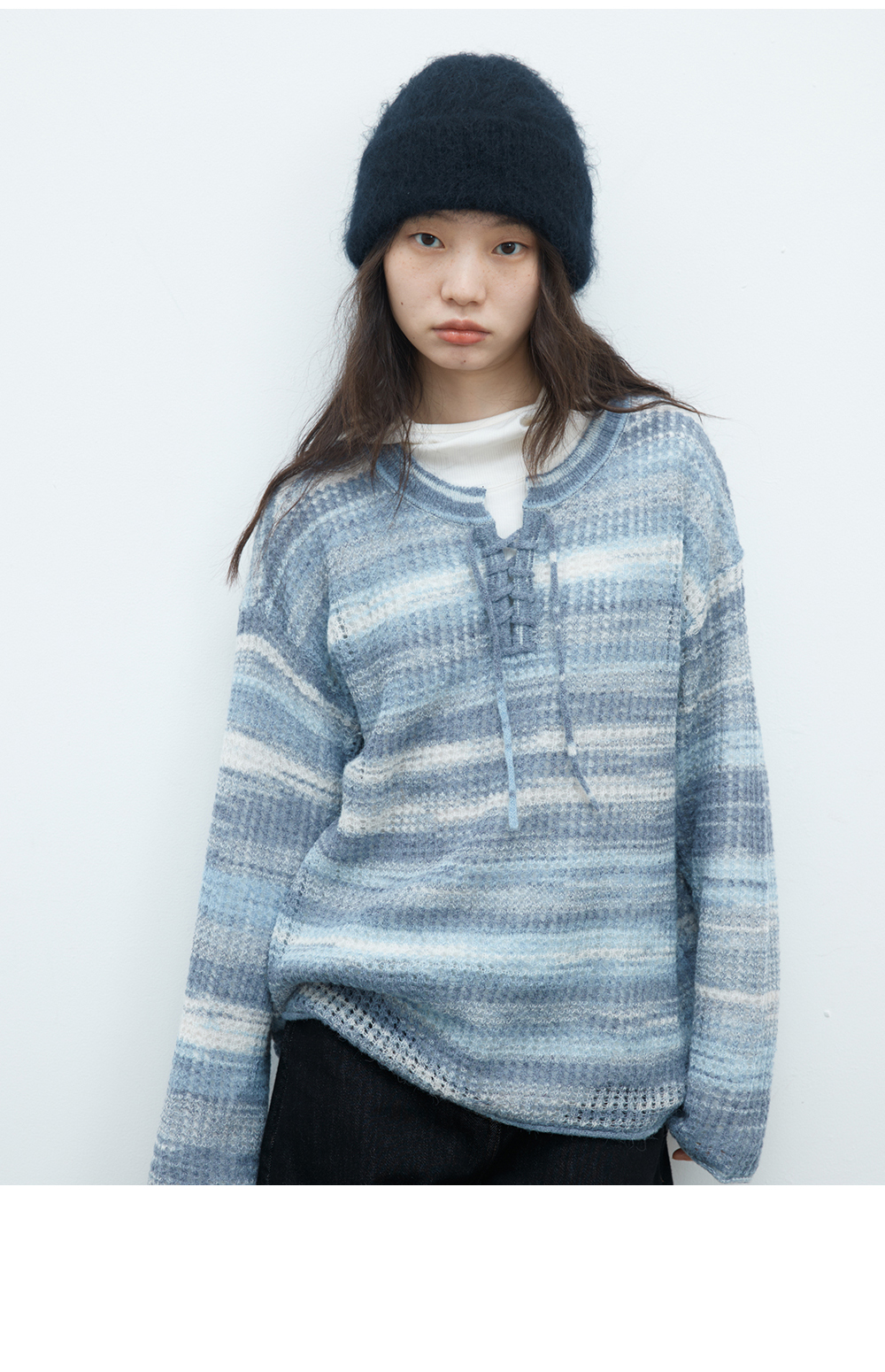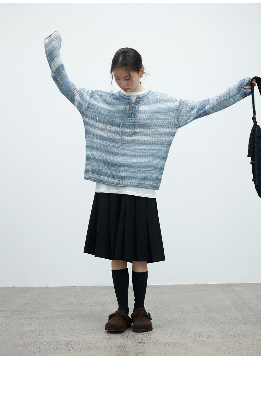 步履不停/4D13225C/镂空抽绳渐变色彩色条纹毛衣