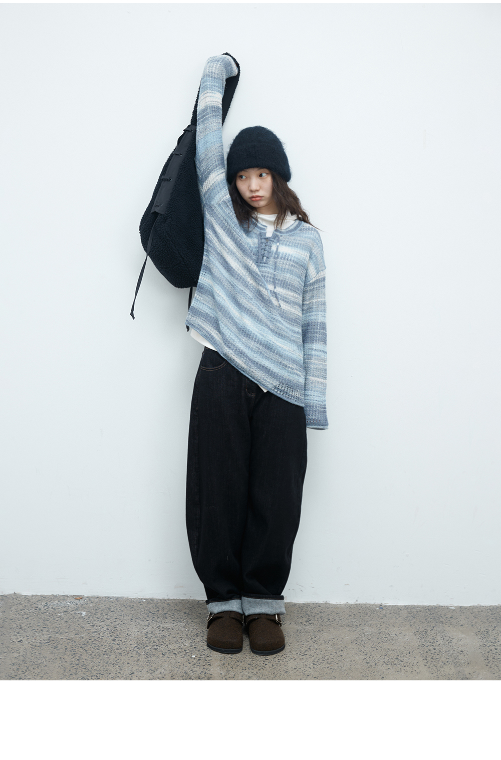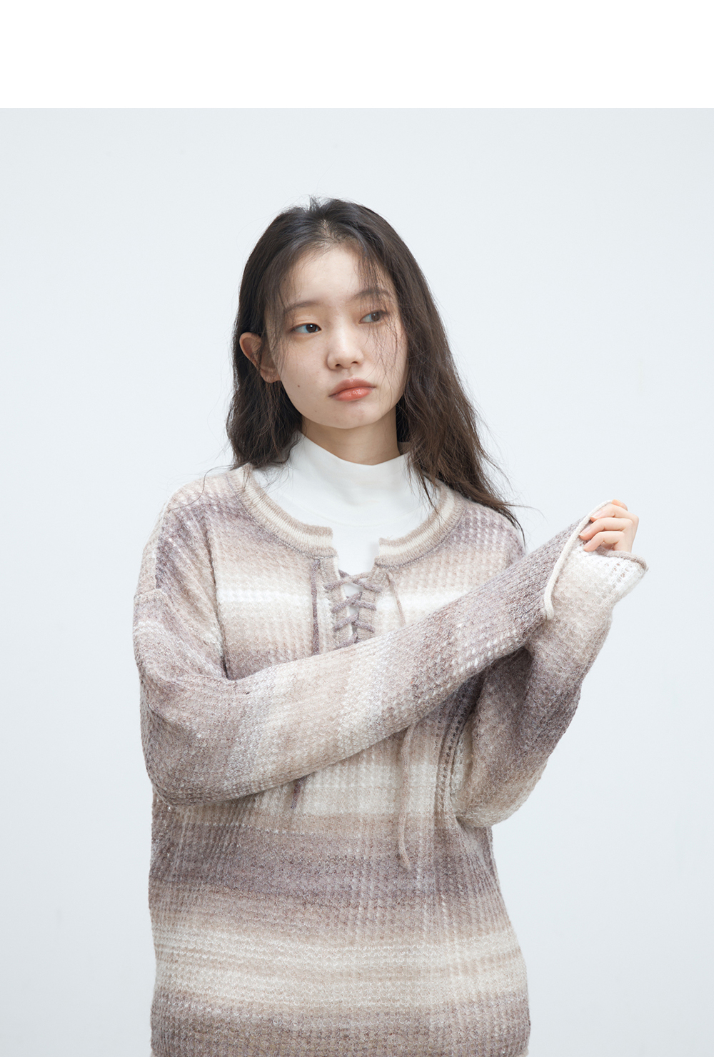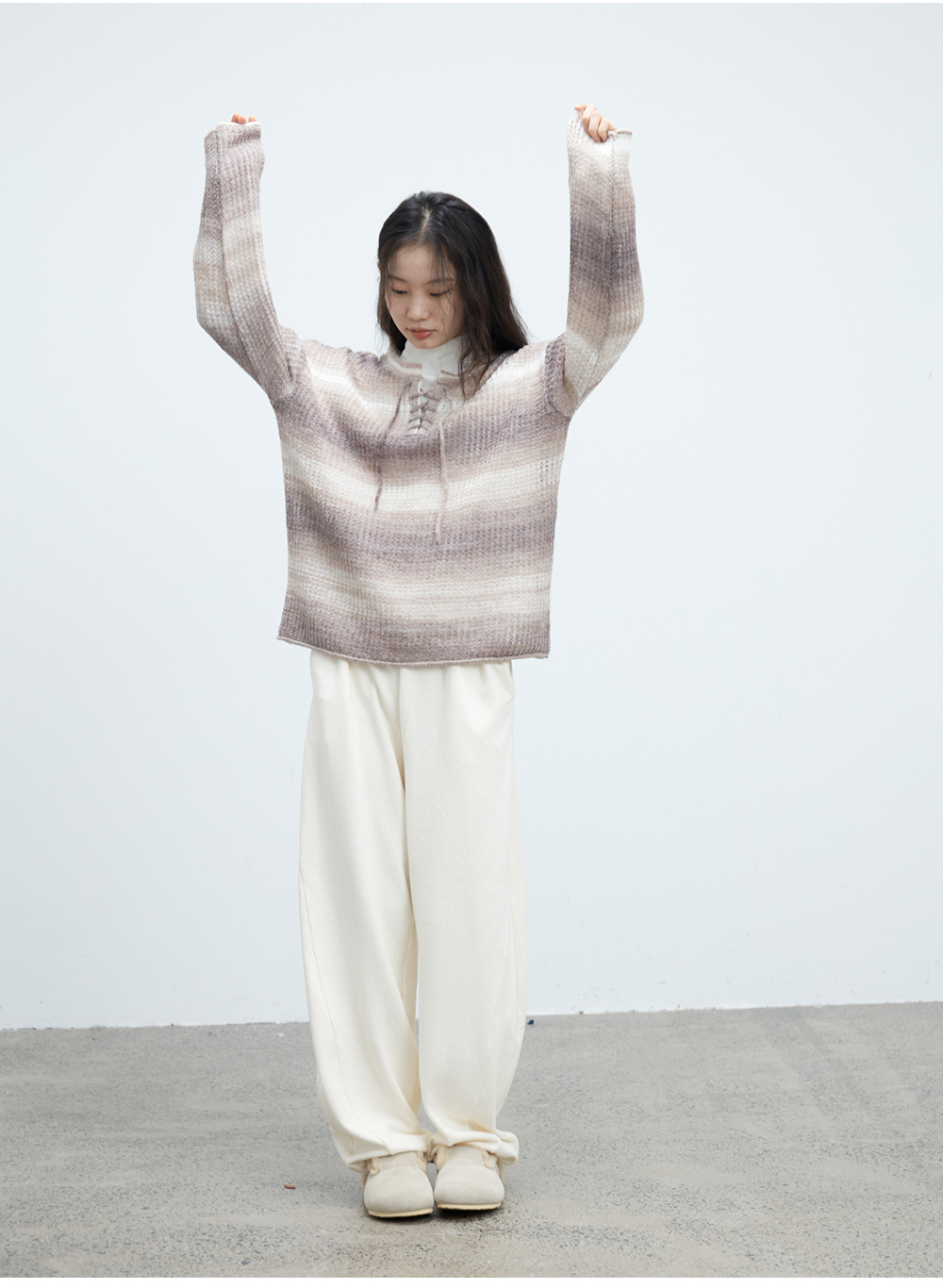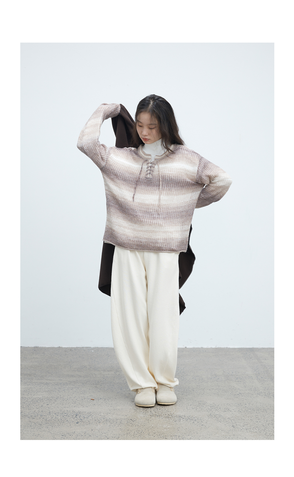 步履不停/4D13225C/镂空抽绳渐变色彩色条纹毛衣