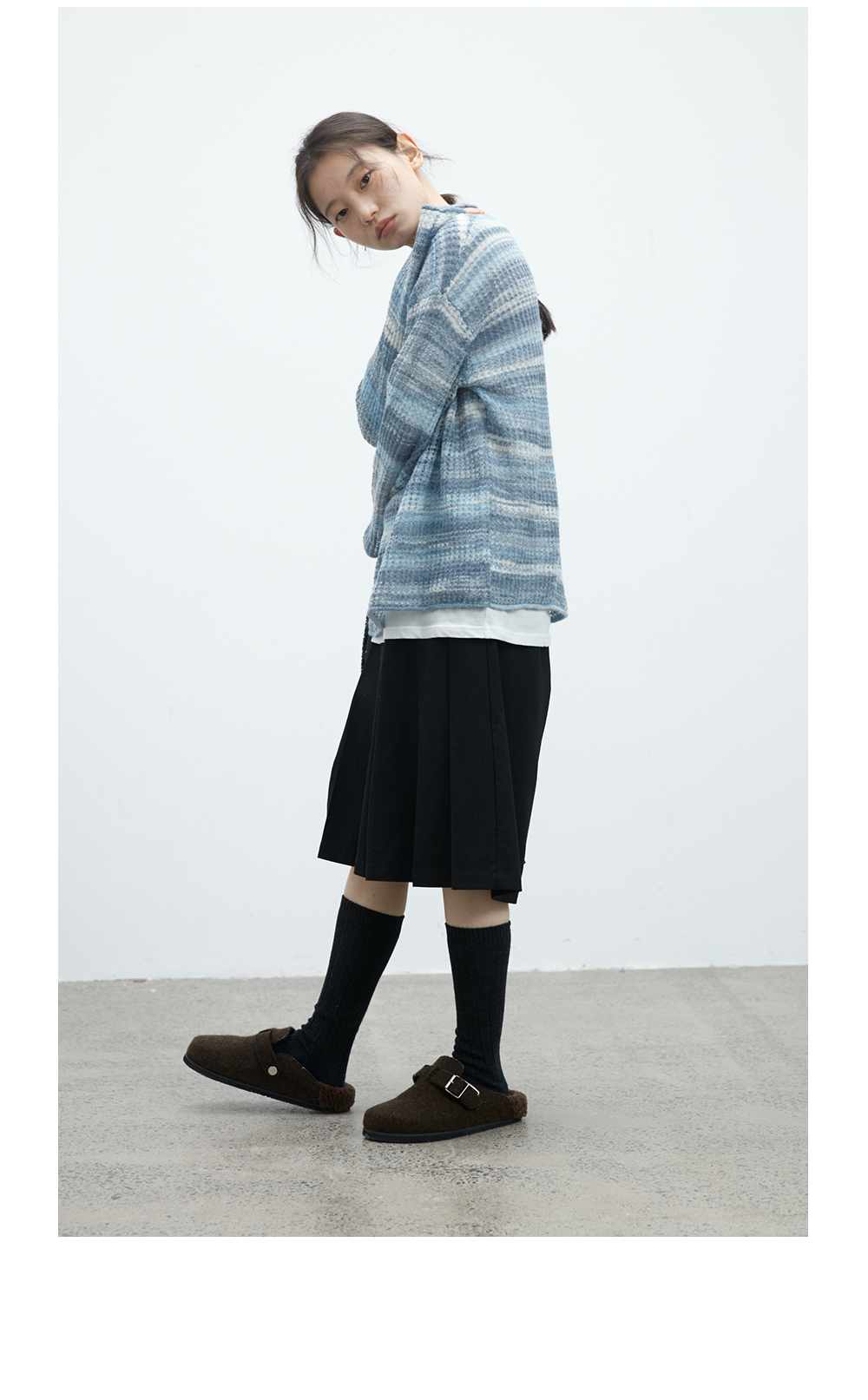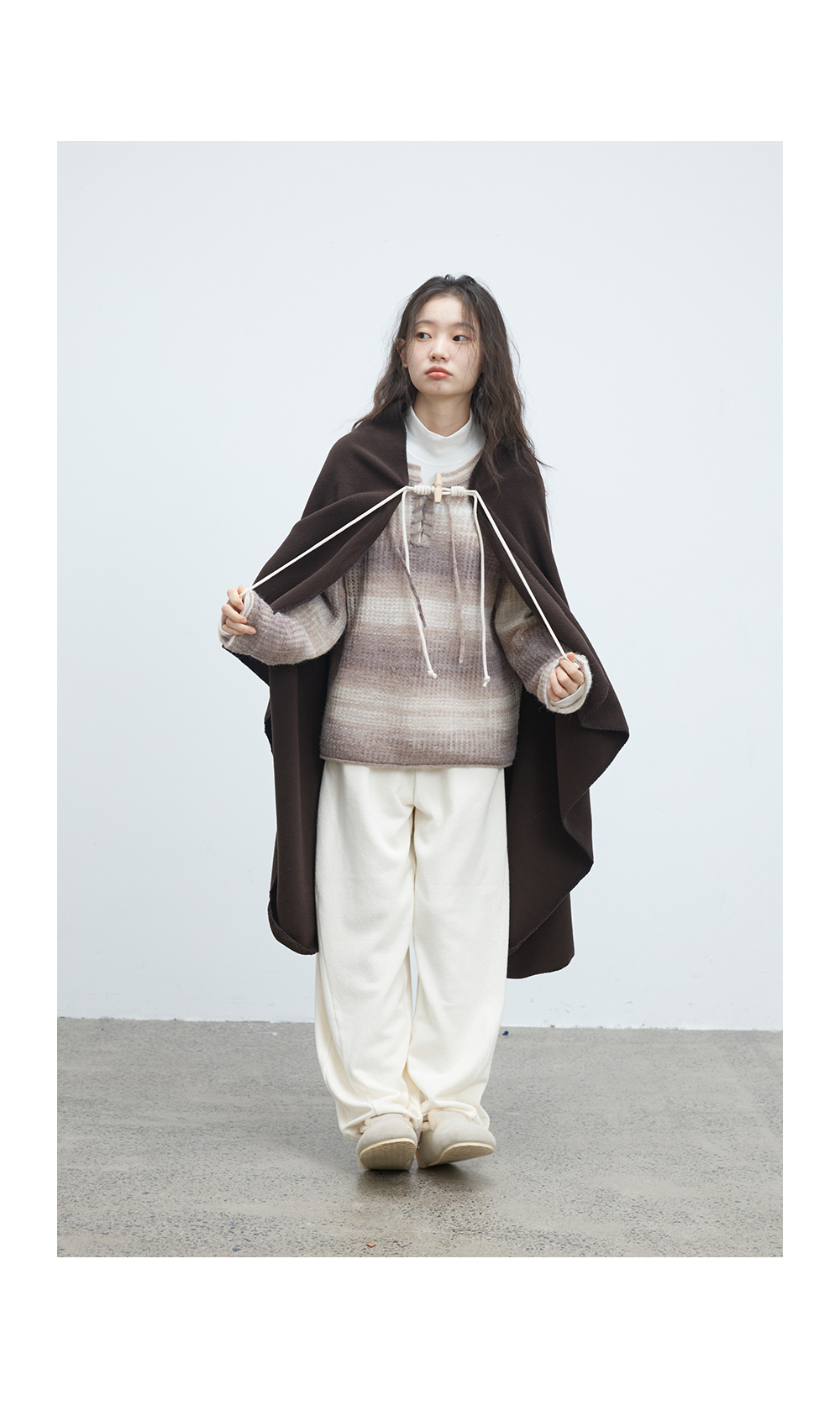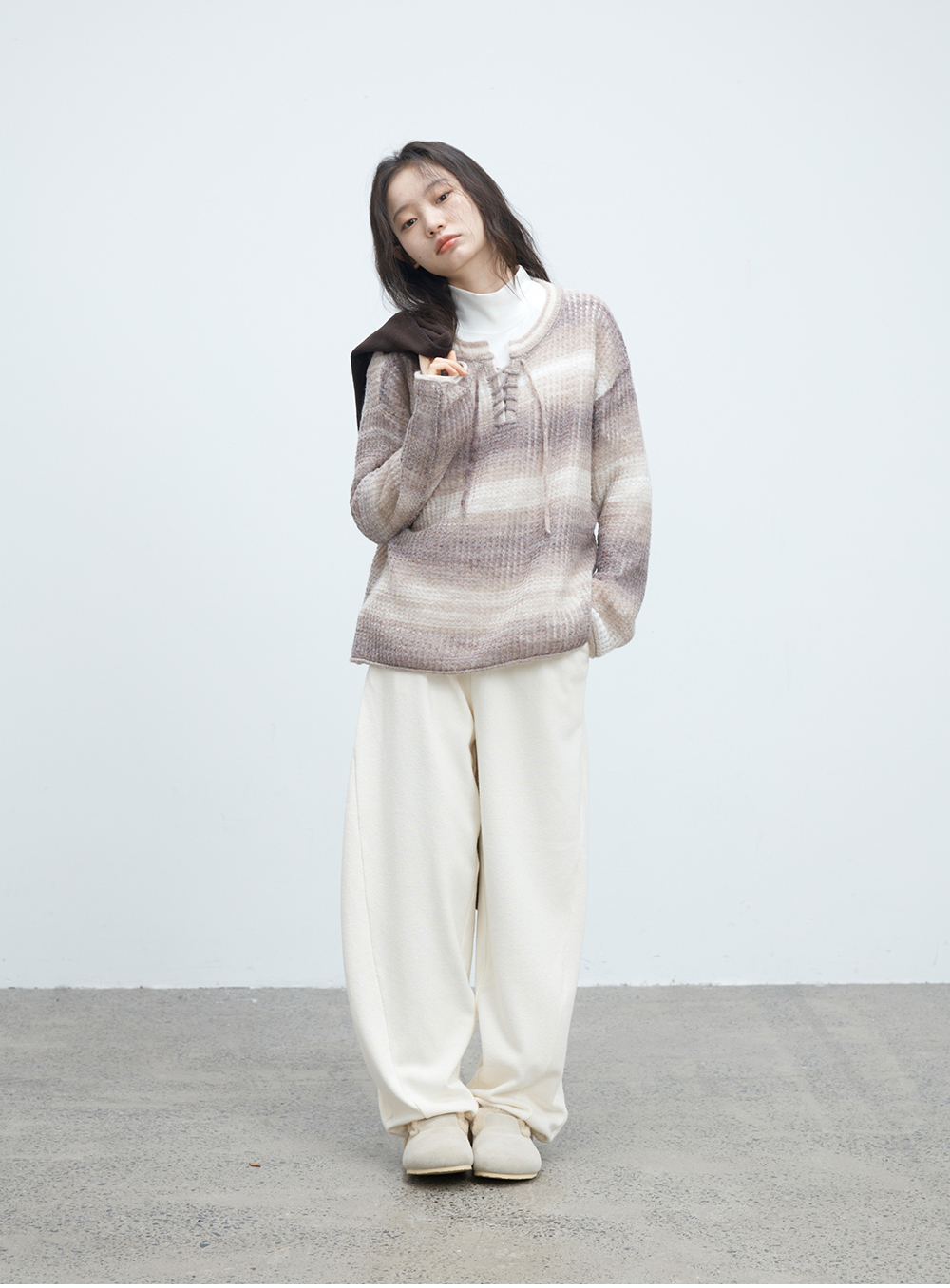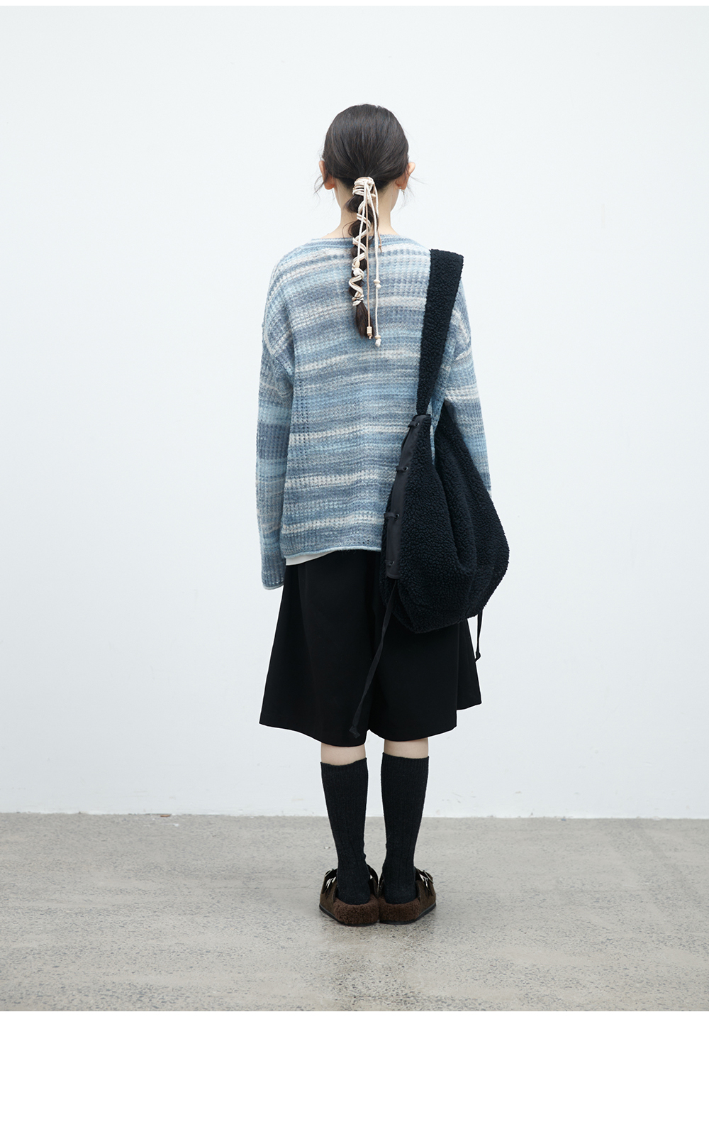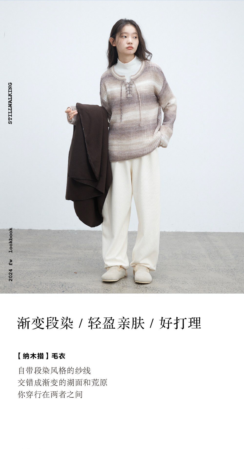 步履不停/4D13225C/镂空抽绳渐变色彩色条纹毛衣