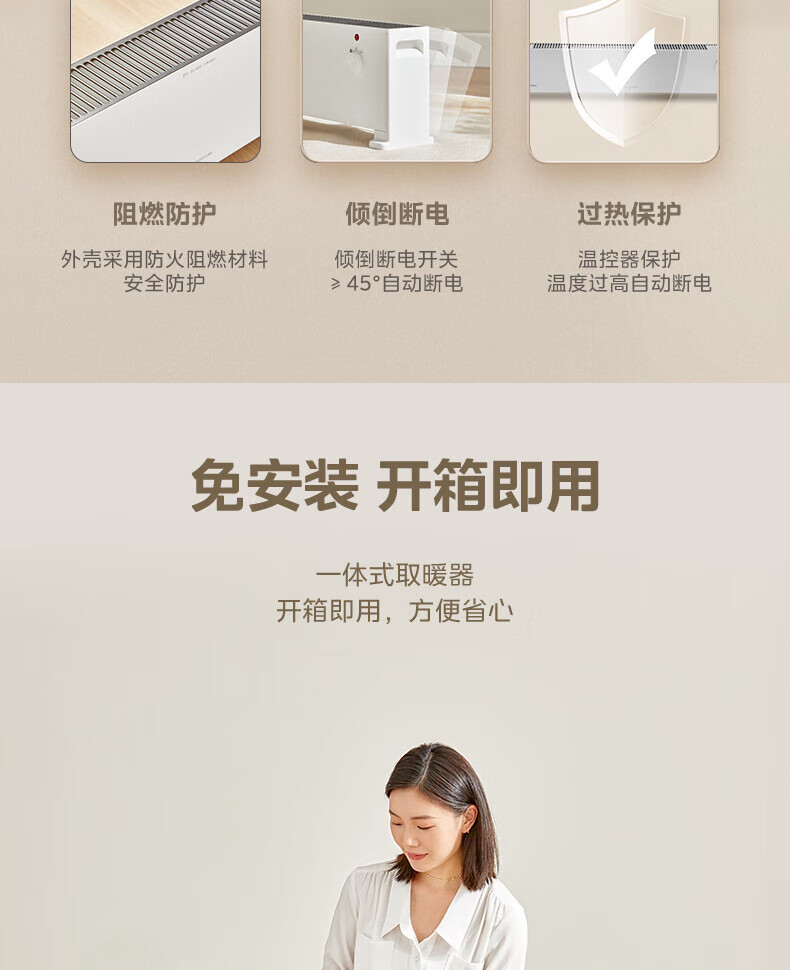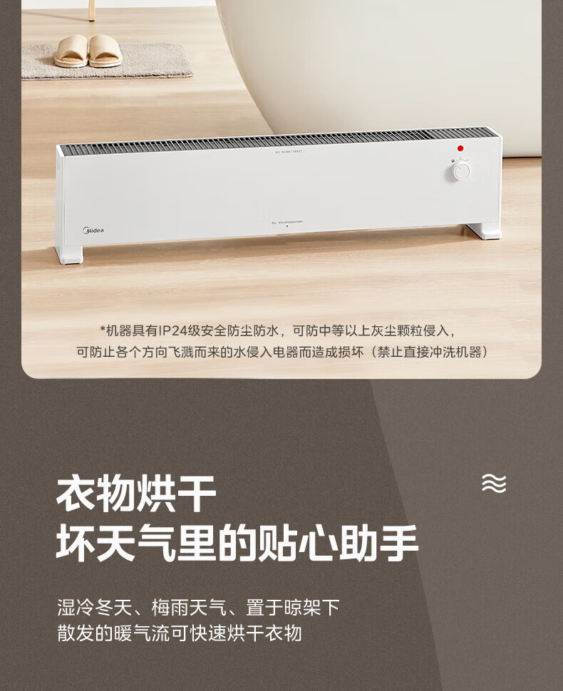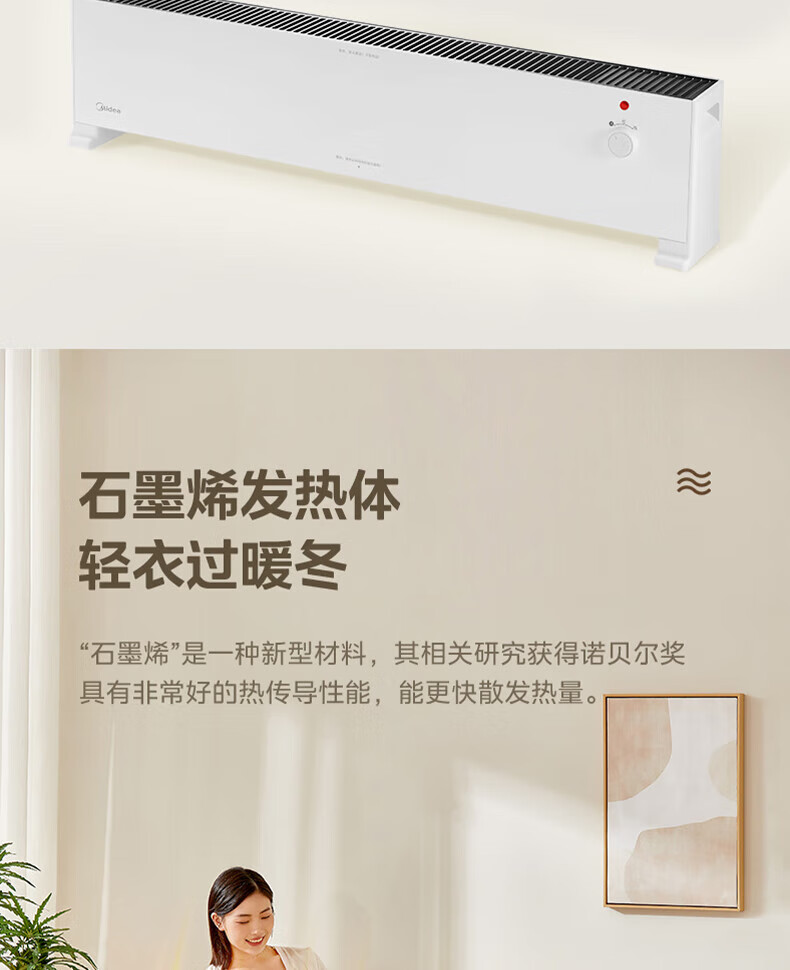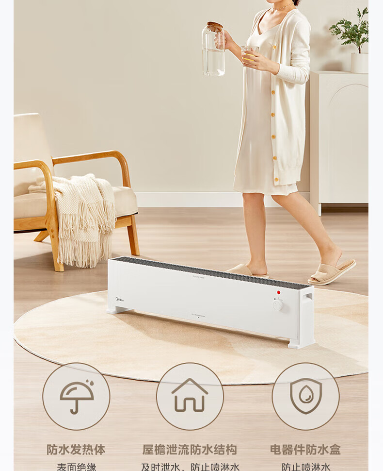 美的 NDV-F1 踢脚线电暖器移动地暖烤火炉防水尘石墨烯发热(创)