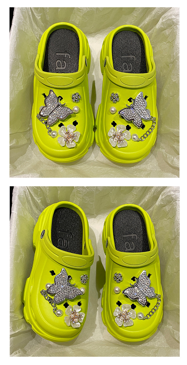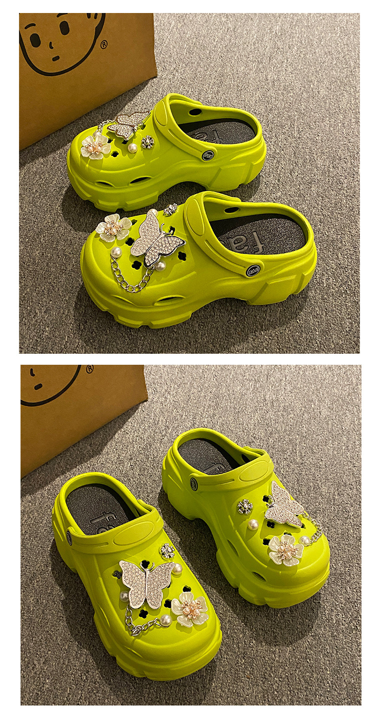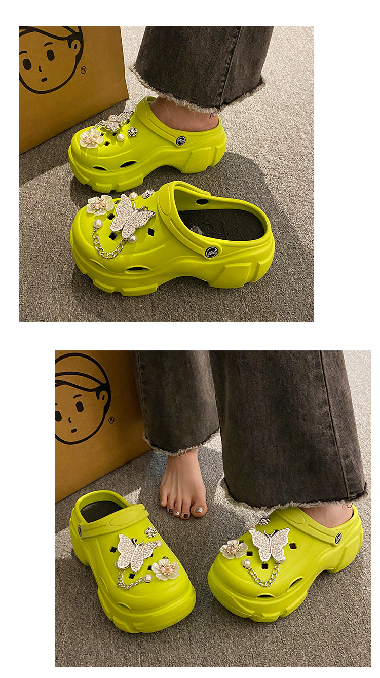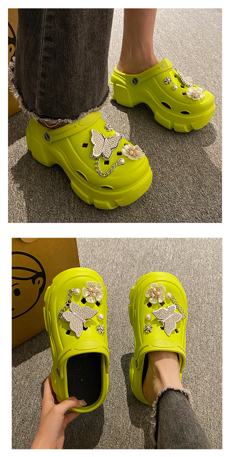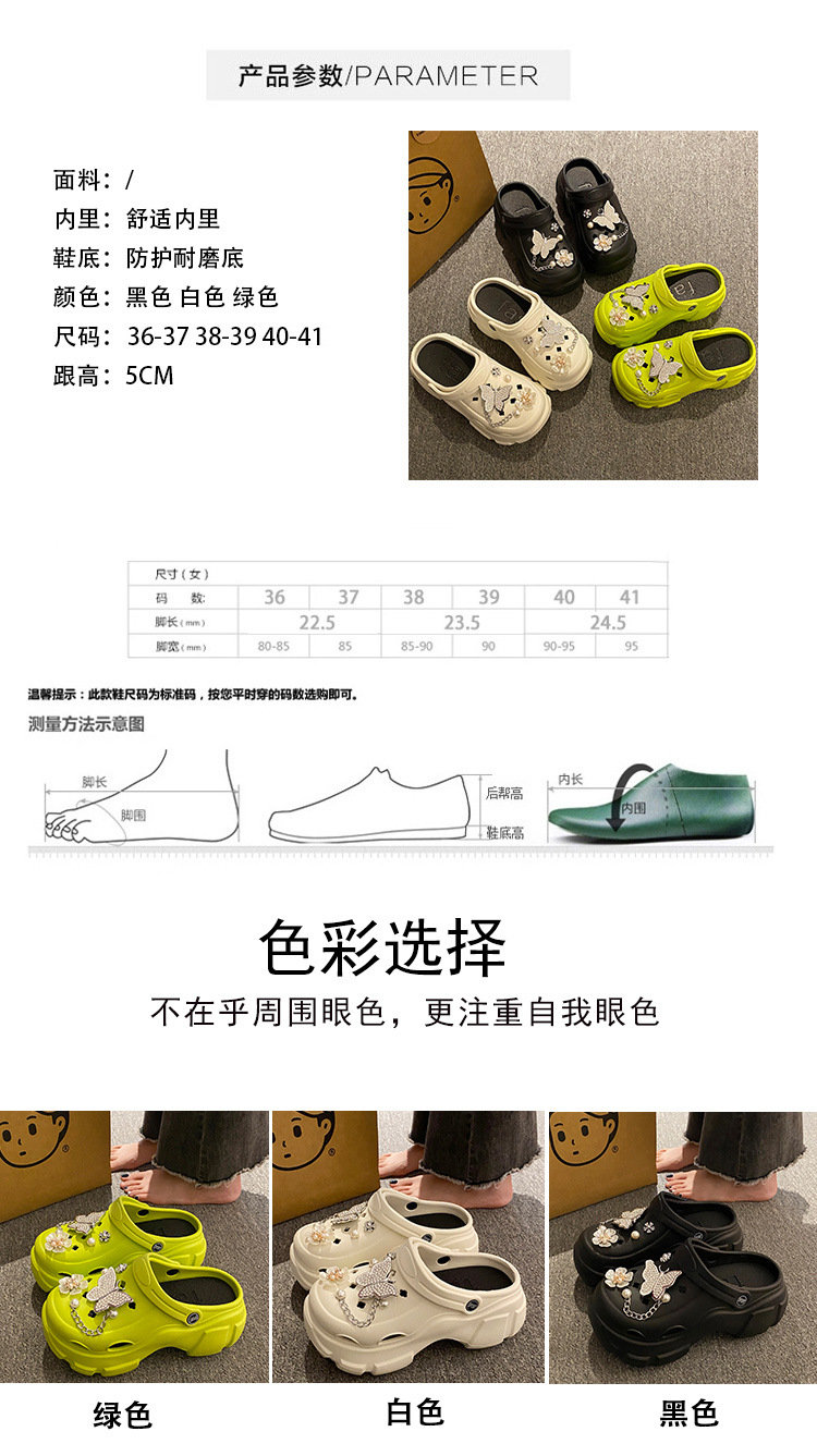 拖鞋洞洞鞋女夏季外穿厚底网红珍珠水钻链条增高松糕跟包头凉拖鞋