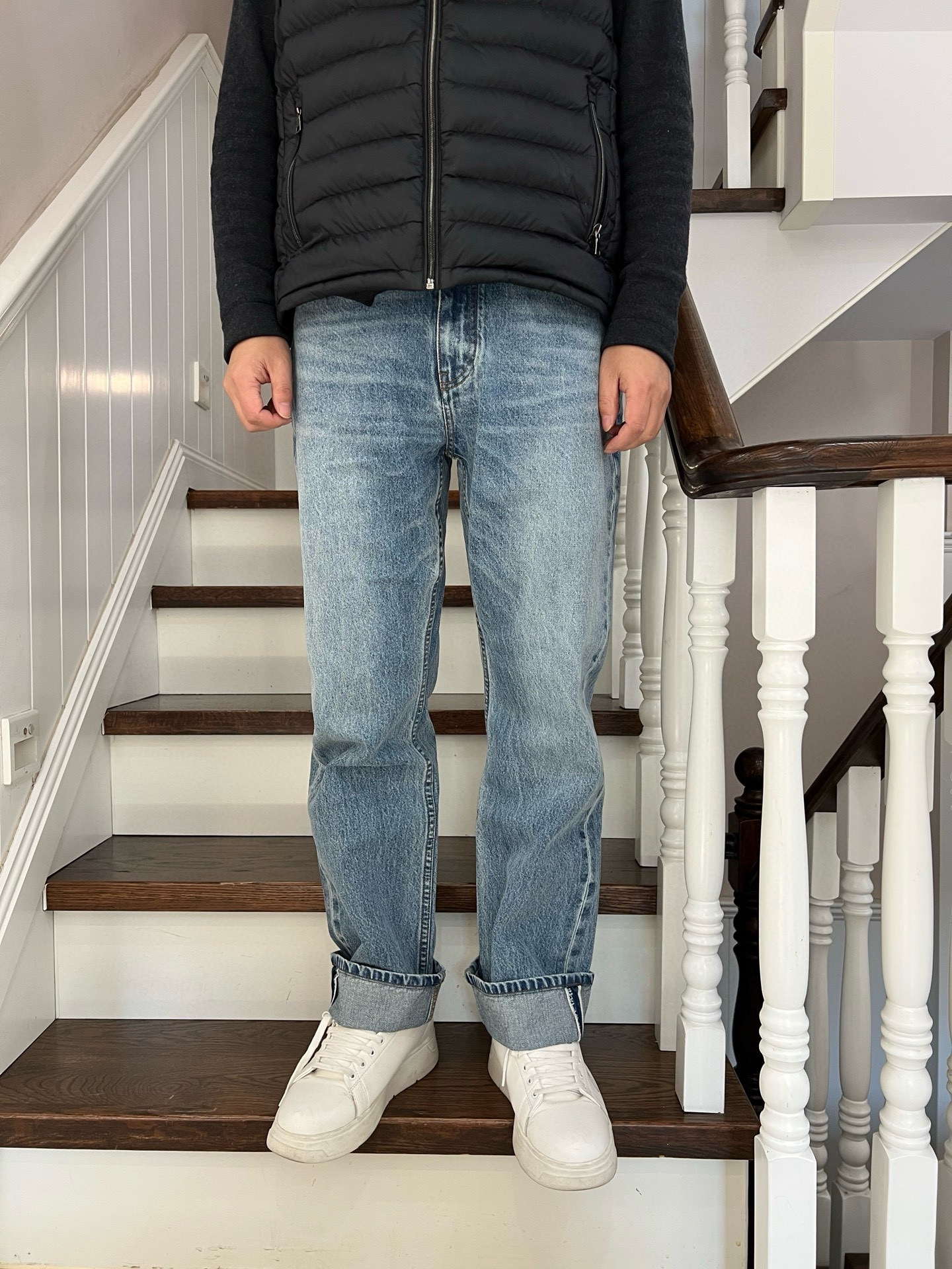 213-4 渠道圆正 王一博 井柏然同款 lew 258款 赤耳提花卷边 男士直筒牛仔裤