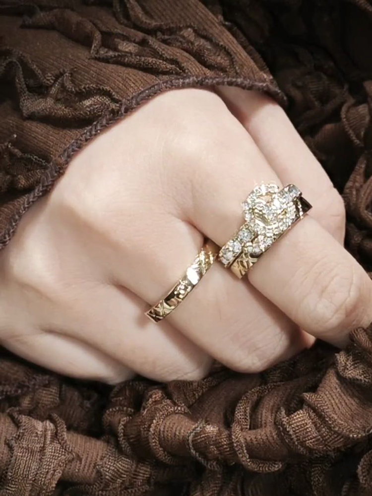 THS-无 香家 三合一戒指 素圈+双C钻饰戒指 3合一戒指 2款 CU1287