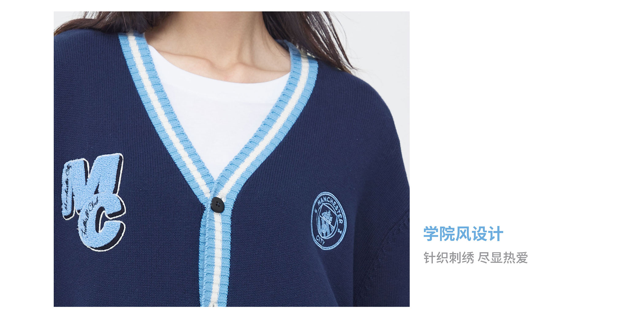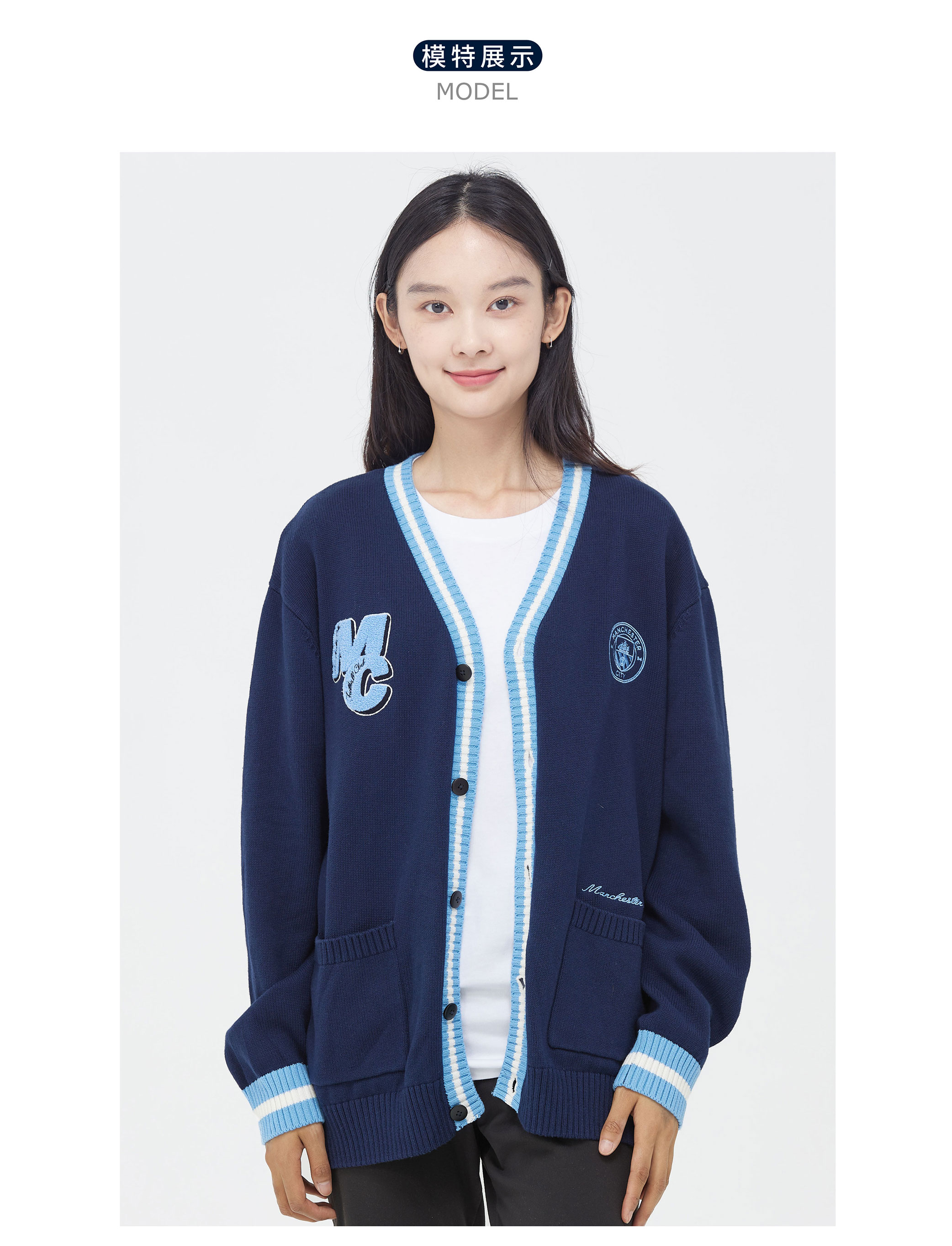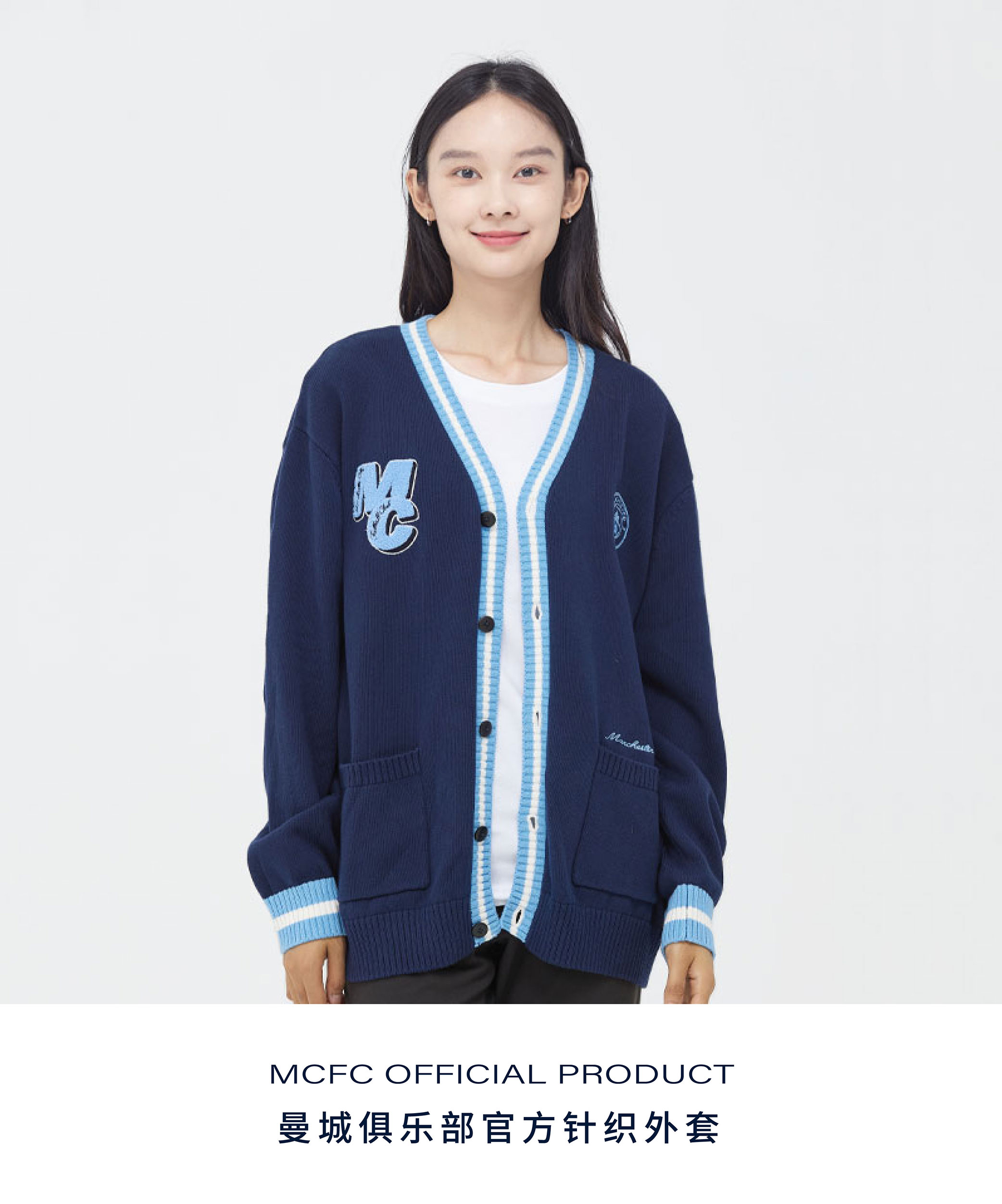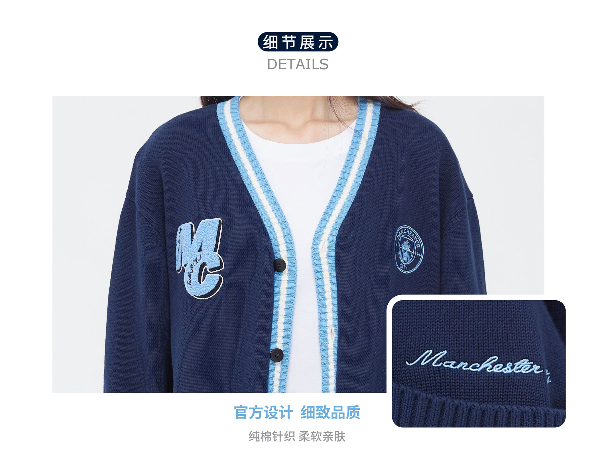 【官方正版】曼城俱乐部 | 针织外套球迷休闲开衫深蓝户外男女同款