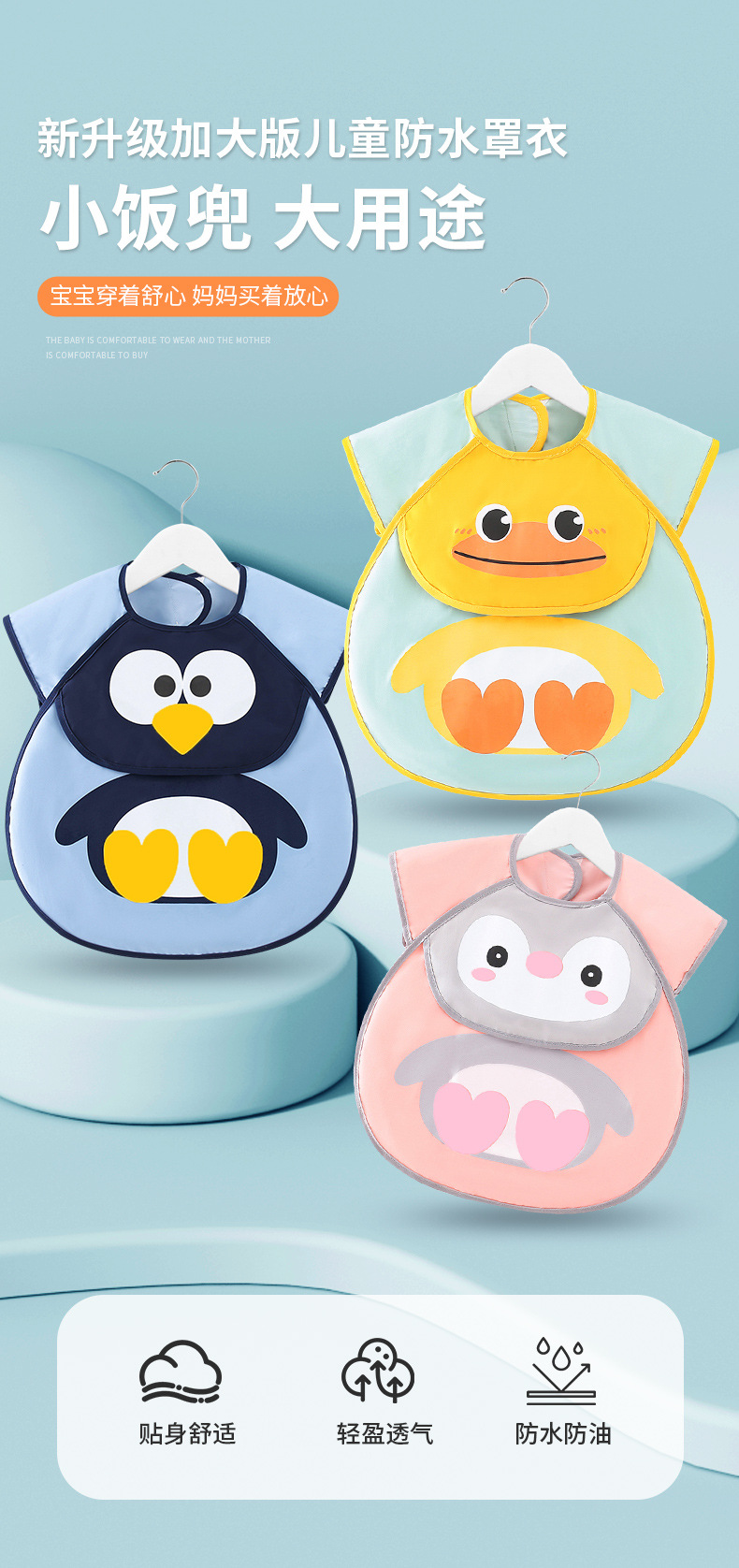 宝宝吃饭围兜罩衣儿童防水防脏婴儿辅食反穿衣夏围裙1-3-6岁饭兜