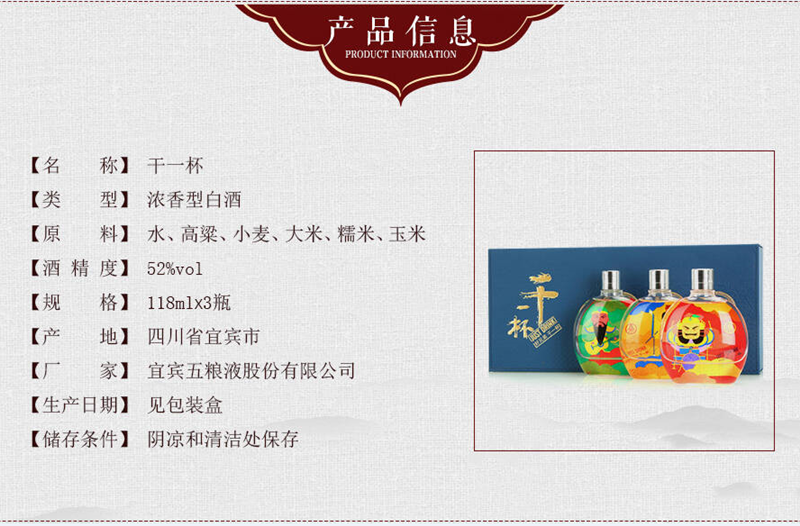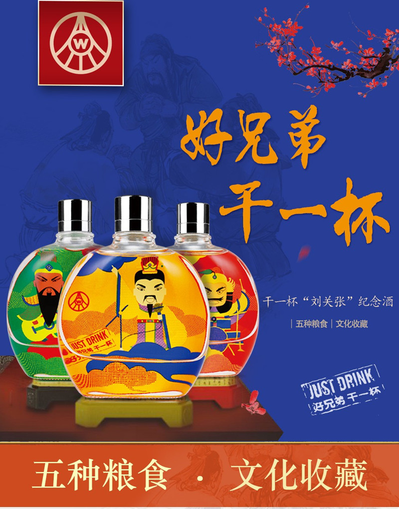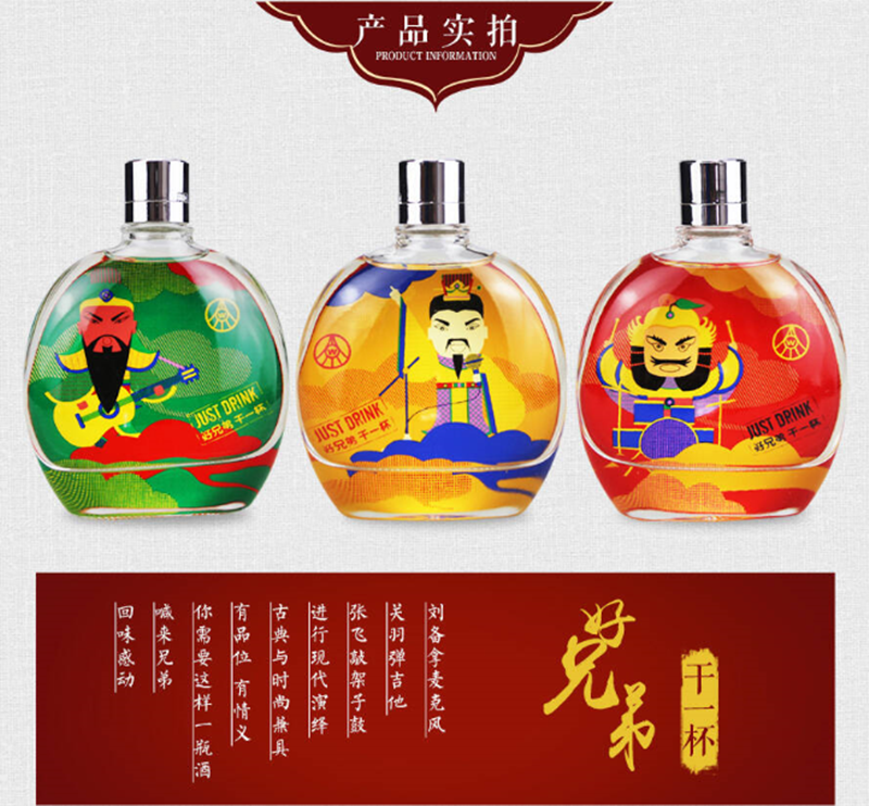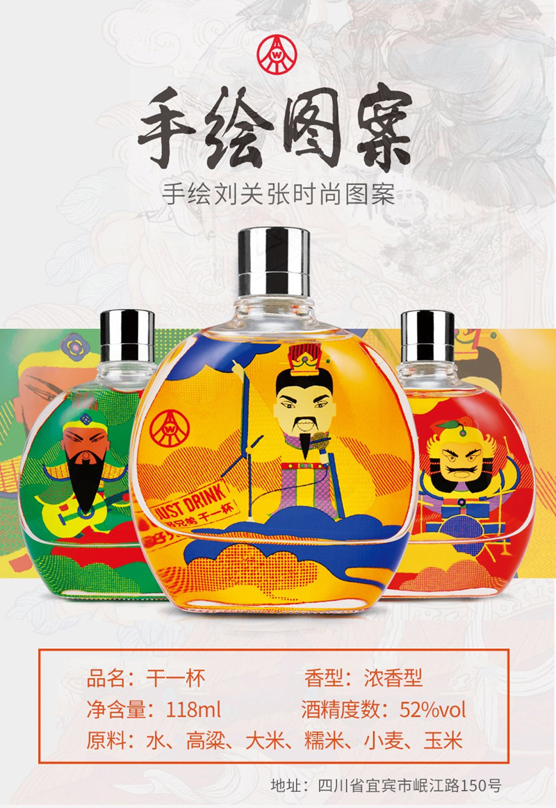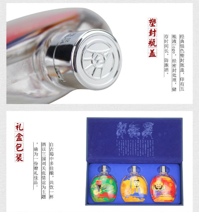五粮液股份公司 五粮液干一杯彩瓶 刘关张礼盒 白酒 52度 118ml×3瓶 礼盒装白酒 送礼自饮