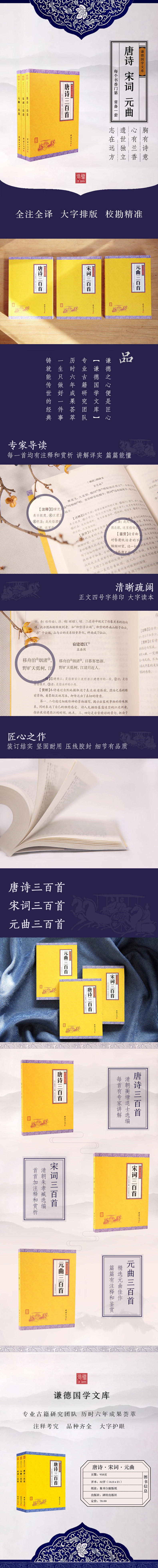 唐诗宋词元曲正版全集3本装 全译本 谦德国学文库系列 中国古诗词鉴赏唐诗300首宋词元曲三百首中小学生必背古诗词唐诗三百首正版