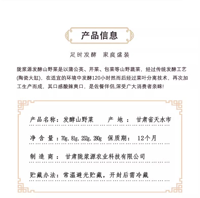 陇浆源浆福山野菜 健康泡菜 爽口下饭 五香味泡椒味仔姜味 拌面做汤炒饭酸菜鱼 多口味