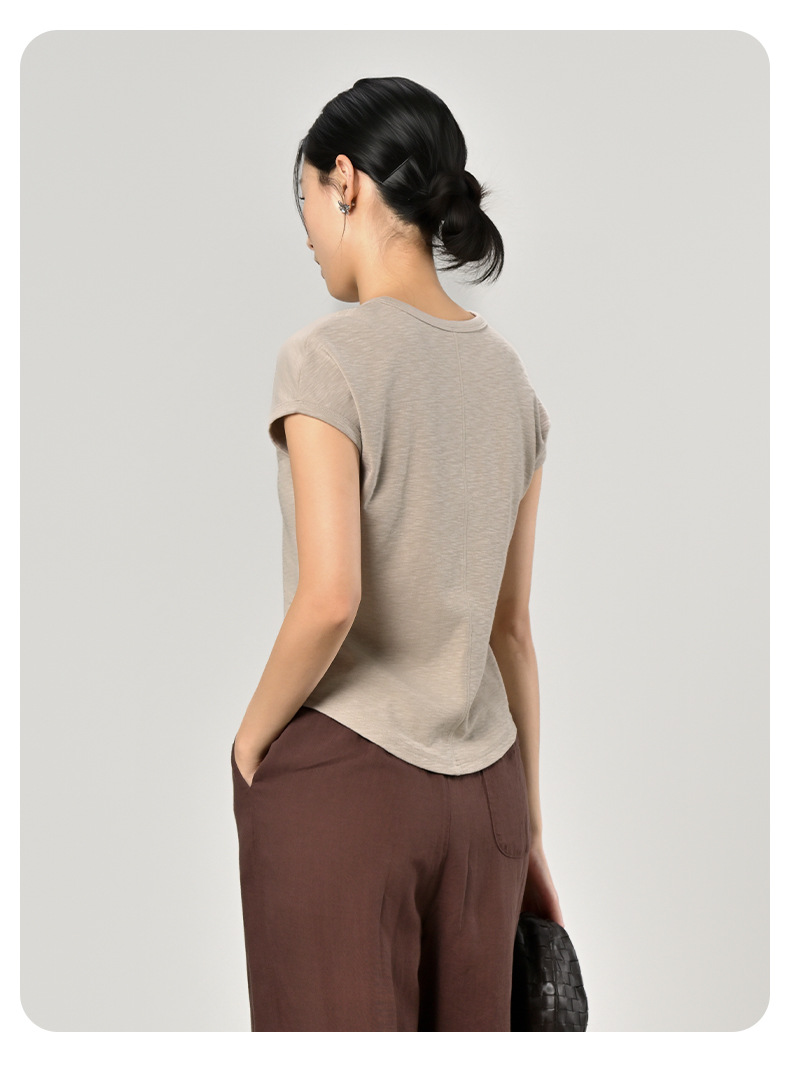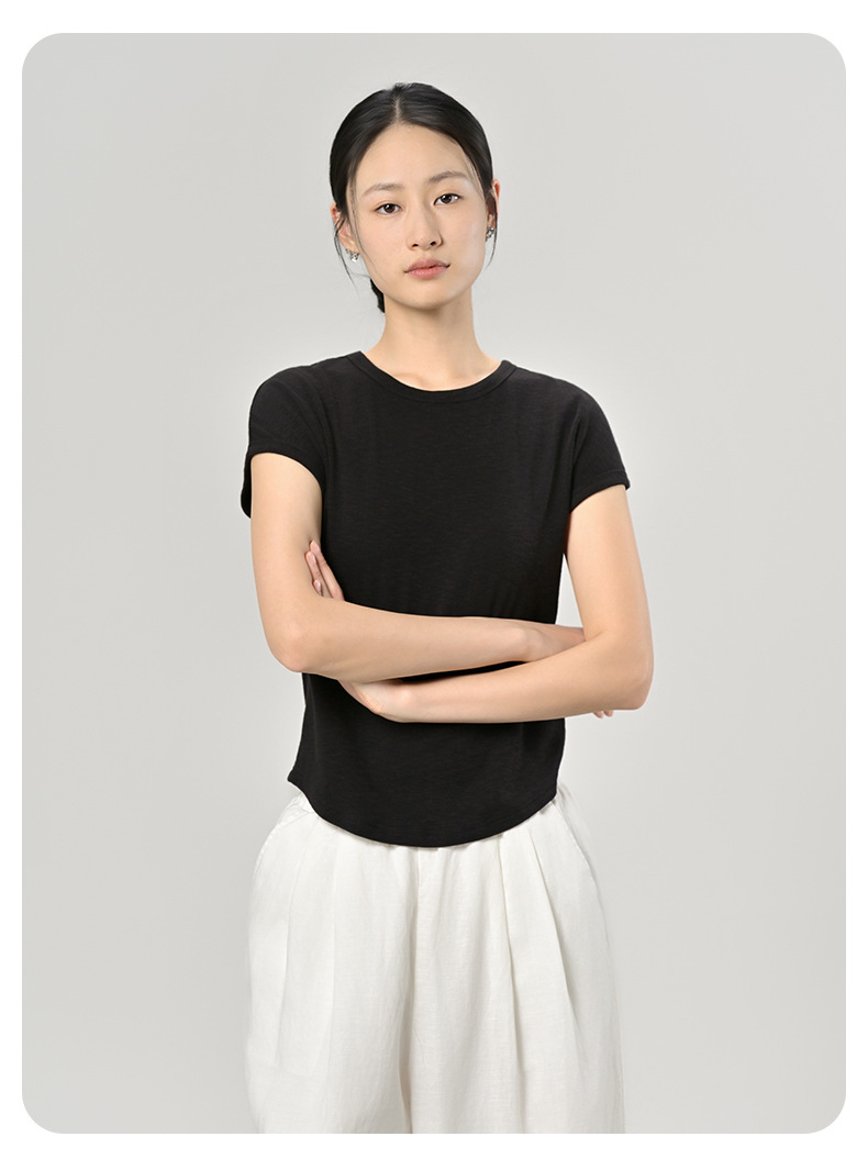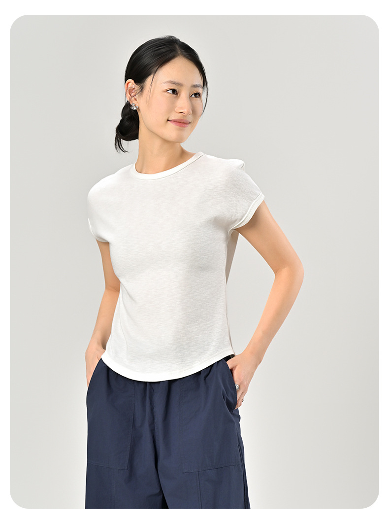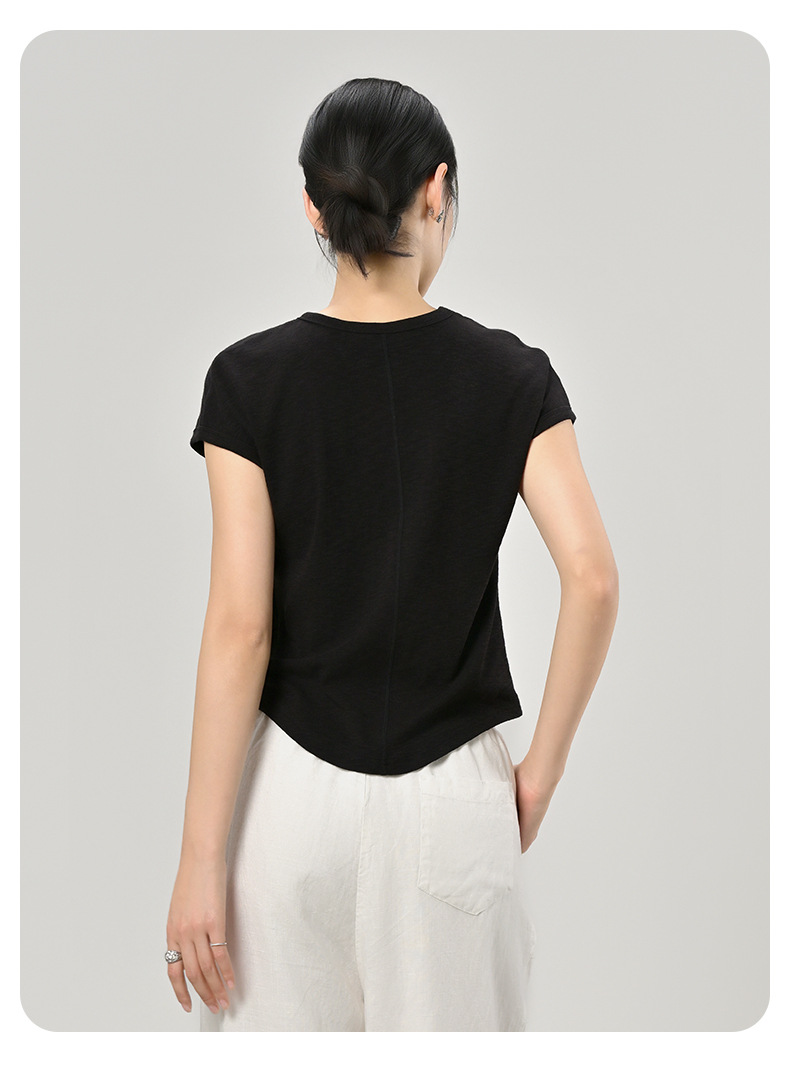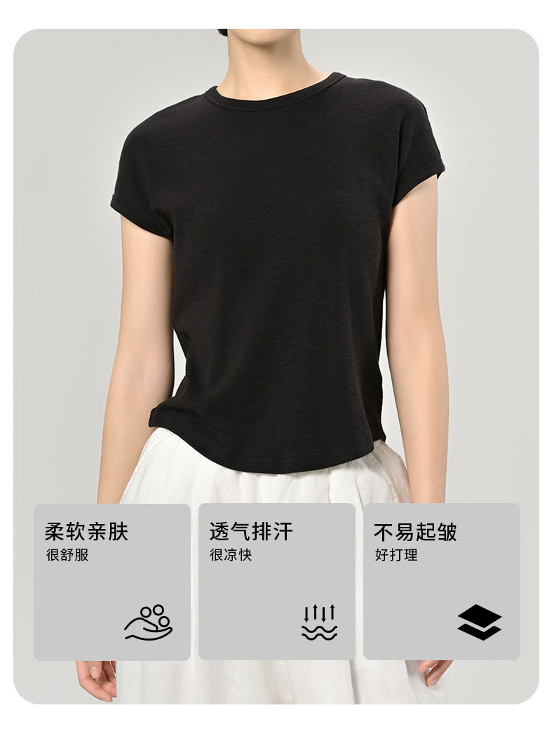 【连肩袖】弧形下摆圆领小飞袖纯色简约T恤女