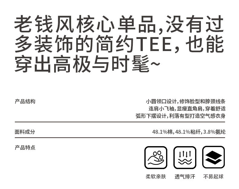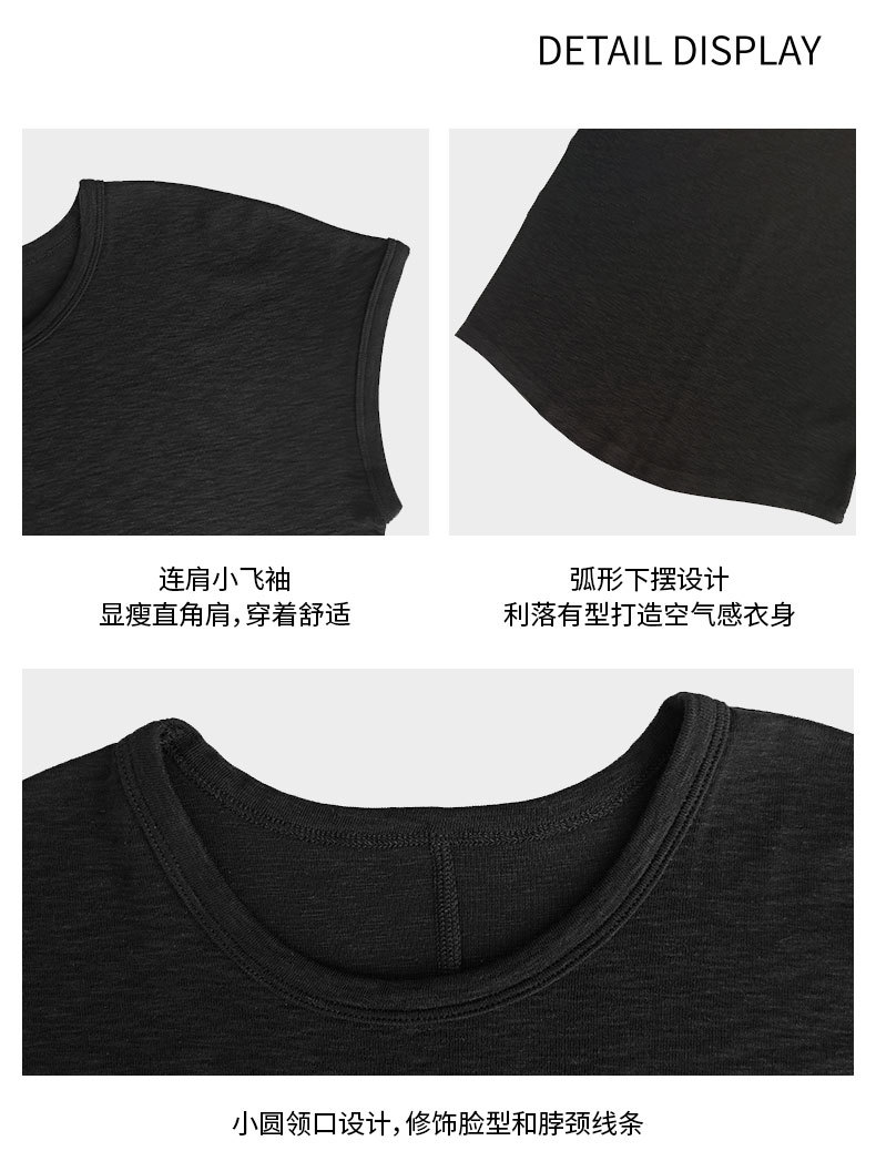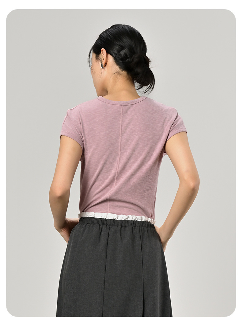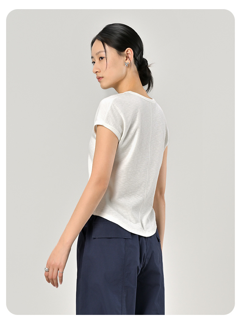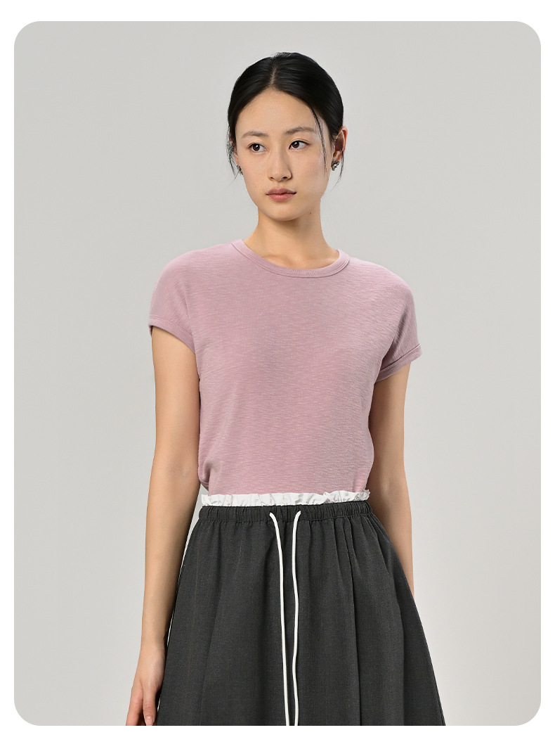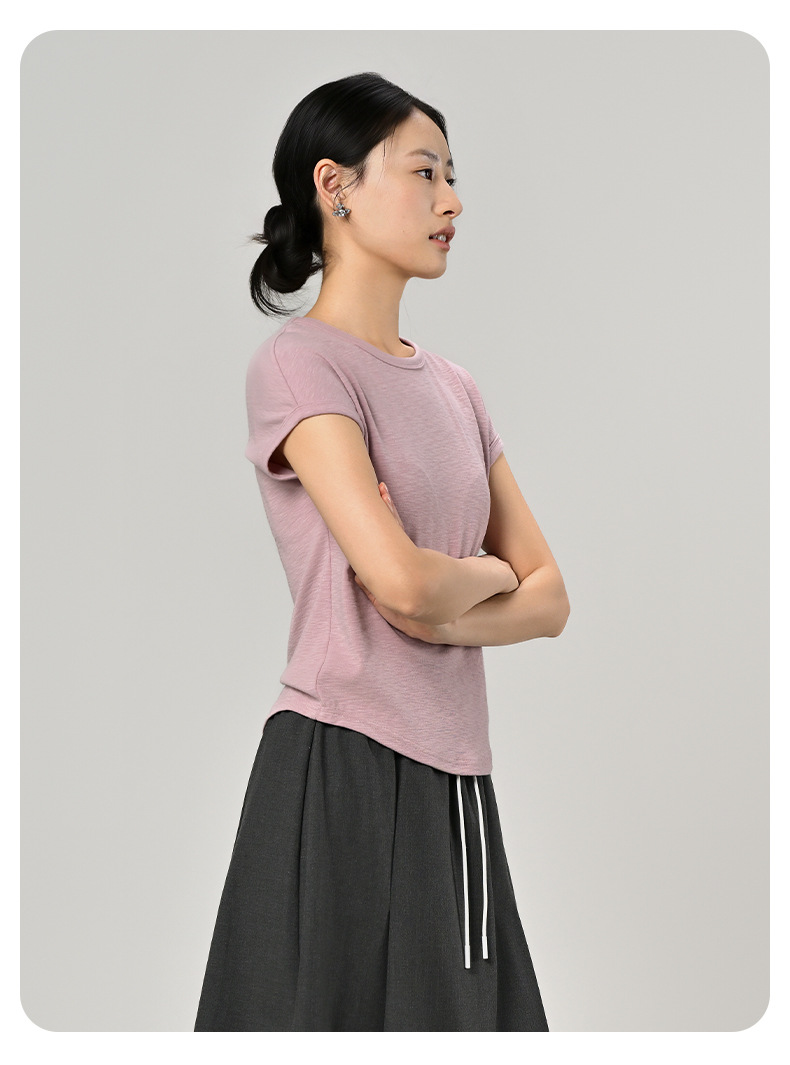 【连肩袖】弧形下摆圆领小飞袖纯色简约T恤女