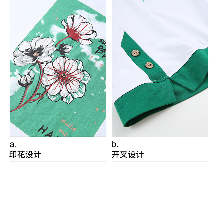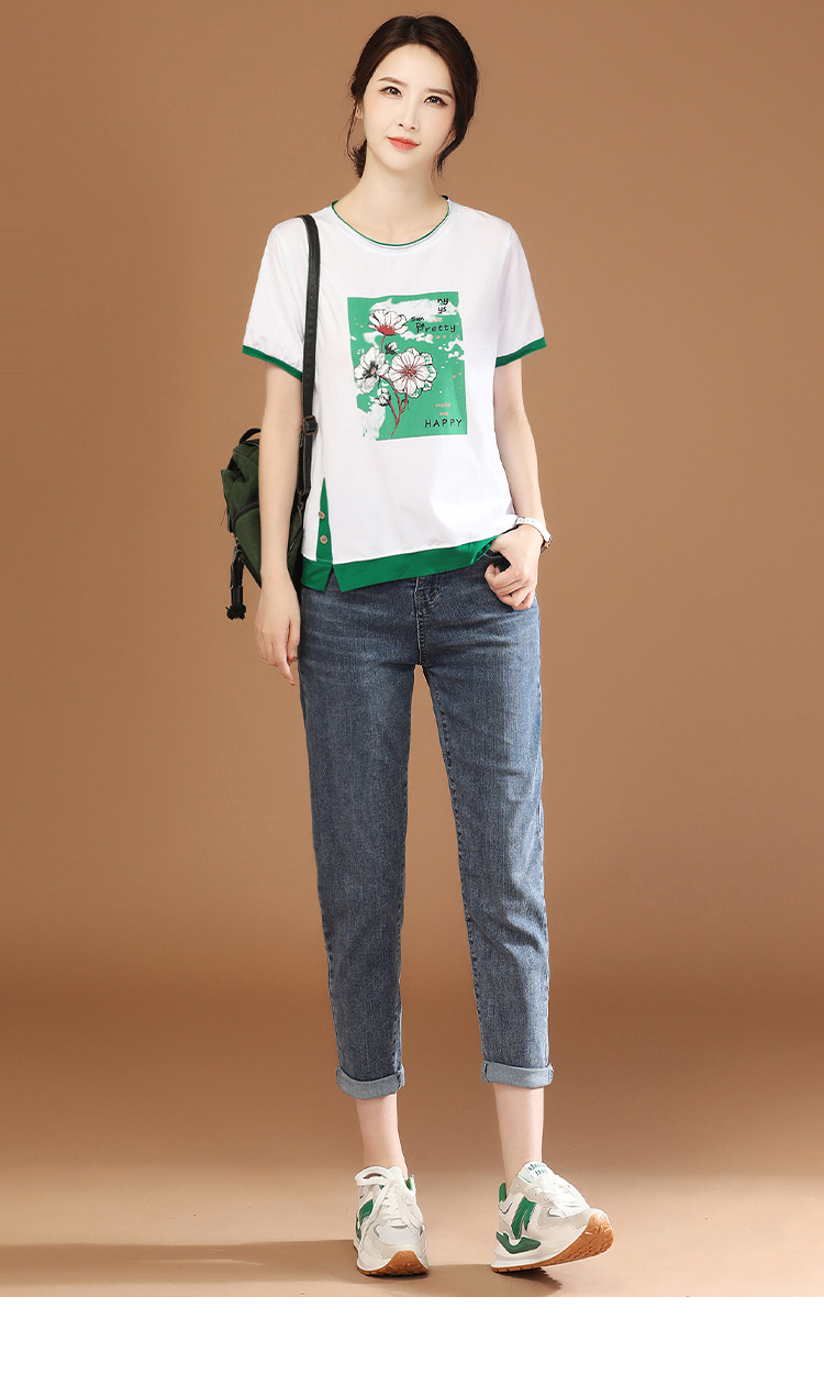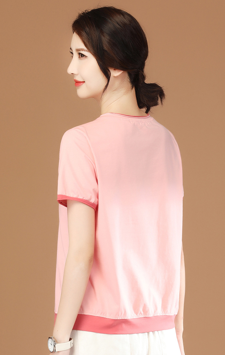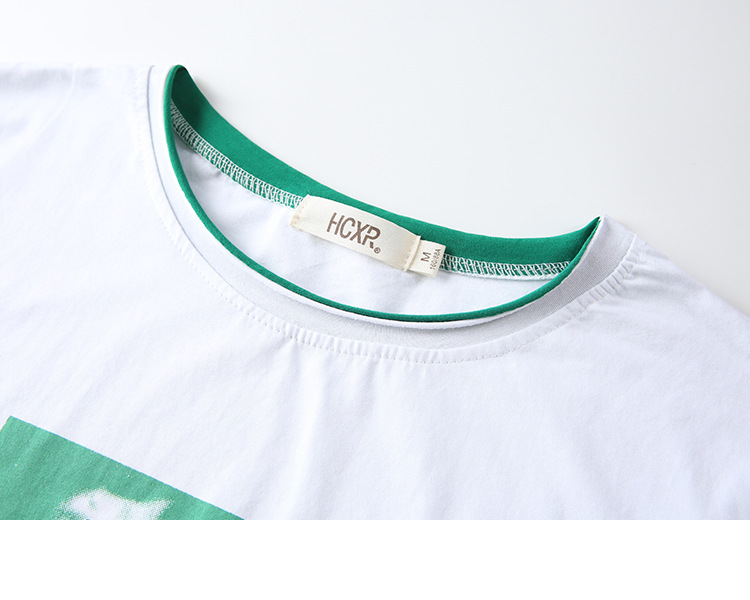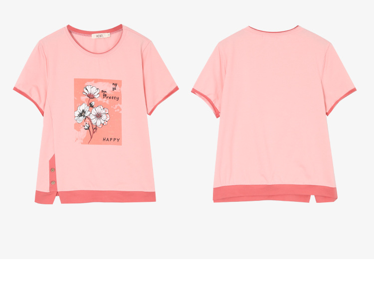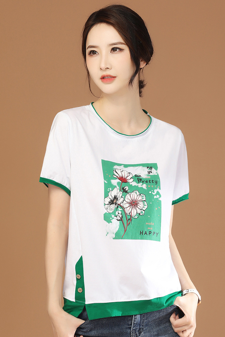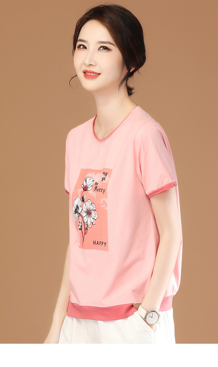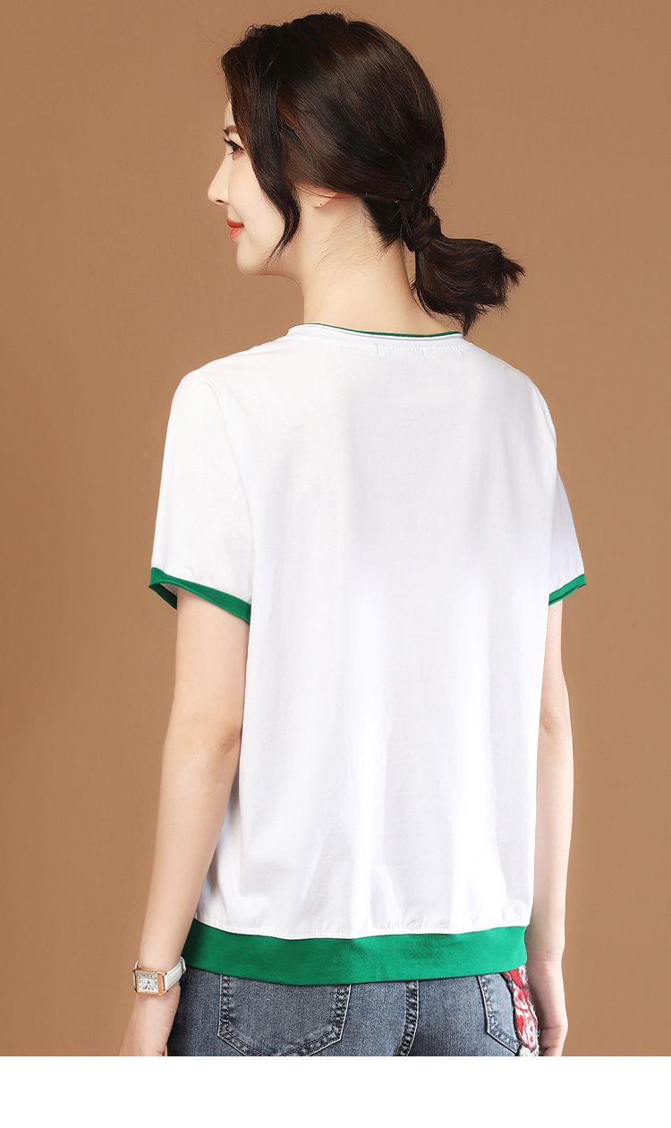 撞色圆领复古印花T恤女,夏装新款宽松显瘦百搭体恤薄GYM-KN0532