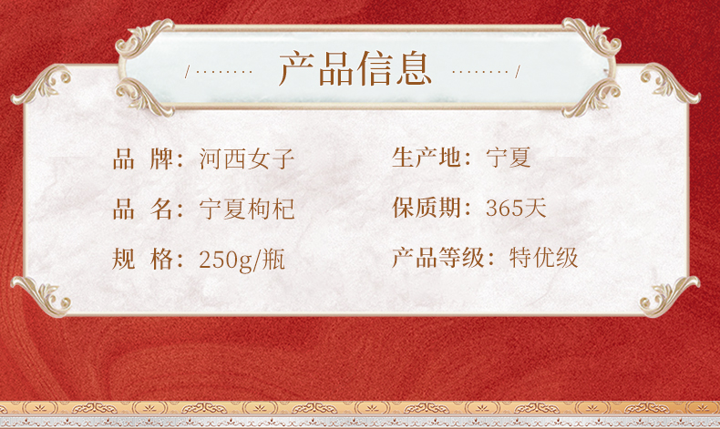 河西女子 特优枸杞 250g*2罐 好枸杞无硫熏 无染色 头荐大果,送测硫试纸(送完即止)