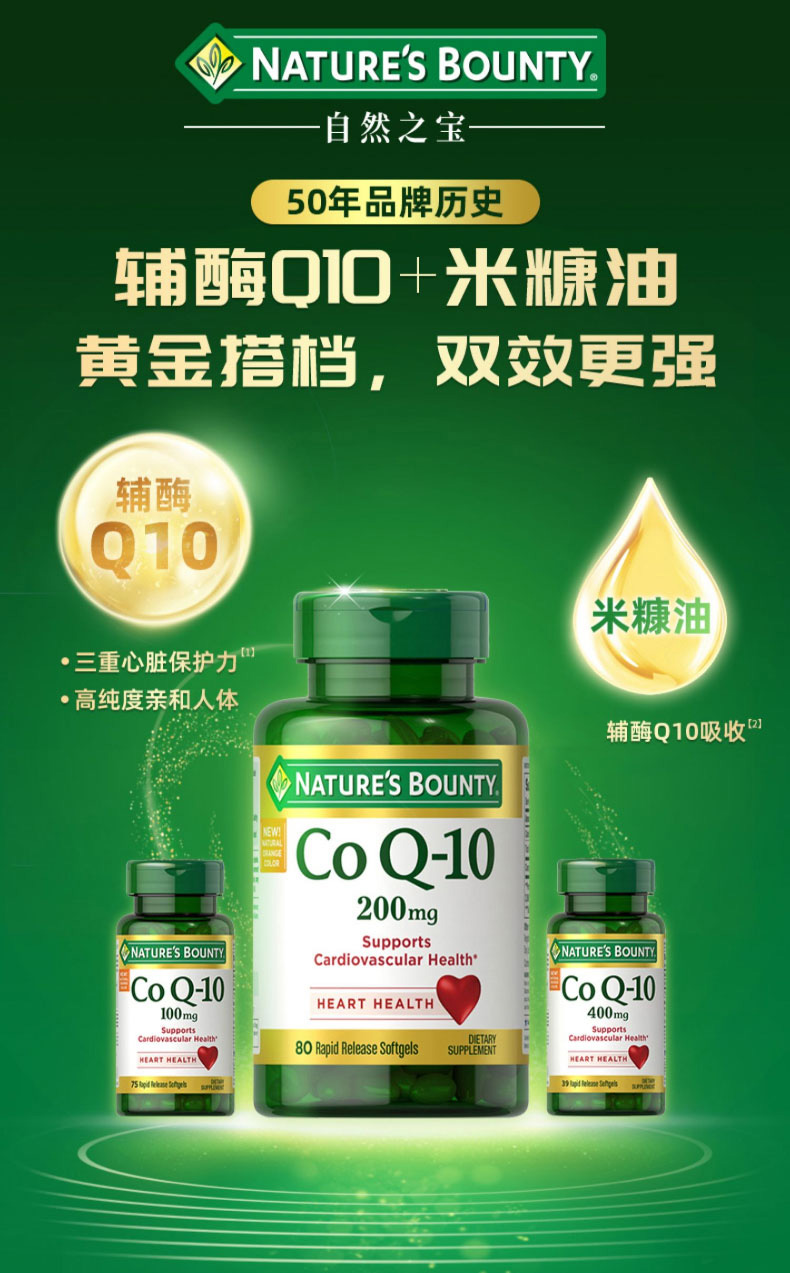 【含邮含税】Nature's Bounty自然之宝辅酶Q10软胶囊80粒/瓶