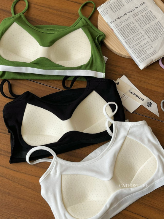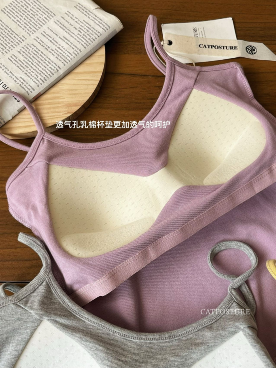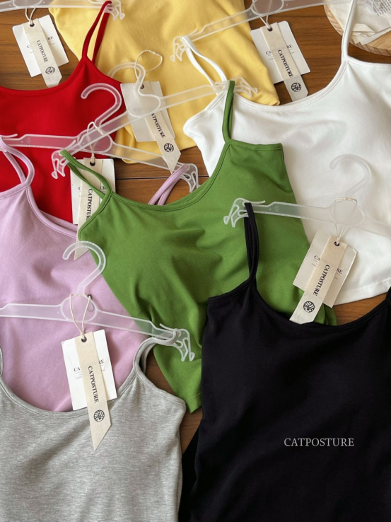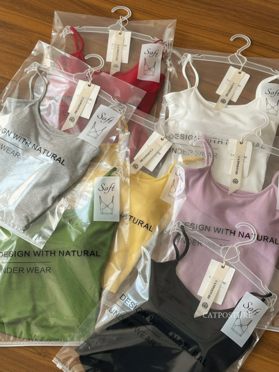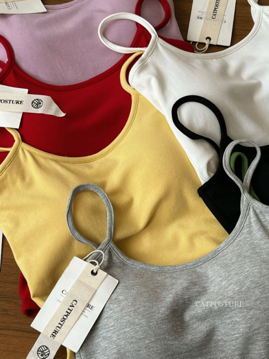 懒人福音来了❗ 对我这种喜欢穿吊带的人来说🤔 最期待的就是夏天‼夏季不用再像以前那样穿个吊带里面还得穿件勒的要命的无肩带内衣了 这款直接吊带+bra一件穿搭❗ 太舒服啦!清清爽爽的感觉 完全不会走光,线条感超级牛