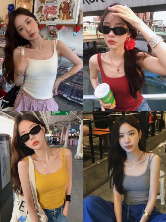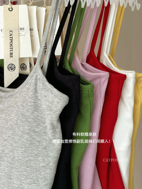 多巴胺七色带胸垫吊带 女明星私服直接半价搬回家! 【7色ALL IN才叫夏天】直接美到失语!! 显白三度➕自带纯欲滤镜,穿它出街被追着要链接! 🍑 警告:这件吊带太出片!小心被问爆链接+被闺蜜追着要🔗!! 不卷低价只卷品质💥