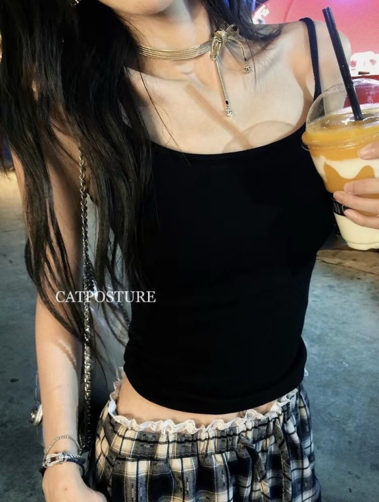 ⚫ 𝐛𝐥𝐚𝐜𝐤 黑色 ▪爱惨黑色🖤系吊带背心了~ ▪基础百搭还很显瘦绝绝子呀‼ 每一款都自带小心机💕设计爱了~ 都是自带胸垫固定好方便谁懂啊‼