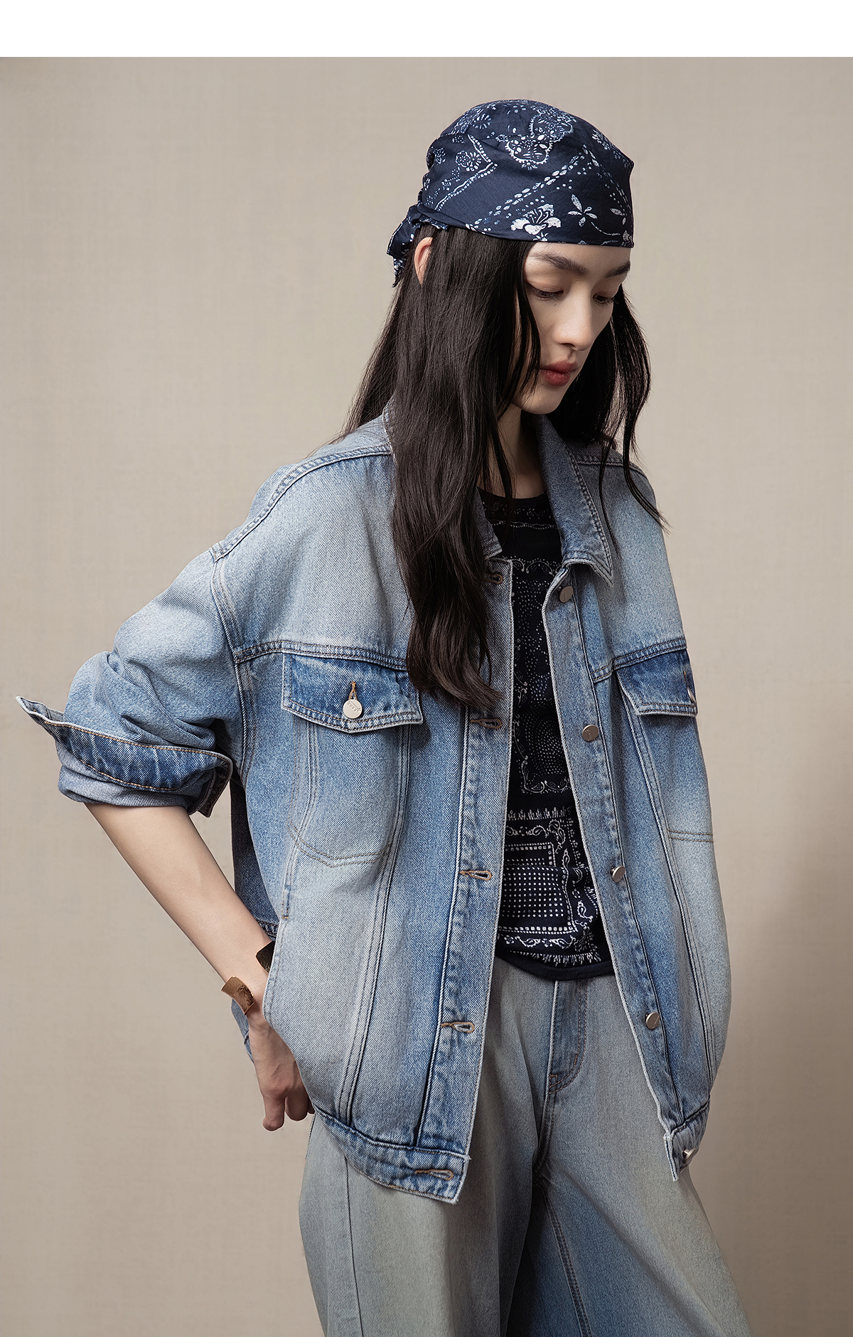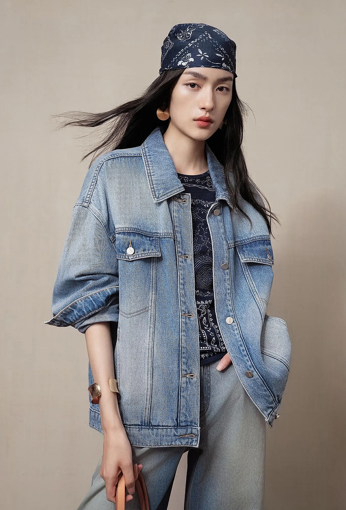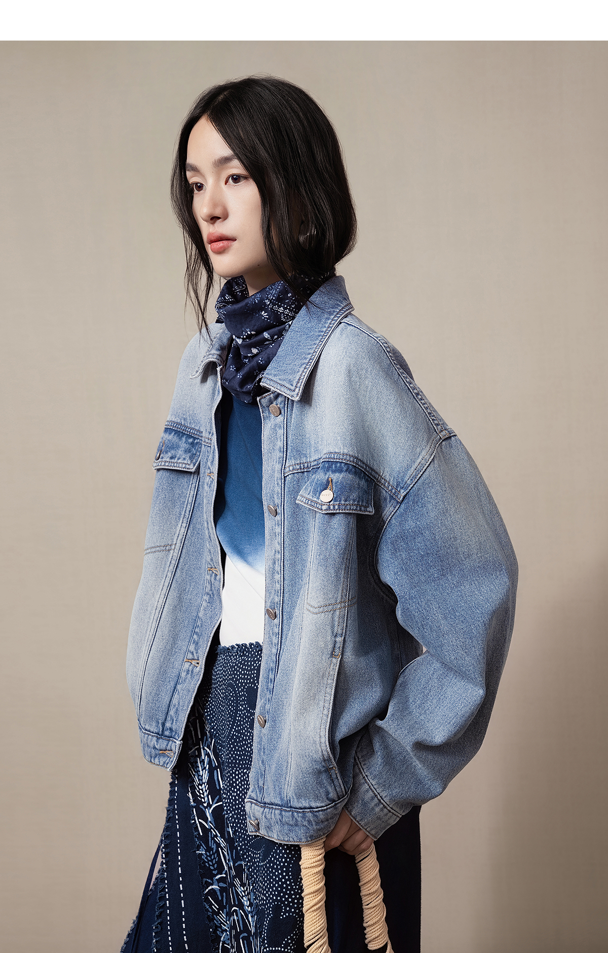 【林栖设计小店】【草木丹宁】牛仔外套复古磨白2025秋季新款百搭上衣女G1653001