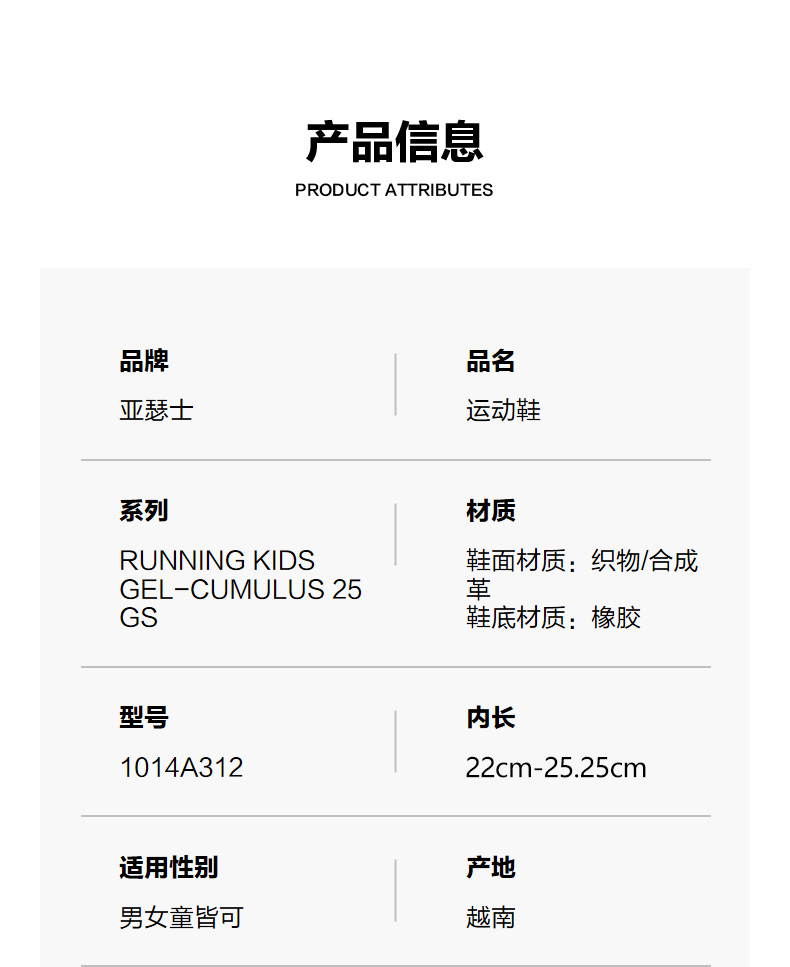 ASICS/亚瑟士童鞋2024年多功能训练鞋跑步鞋GEL-CUMULUS 25 GS