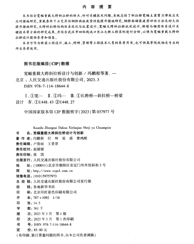 书名:宽幅重载大跨斜拉桥设计与创新