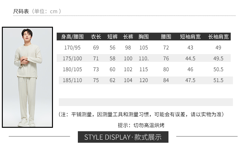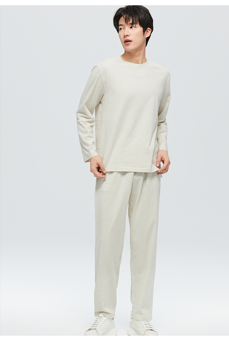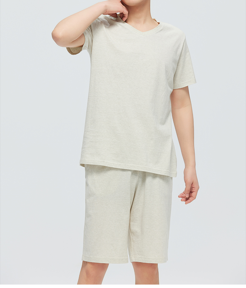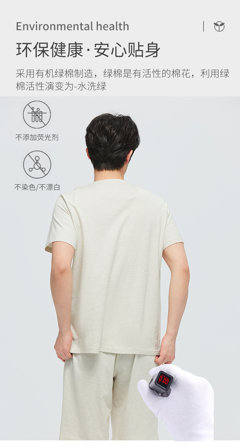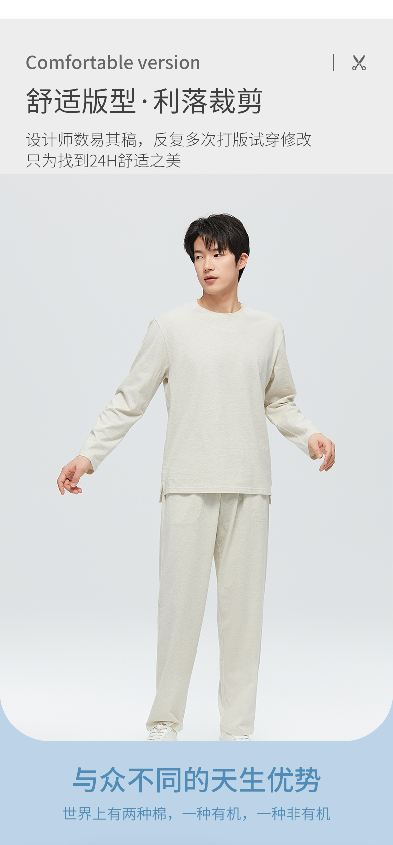 素道有机棉男士家居服 短款V领 长款圆领 100%棉有机认证薄款套装