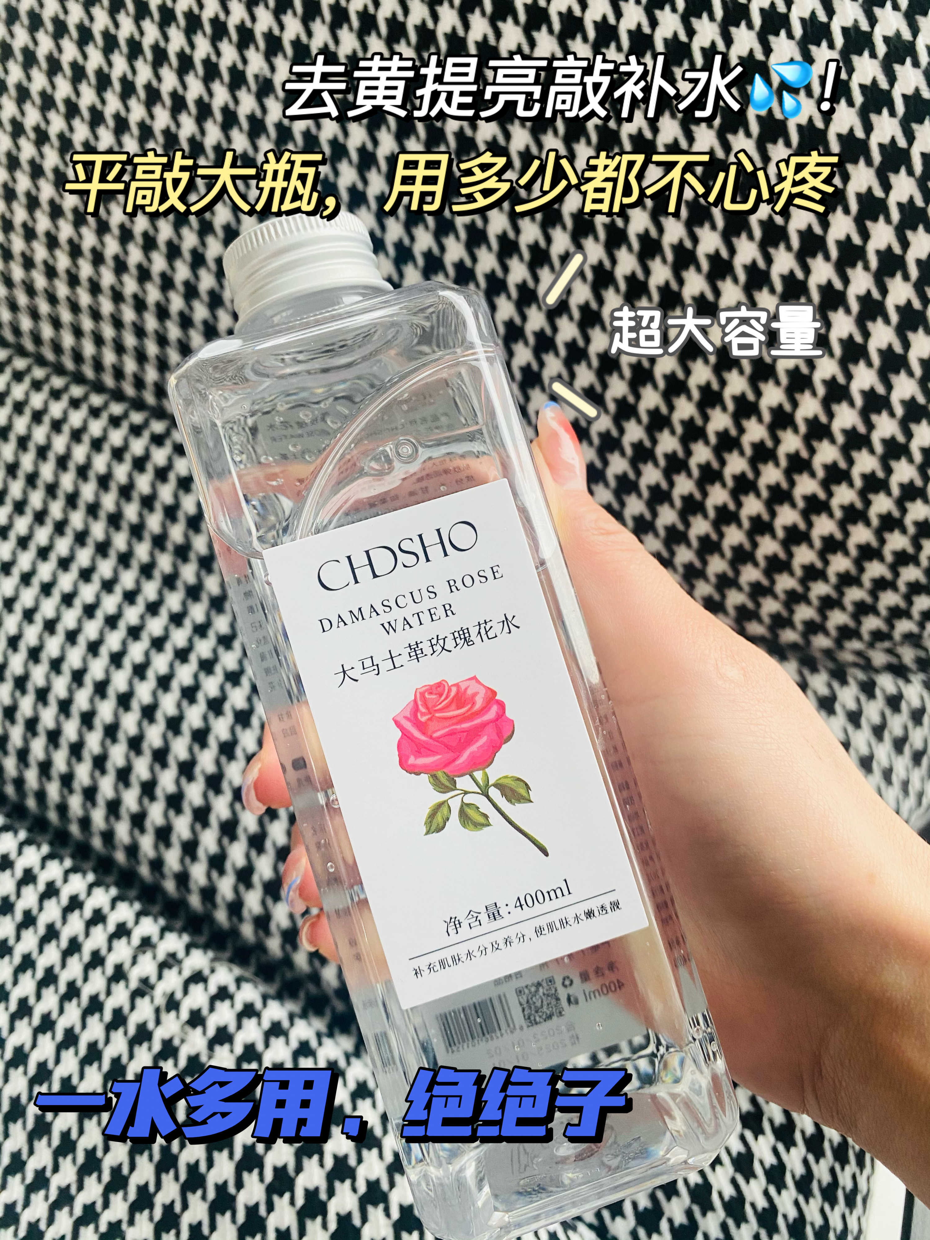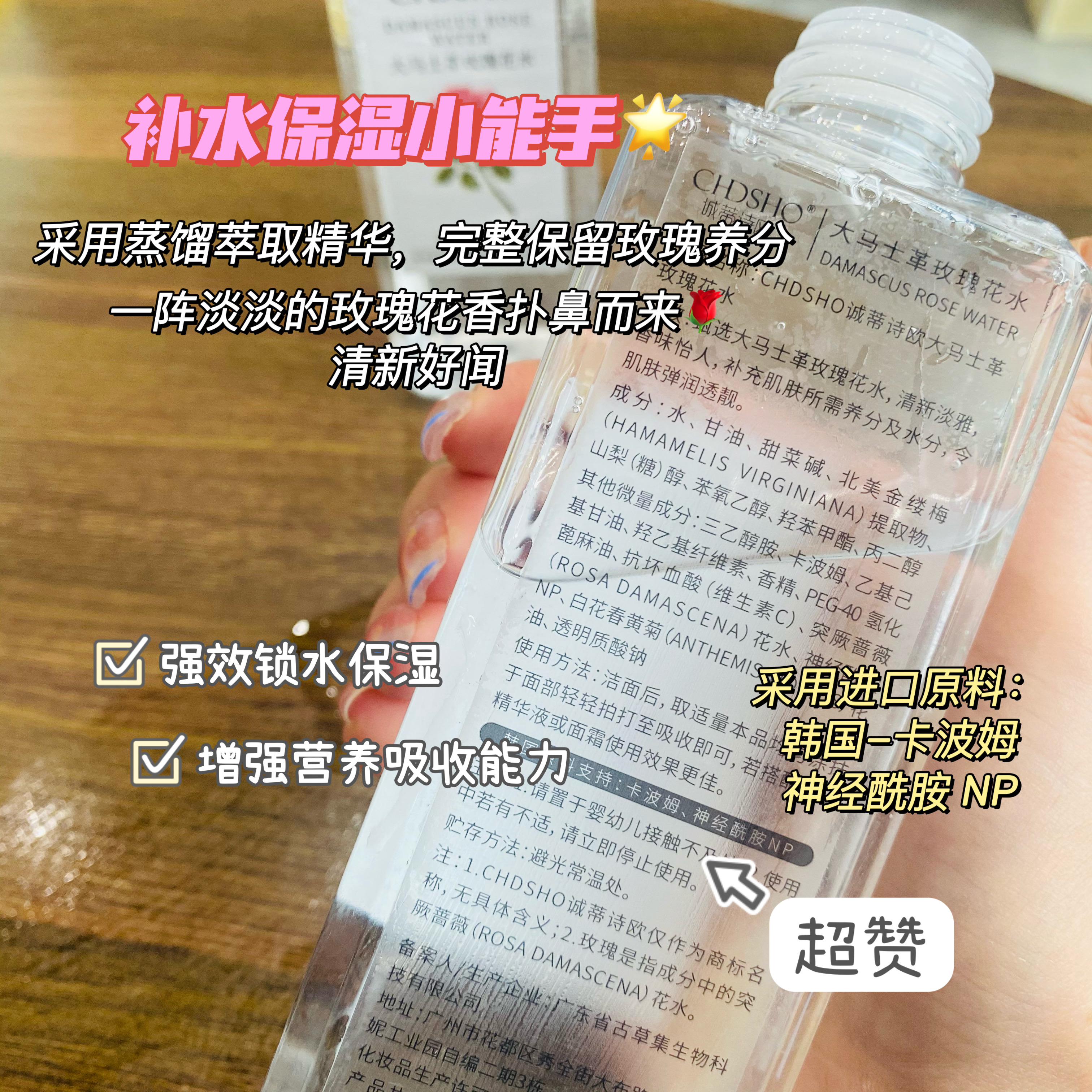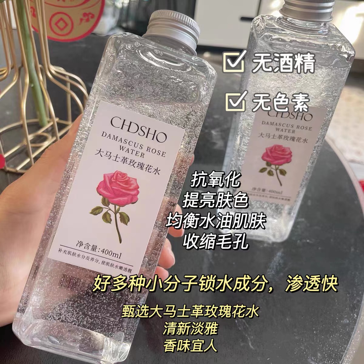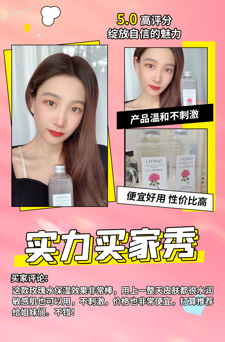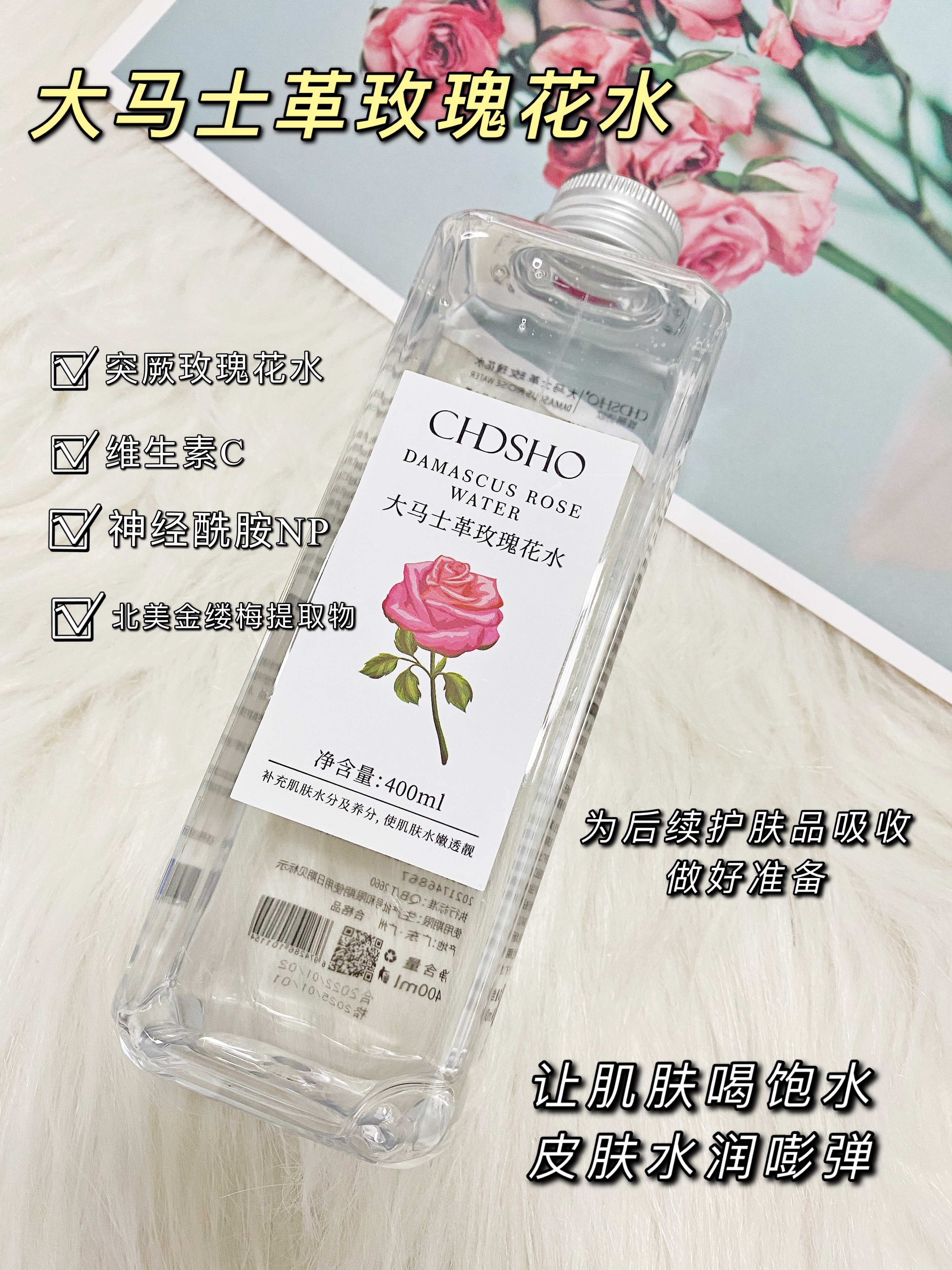 甄选大马士革玫瑰花水,清新淡雅,香味怡人,补充肌肤所需养分及水分,令肌肤弹润透靓。