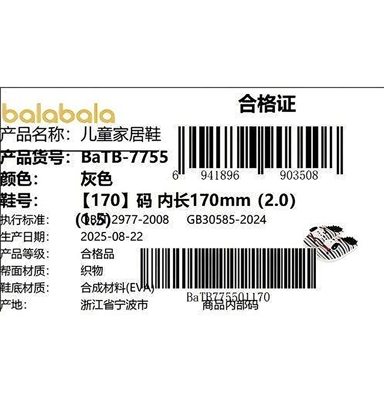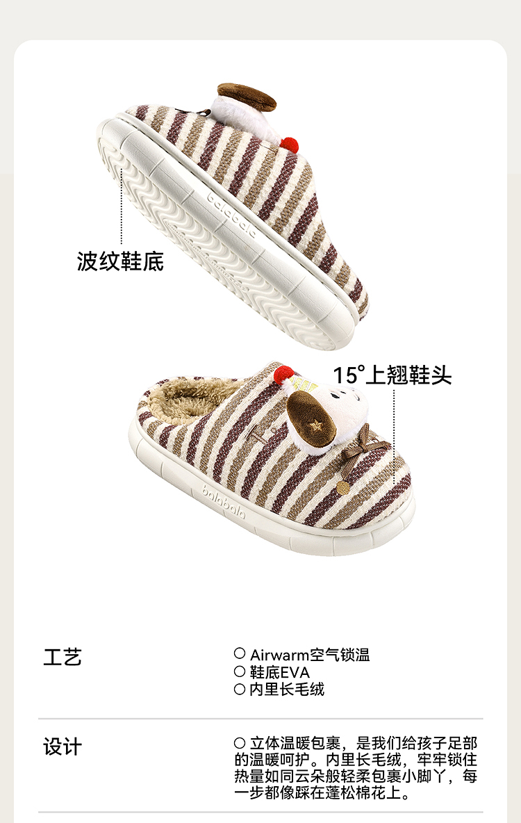 巴拉巴拉儿童棉拖鞋卡通加绒保暖室内家居鞋男童女童冬季2025新款