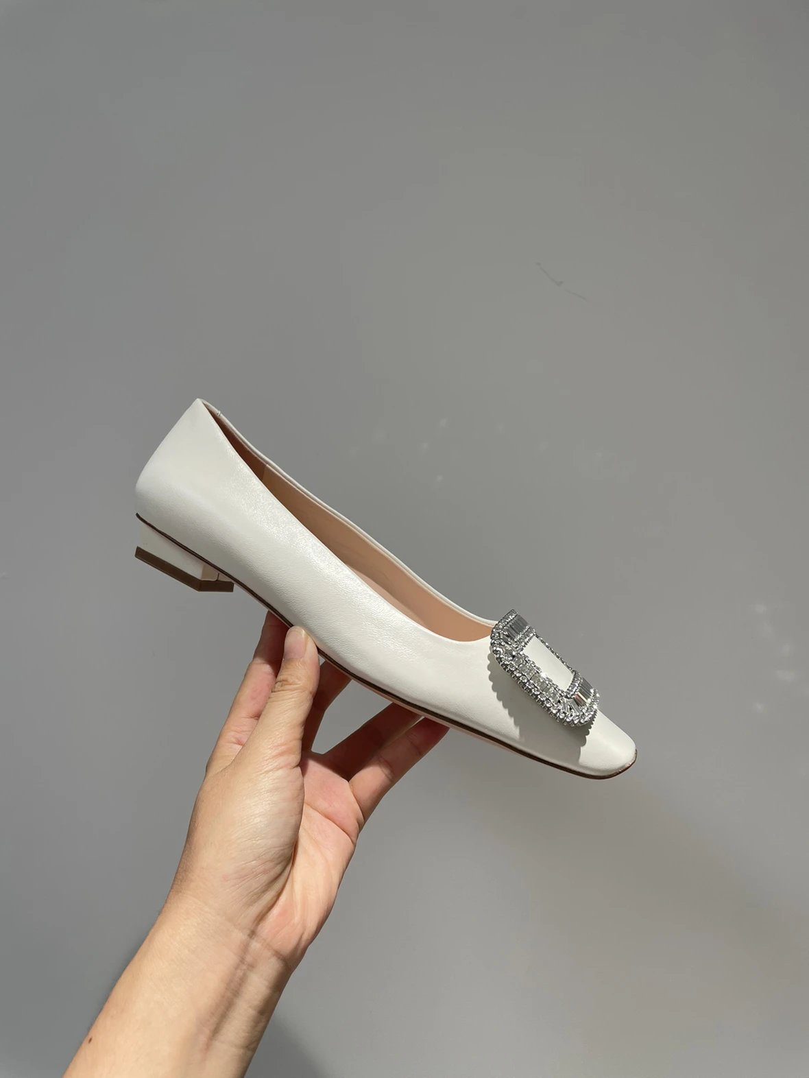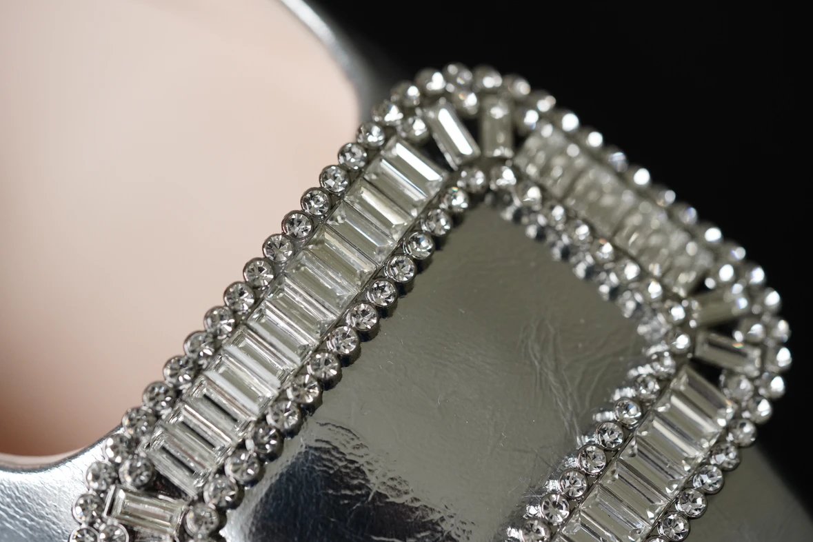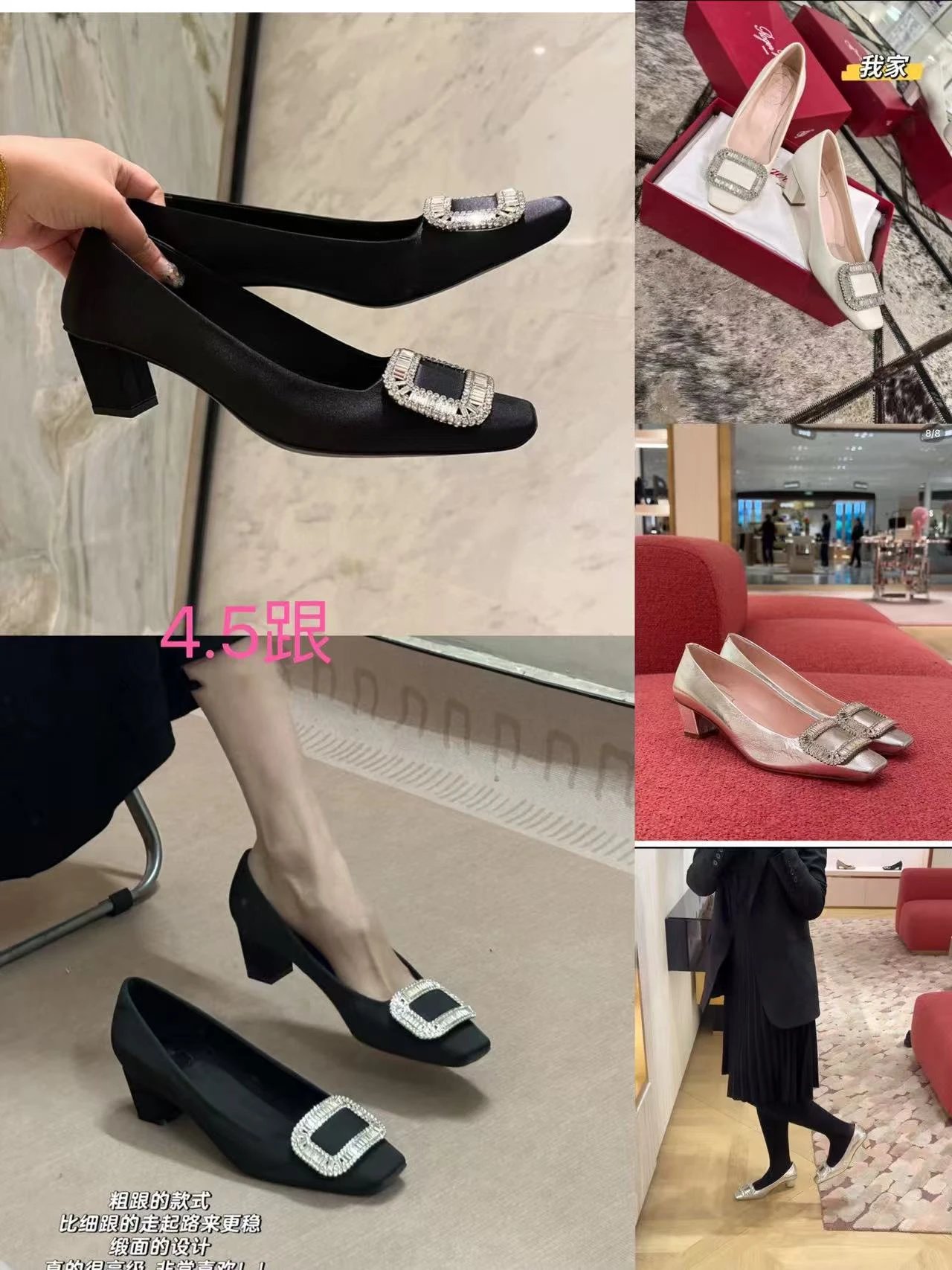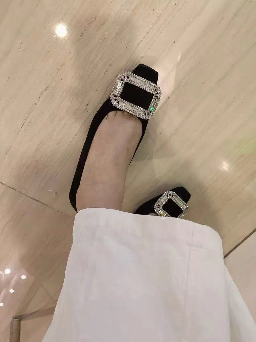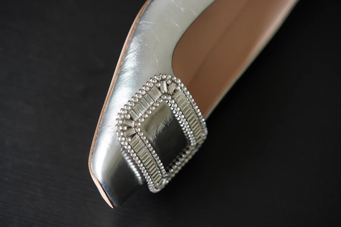 重磅推荐 水钻方扣单鞋 银色褶皱牛皮/白色限定牛皮 经典缎面2.5cm/4.5cm通勤单鞋 优雅老钱风