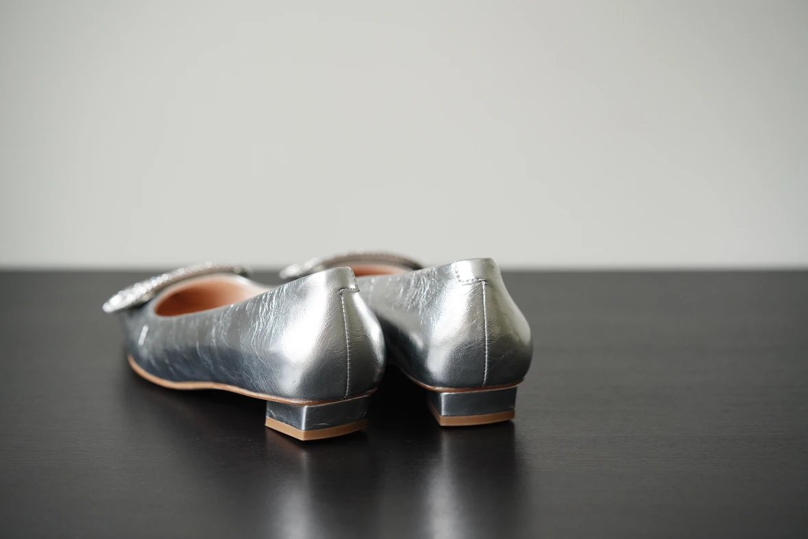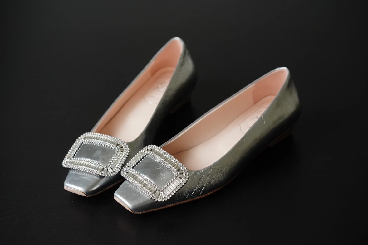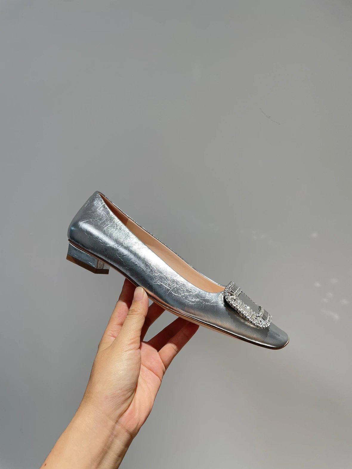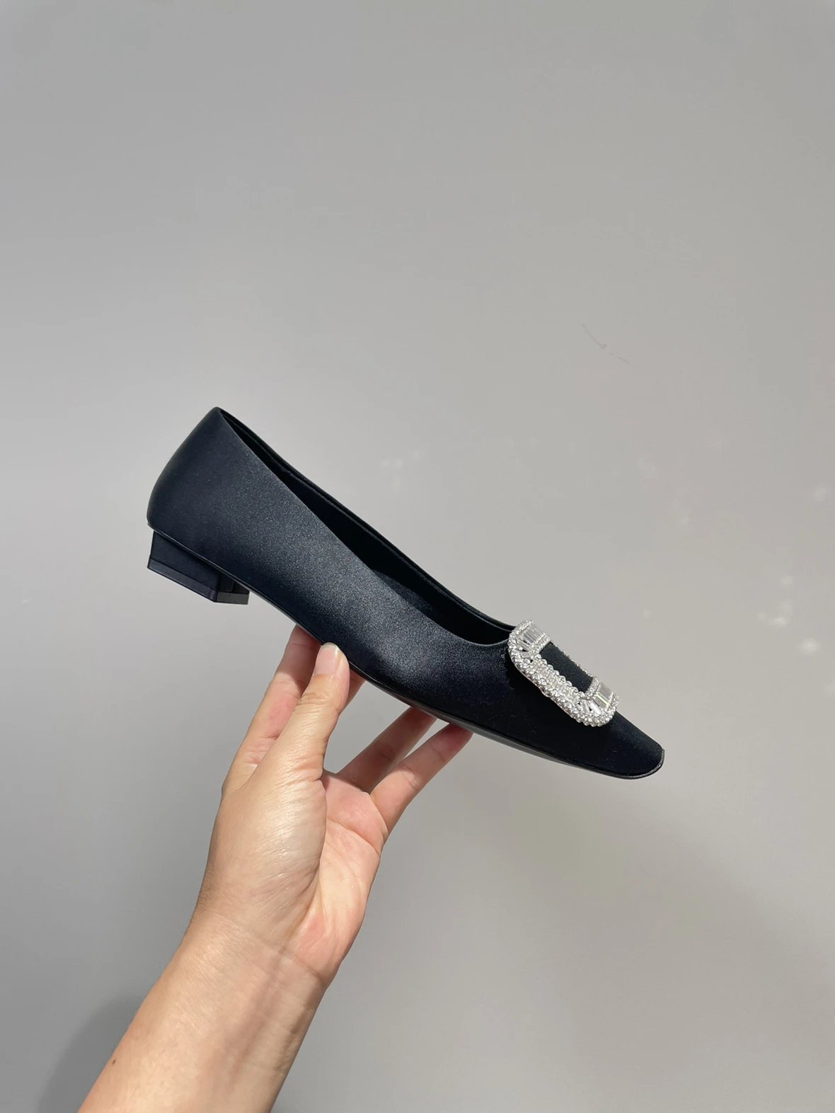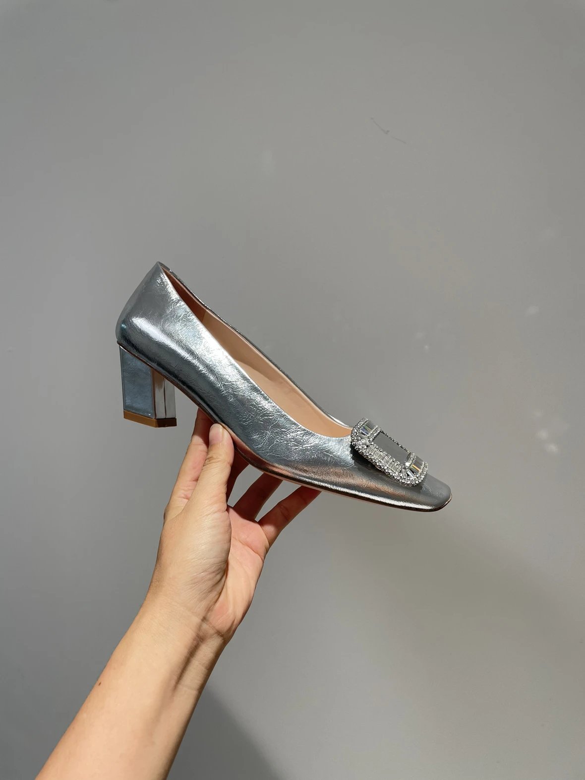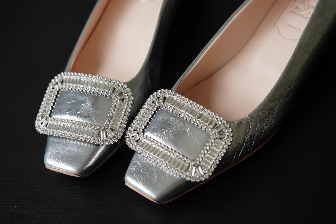 重磅推荐 水钻方扣单鞋 银色褶皱牛皮/白色限定牛皮 经典缎面2.5cm/4.5cm通勤单鞋 优雅老钱风