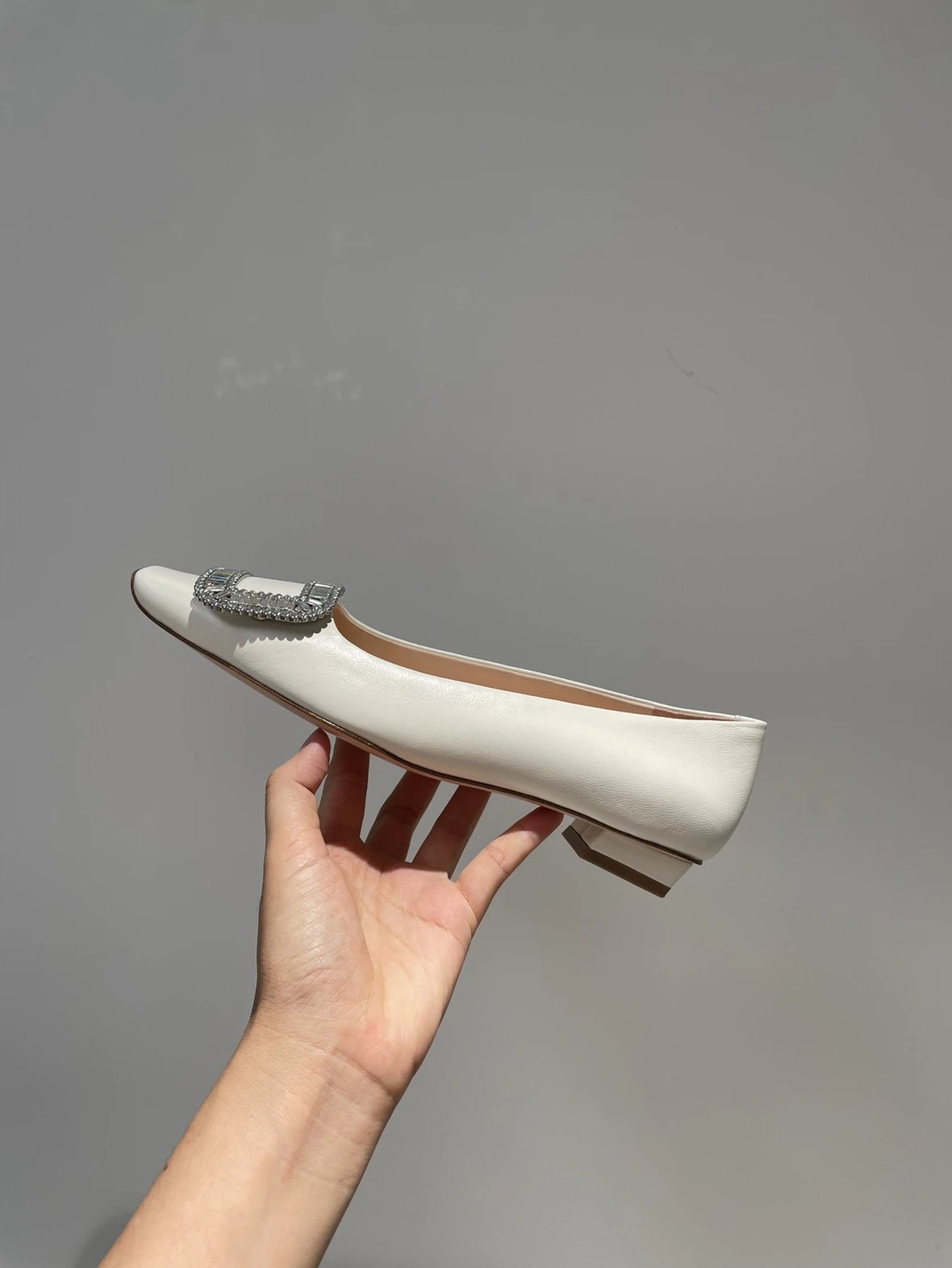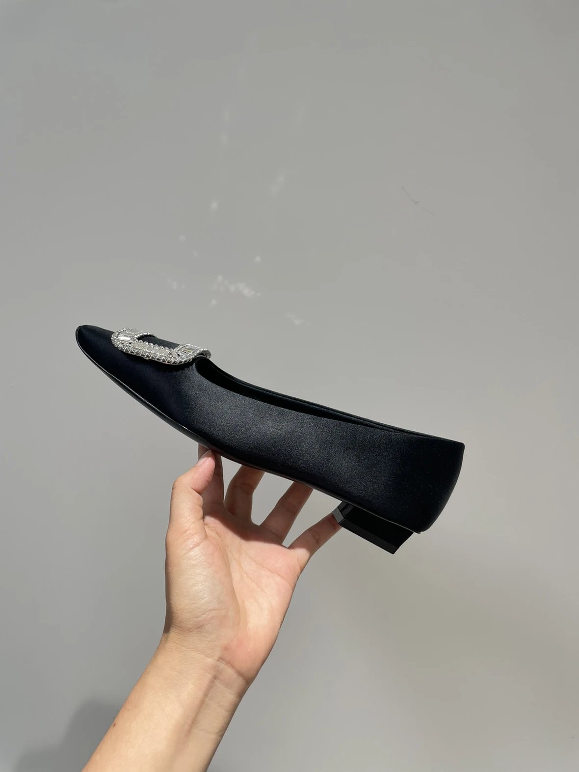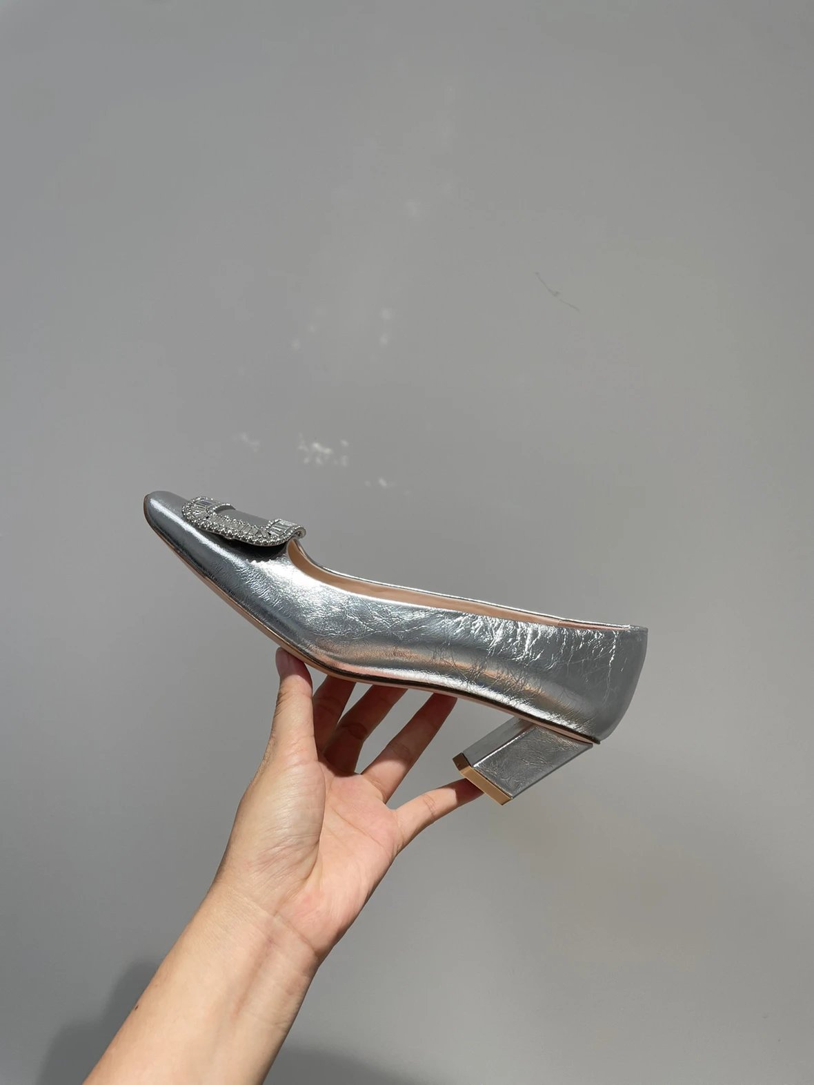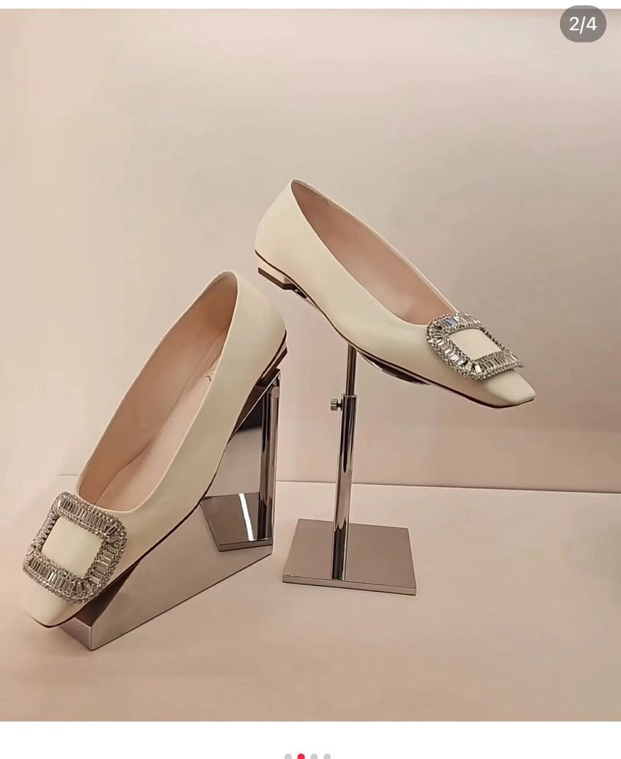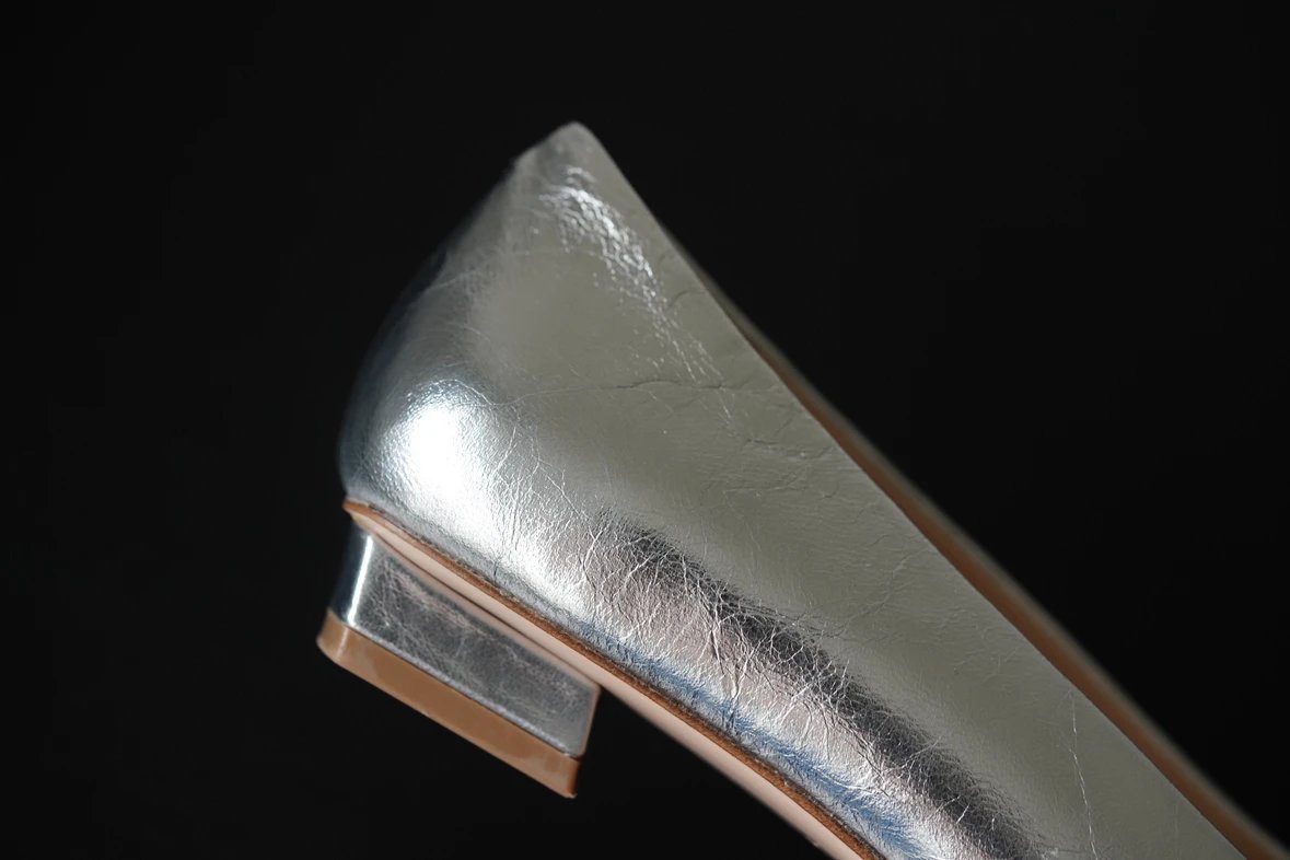 重磅推荐 水钻方扣单鞋 银色褶皱牛皮/白色限定牛皮 经典缎面2.5cm/4.5cm通勤单鞋 优雅老钱风