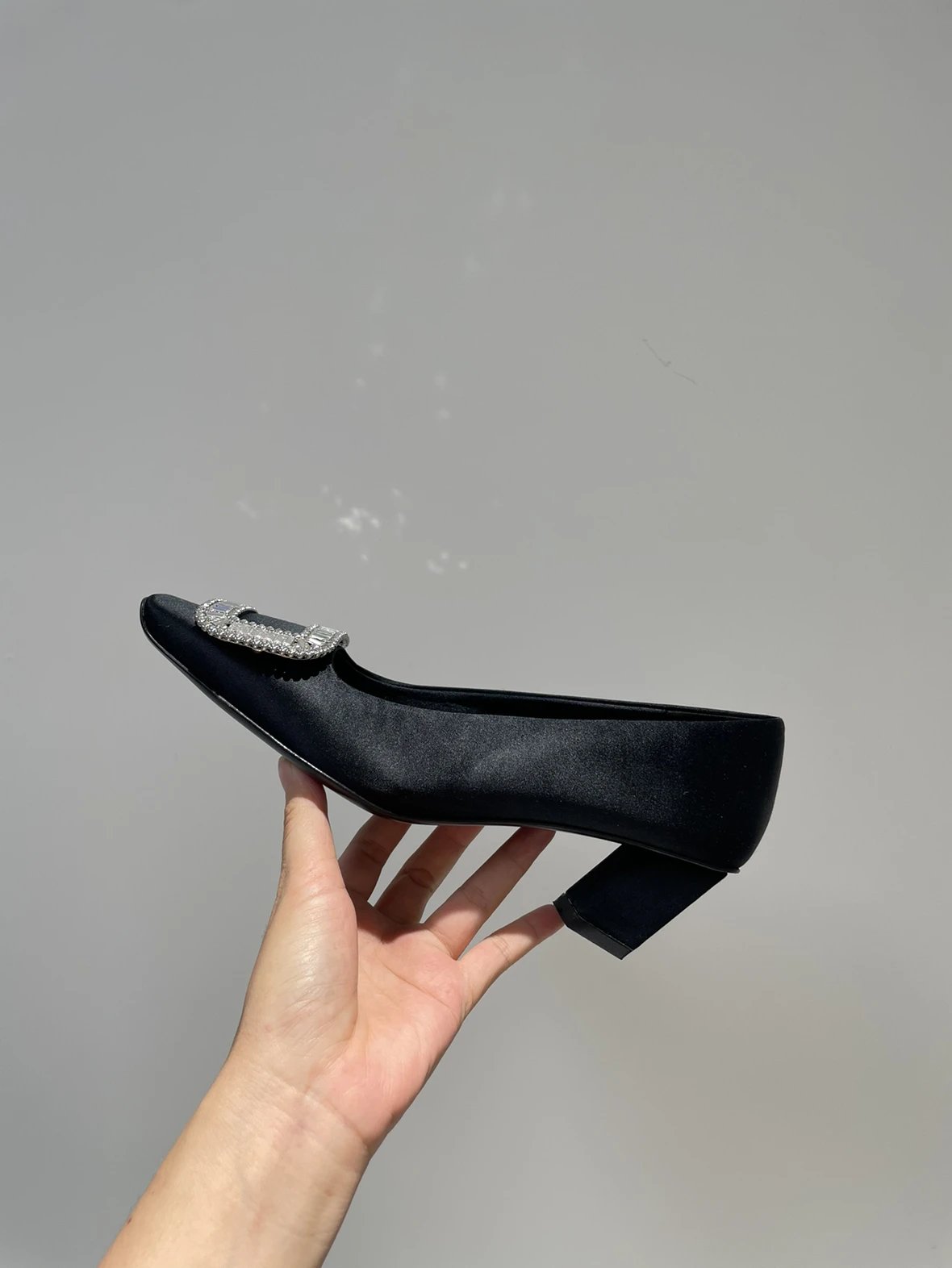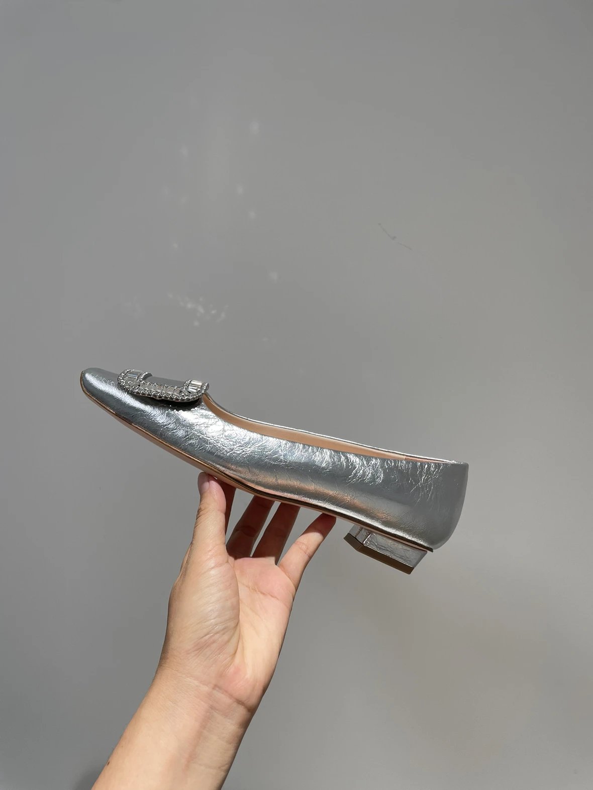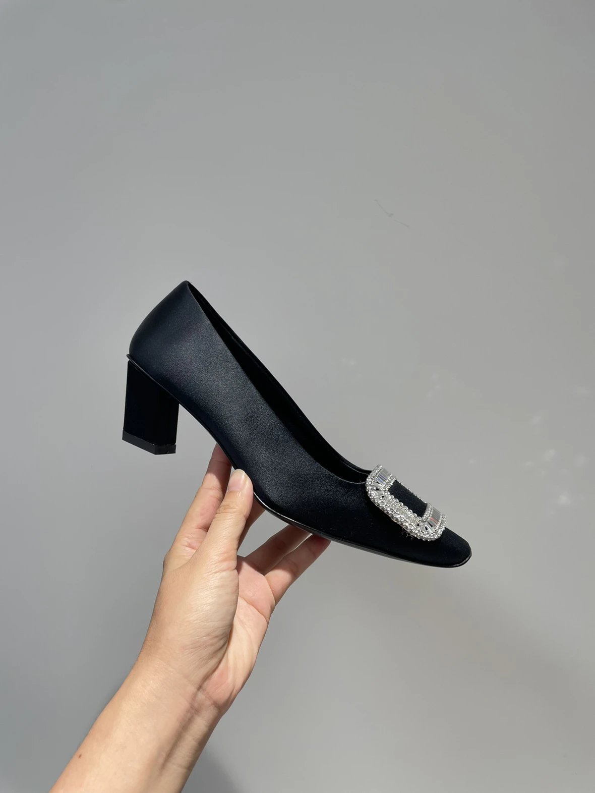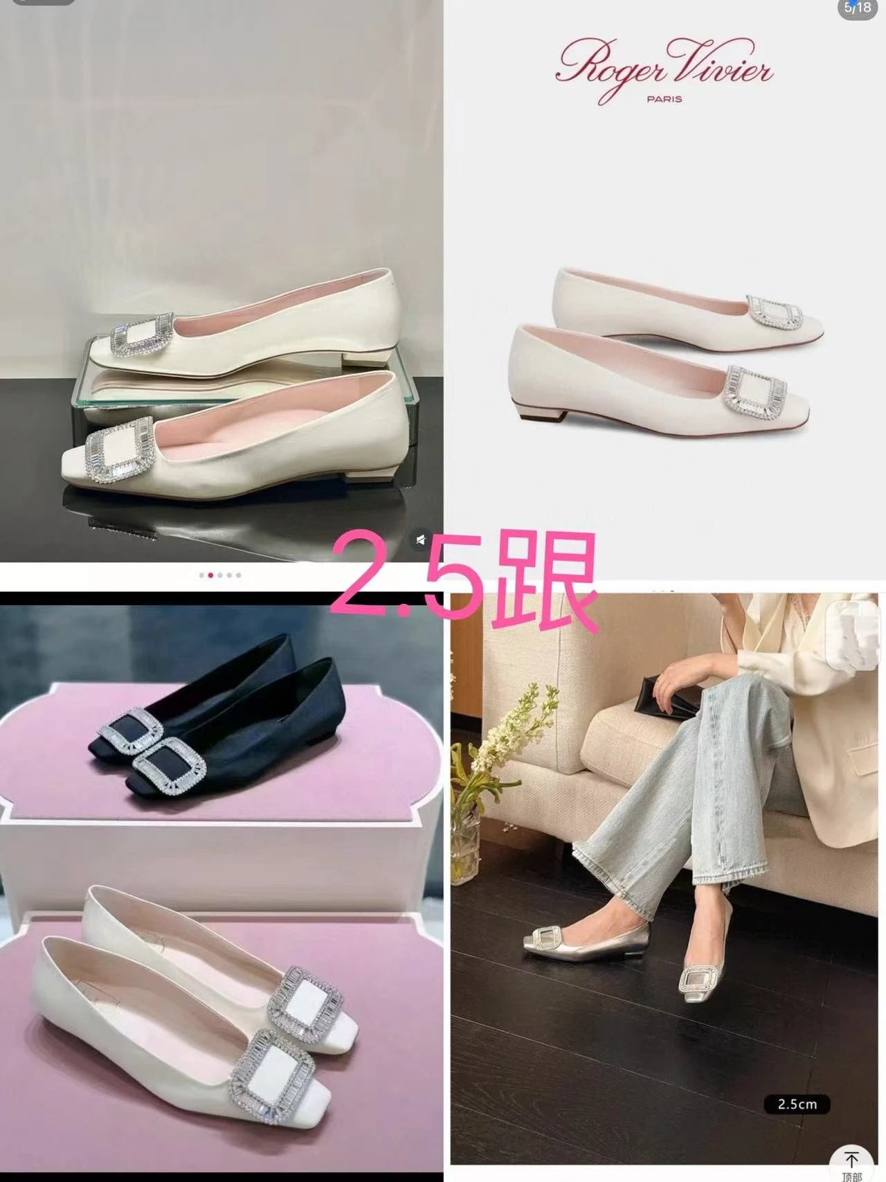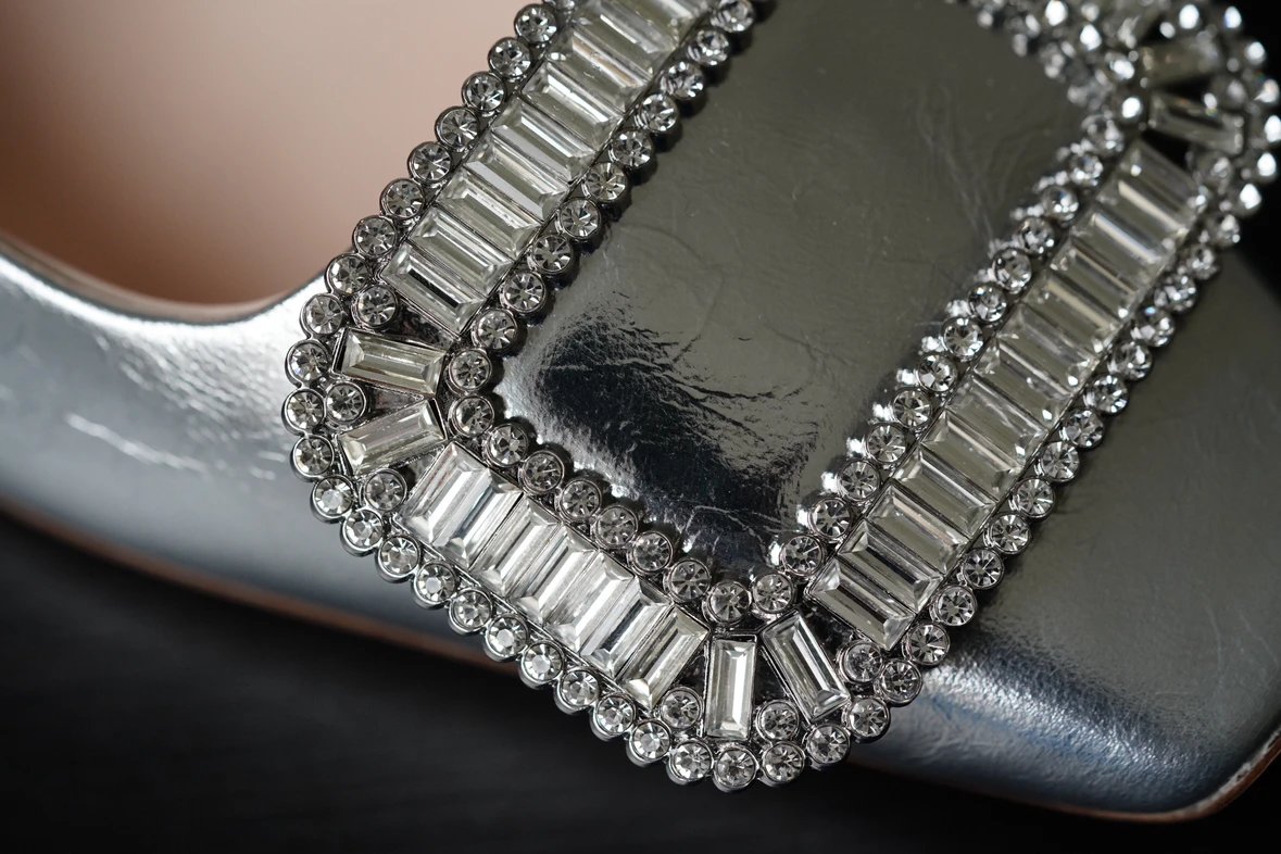 重磅推荐 水钻方扣单鞋 银色褶皱牛皮/白色限定牛皮 经典缎面2.5cm/4.5cm通勤单鞋 优雅老钱风