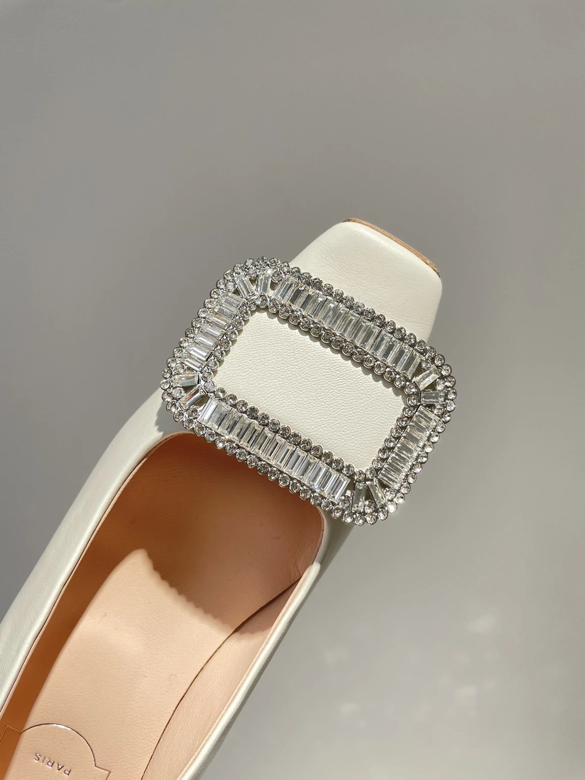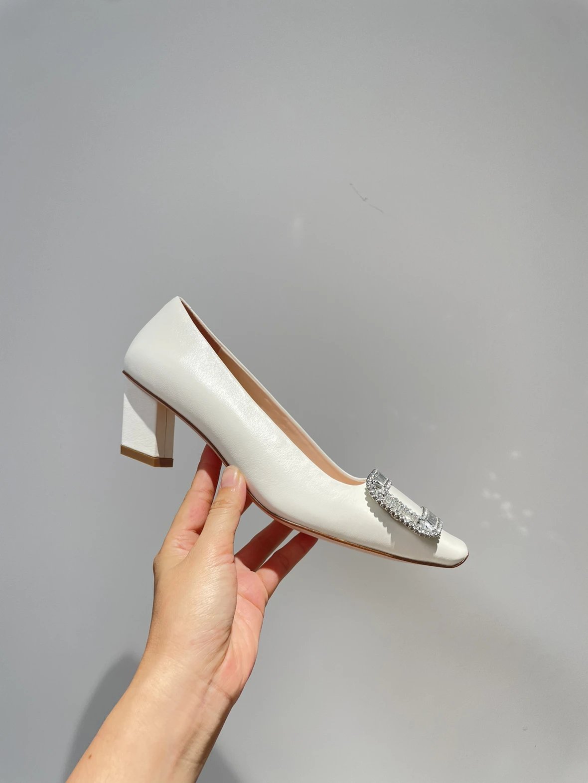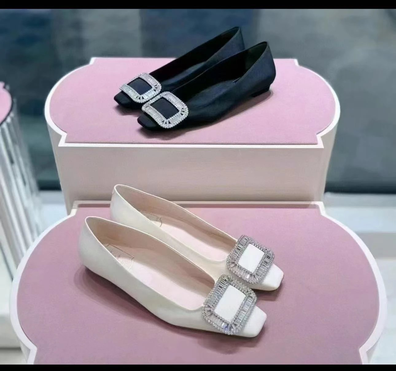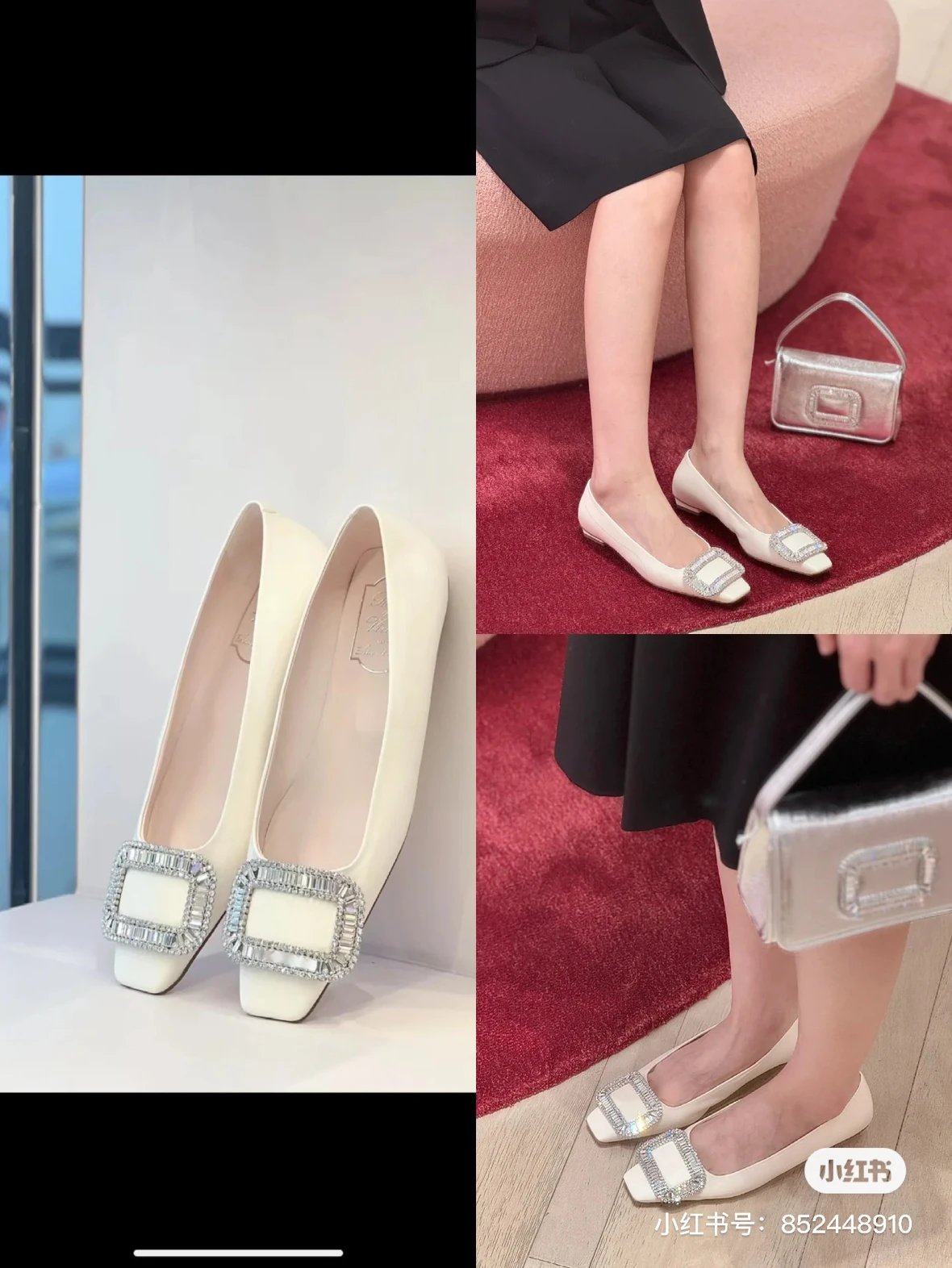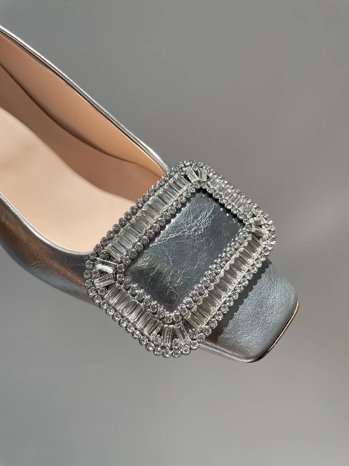 重磅推荐 水钻方扣单鞋 银色褶皱牛皮/白色限定牛皮 经典缎面2.5cm/4.5cm通勤单鞋 优雅老钱风