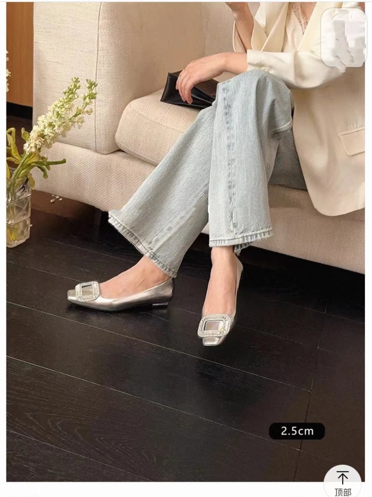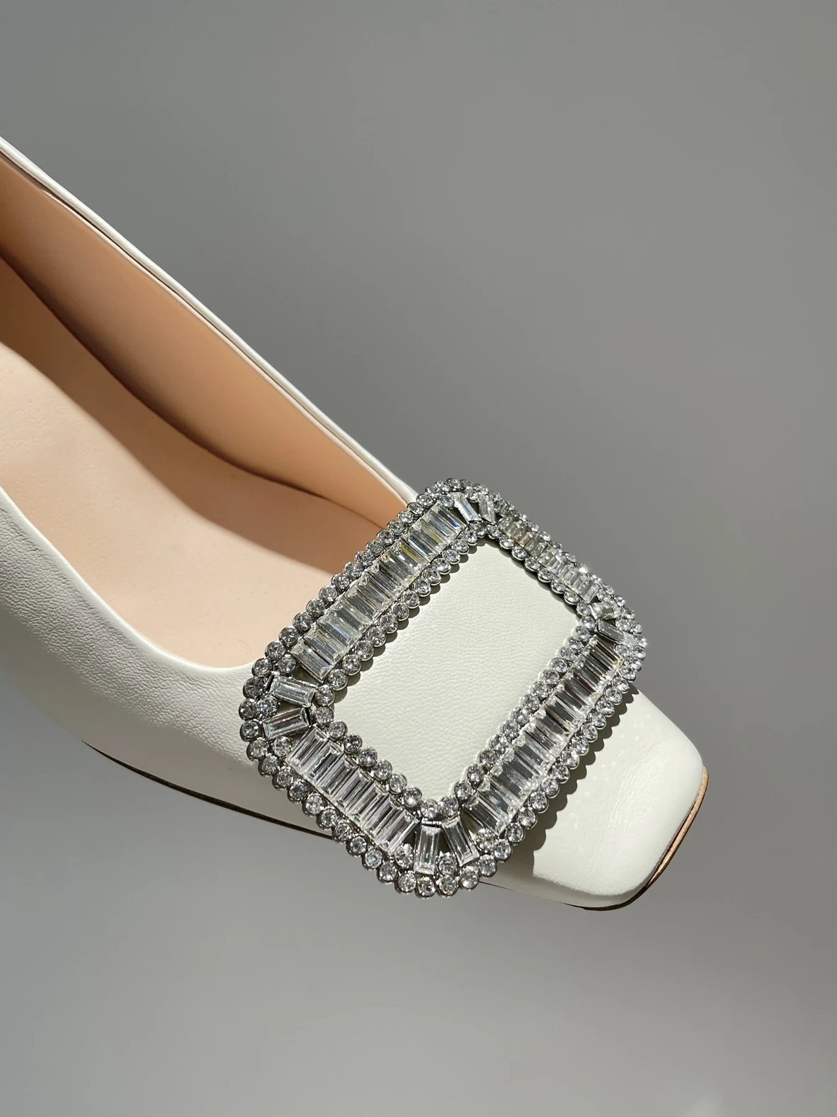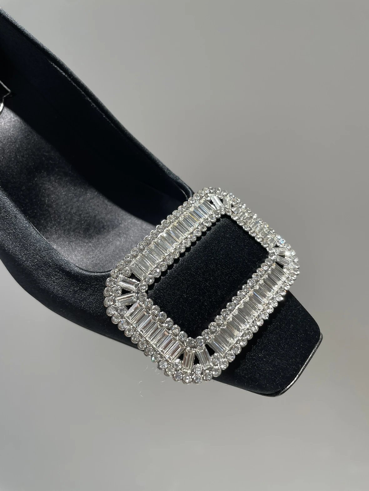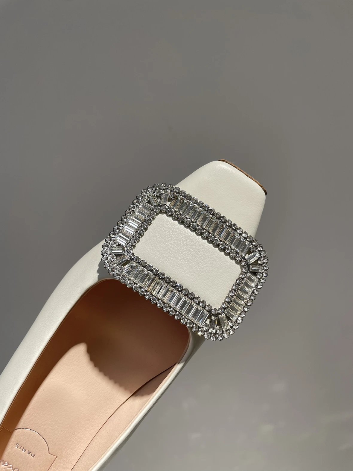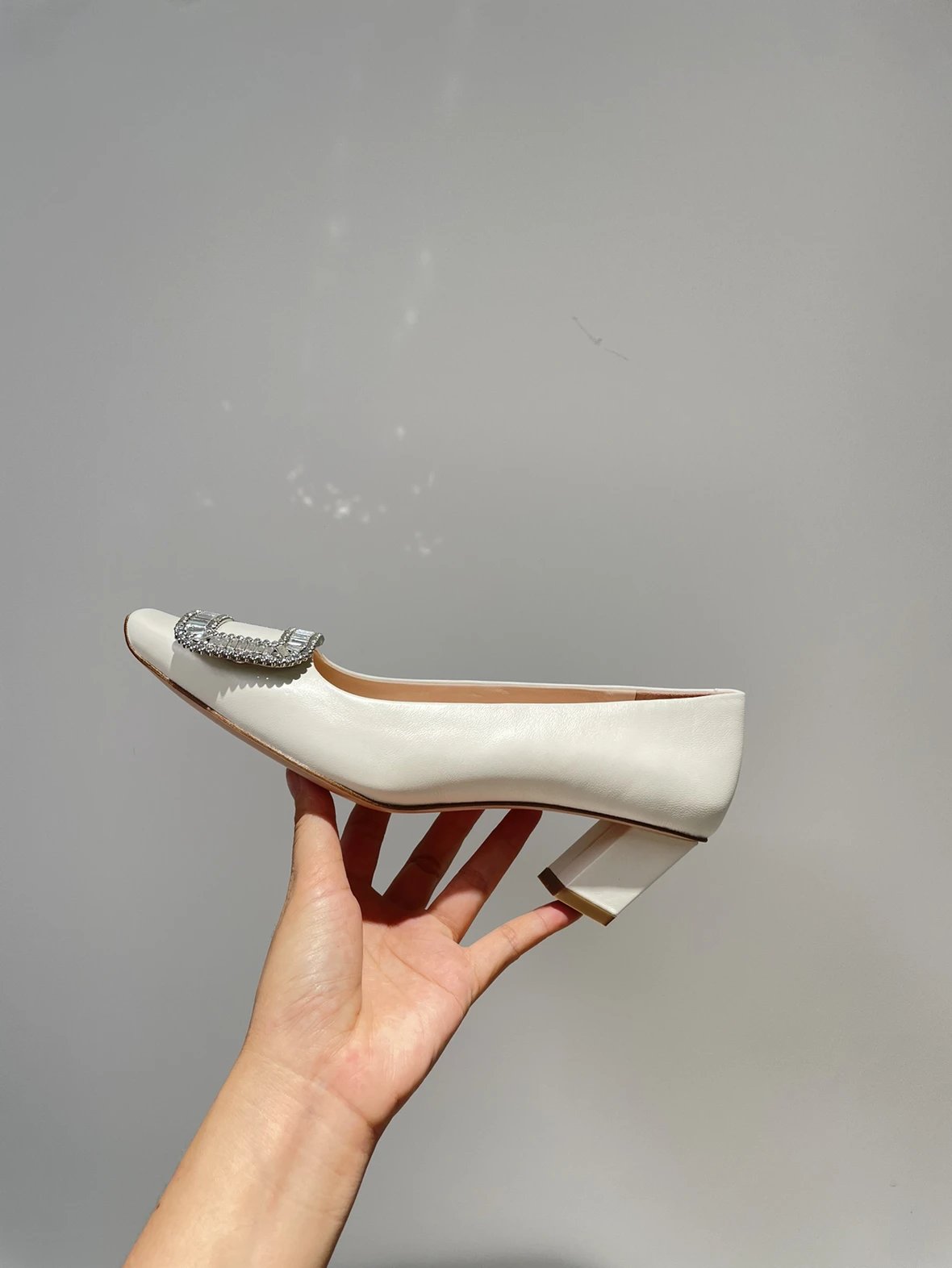 重磅推荐 水钻方扣单鞋 银色褶皱牛皮/白色限定牛皮 经典缎面2.5cm/4.5cm通勤单鞋 优雅老钱风