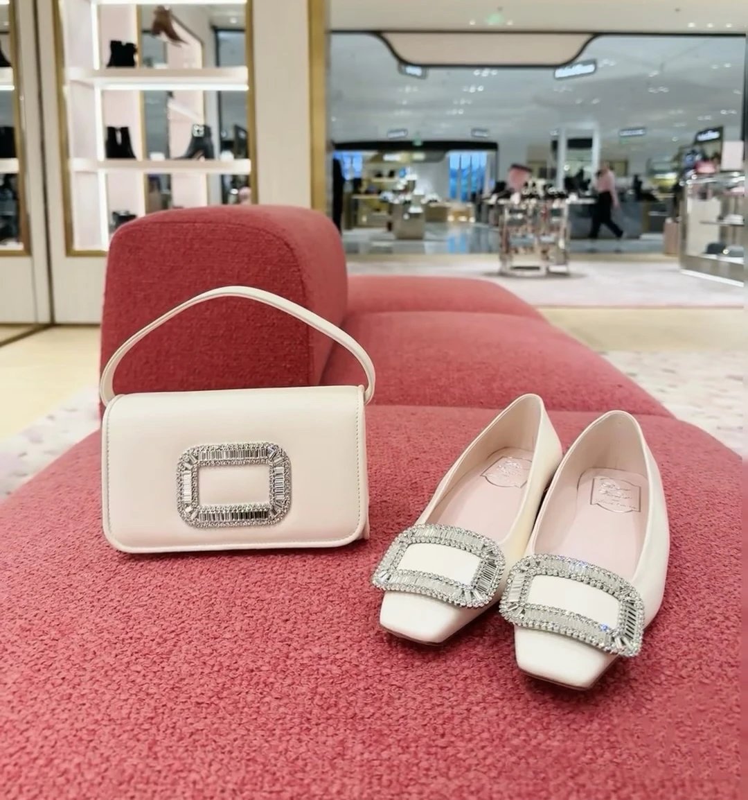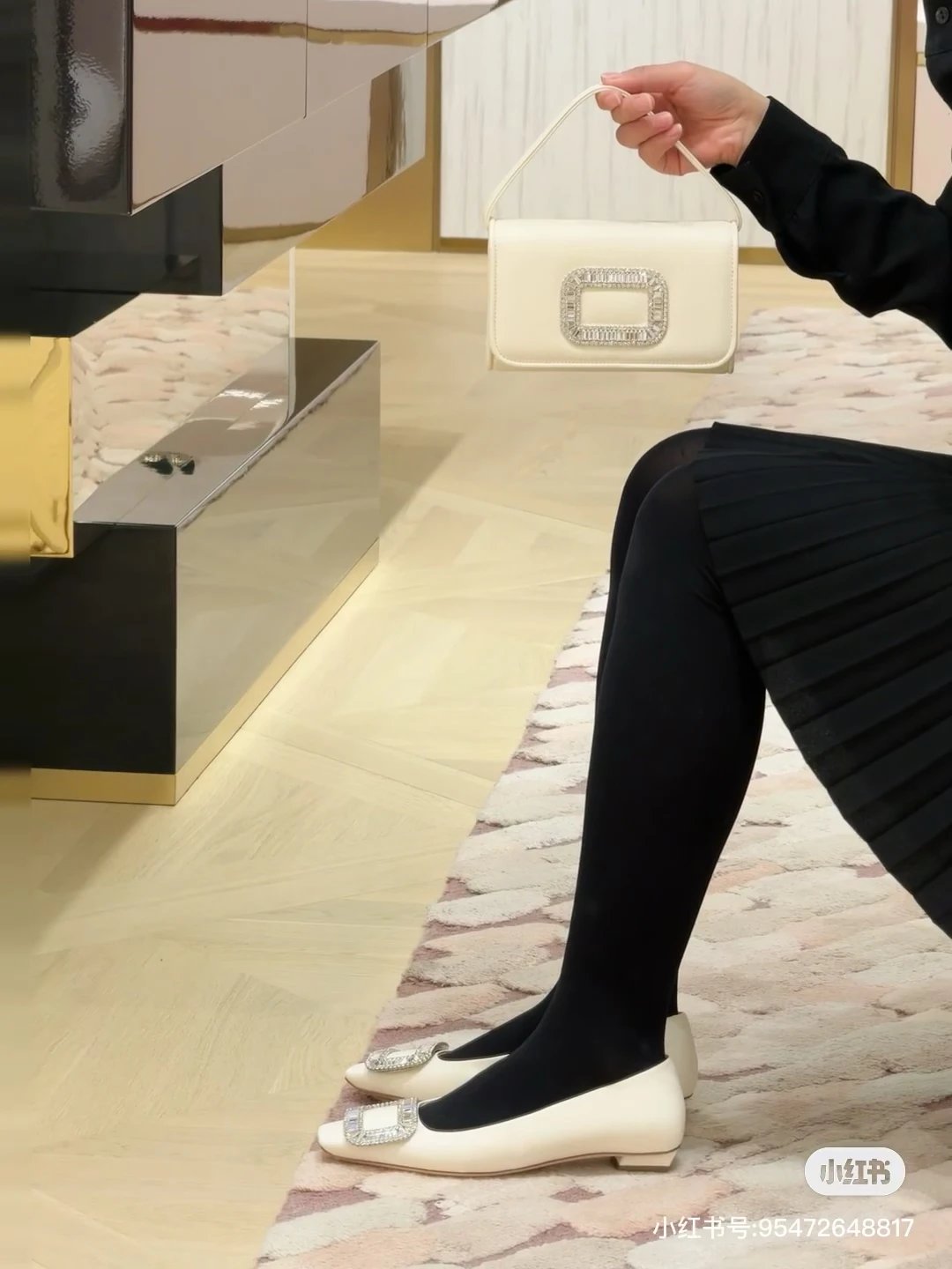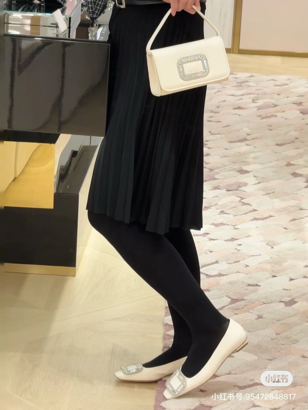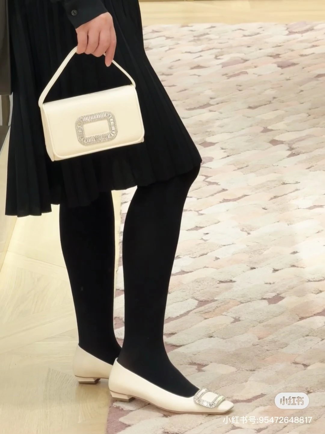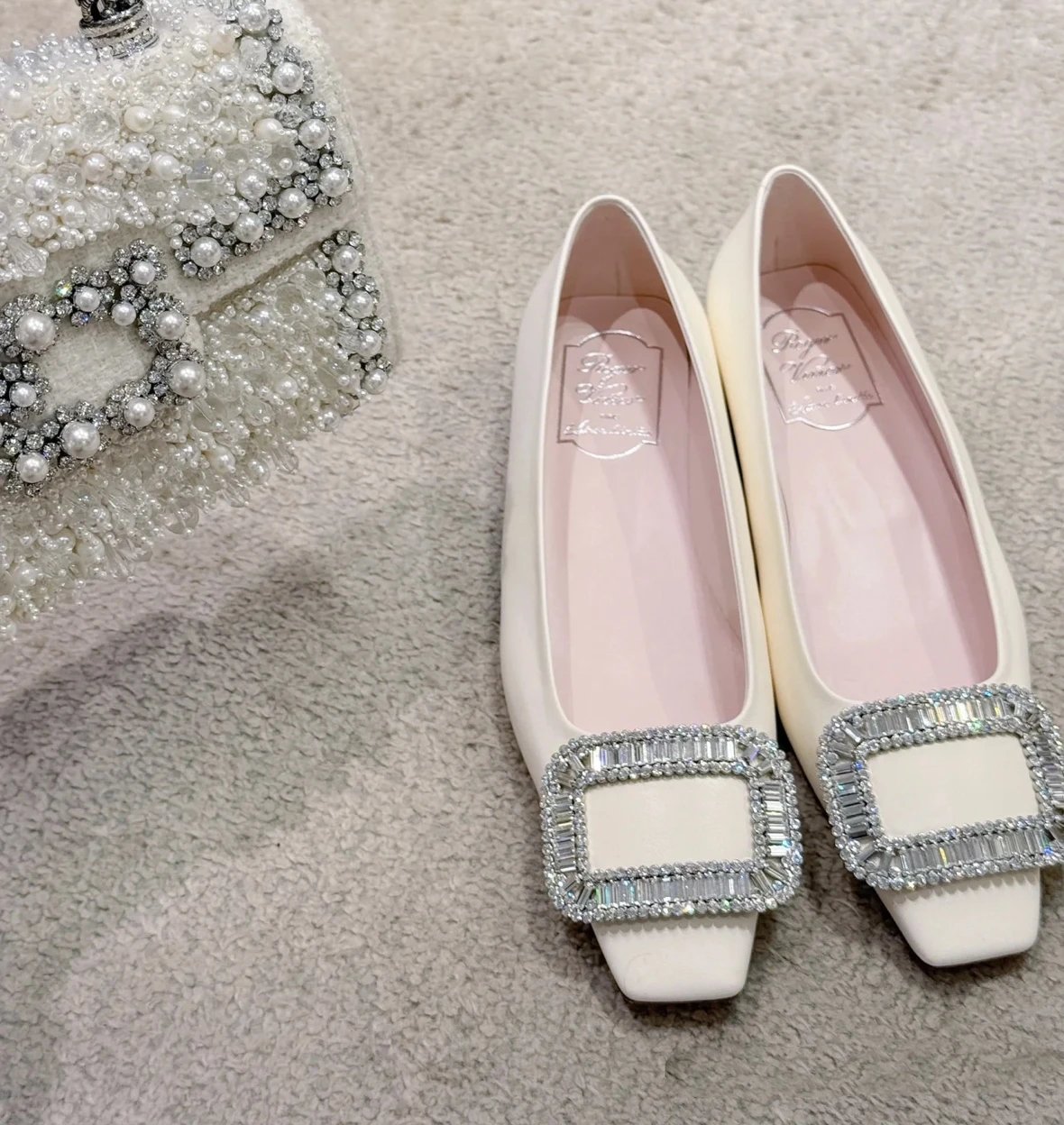 重磅推荐 水钻方扣单鞋 银色褶皱牛皮/白色限定牛皮 经典缎面2.5cm/4.5cm通勤单鞋 优雅老钱风
