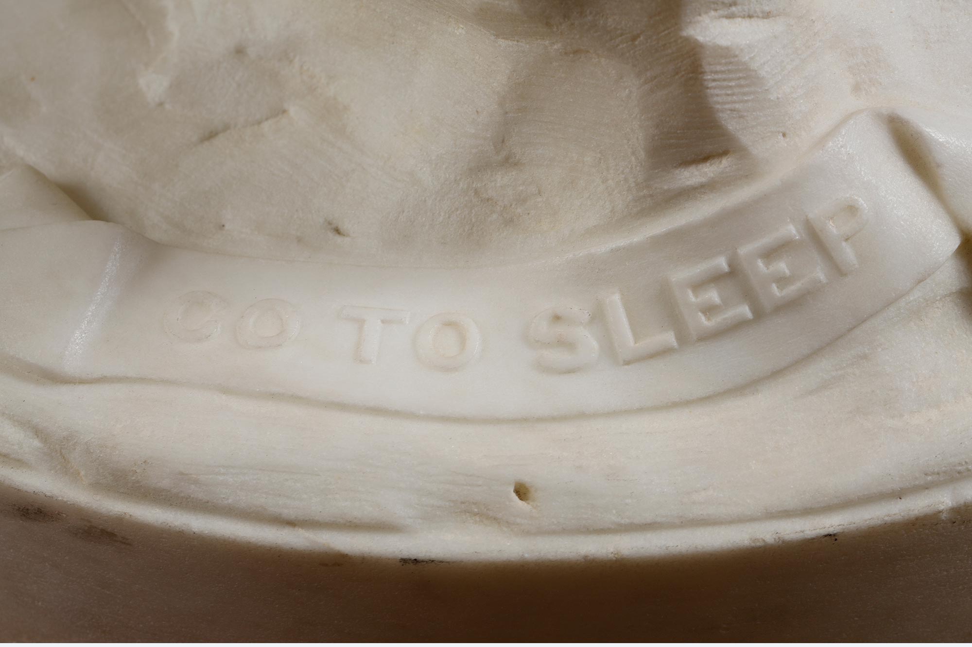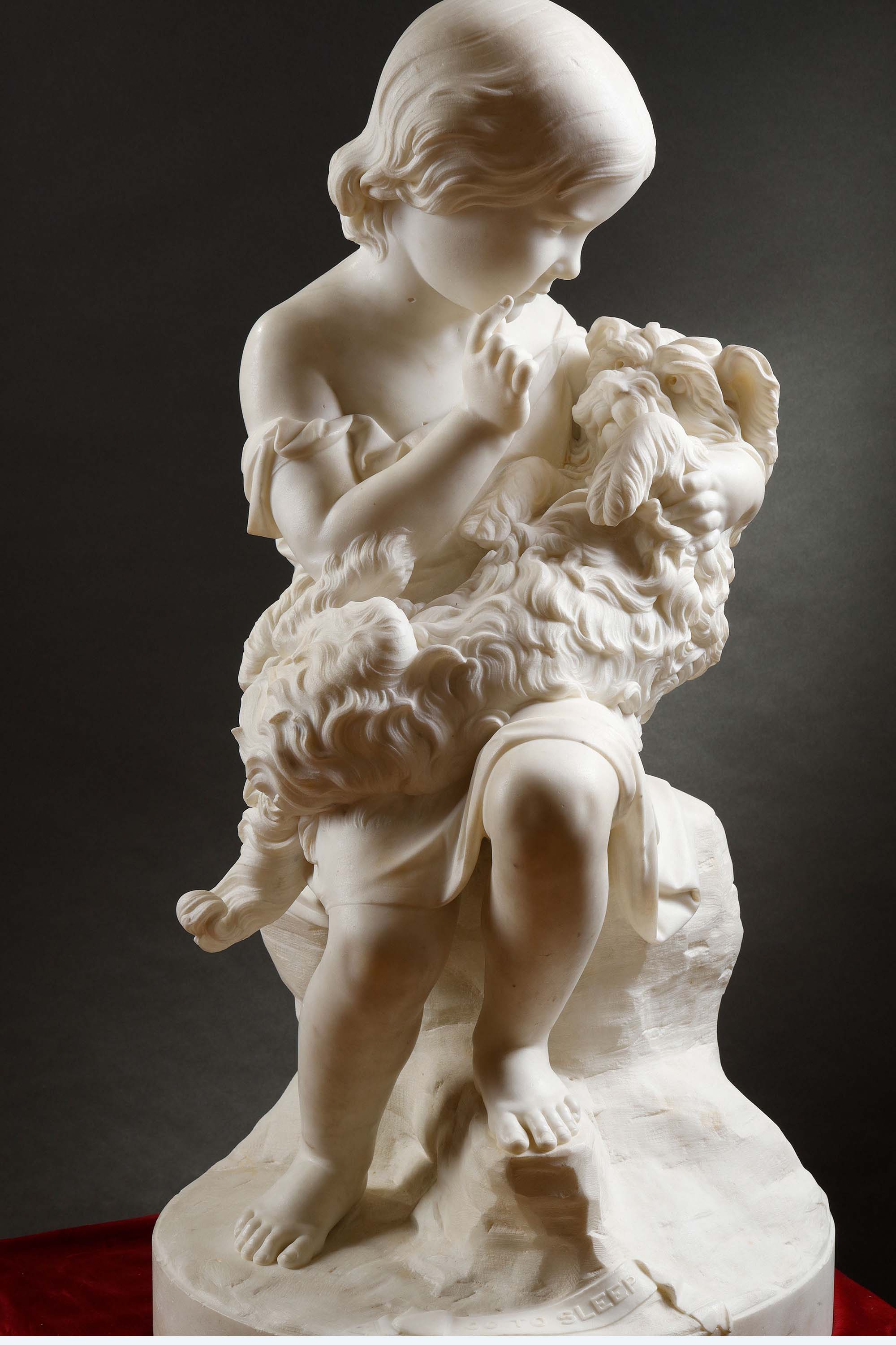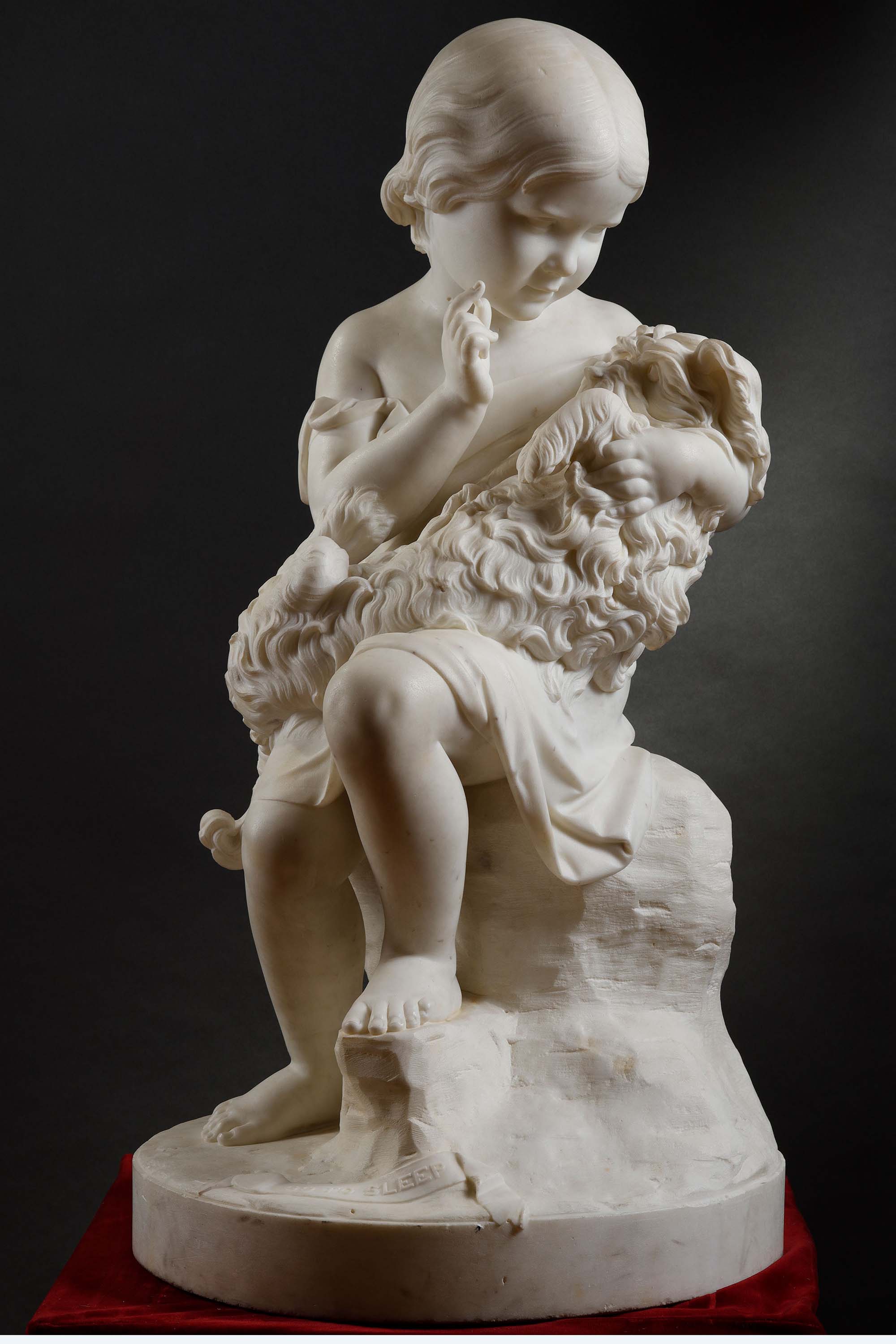 1860年代英国雕塑家Joseph Durham签名创作儿童主题卡拉拉大理石雕塑作品《安睡》