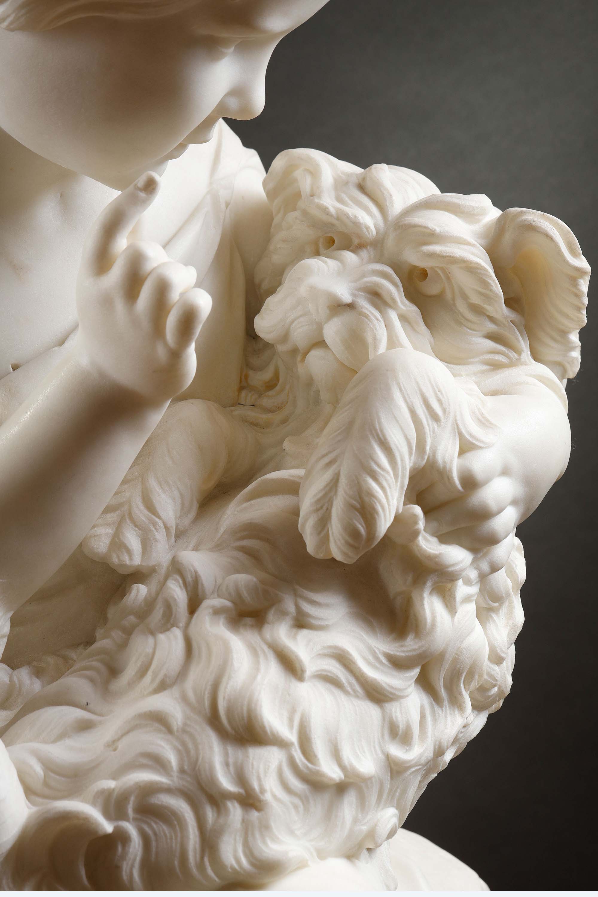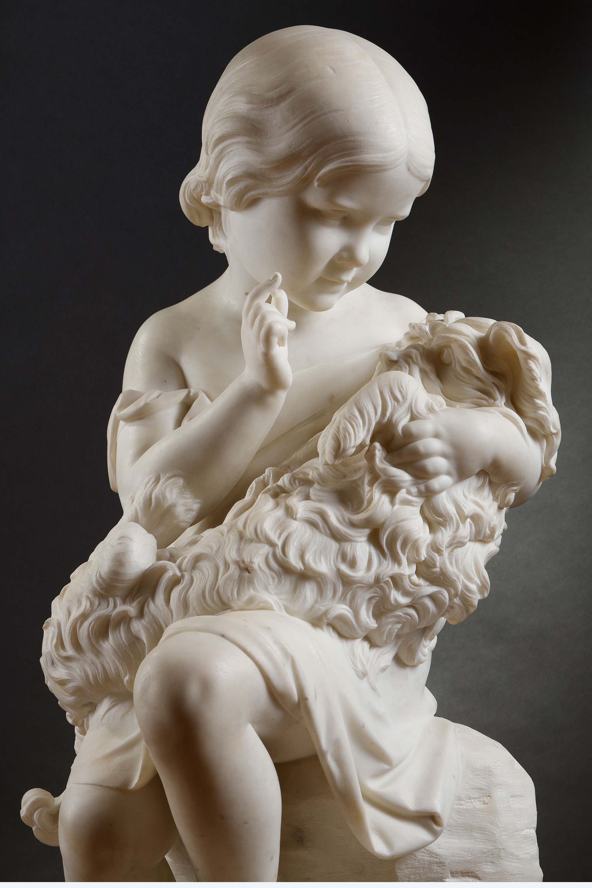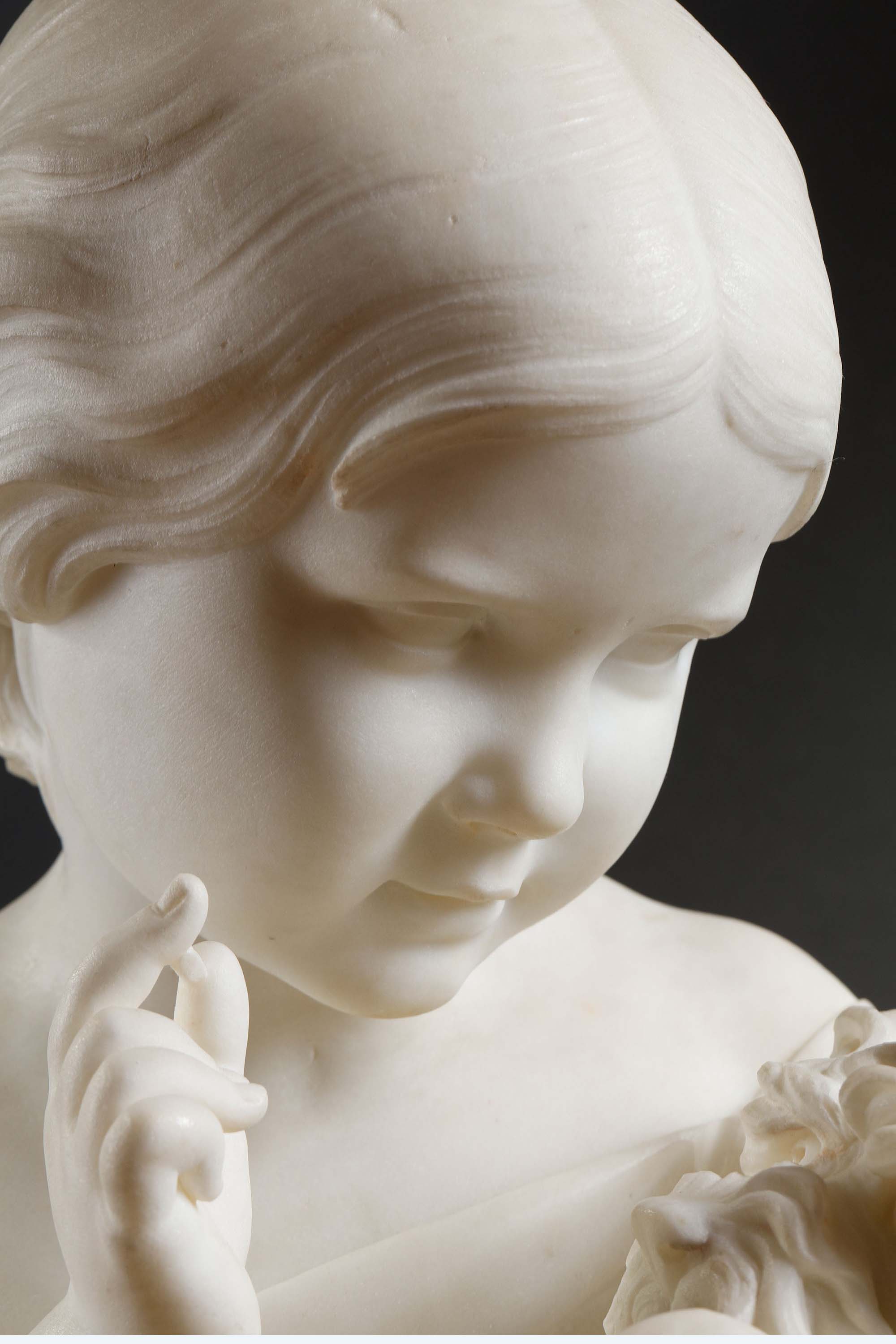 1860年代英国雕塑家Joseph Durham签名创作儿童主题卡拉拉大理石雕塑作品《安睡》
